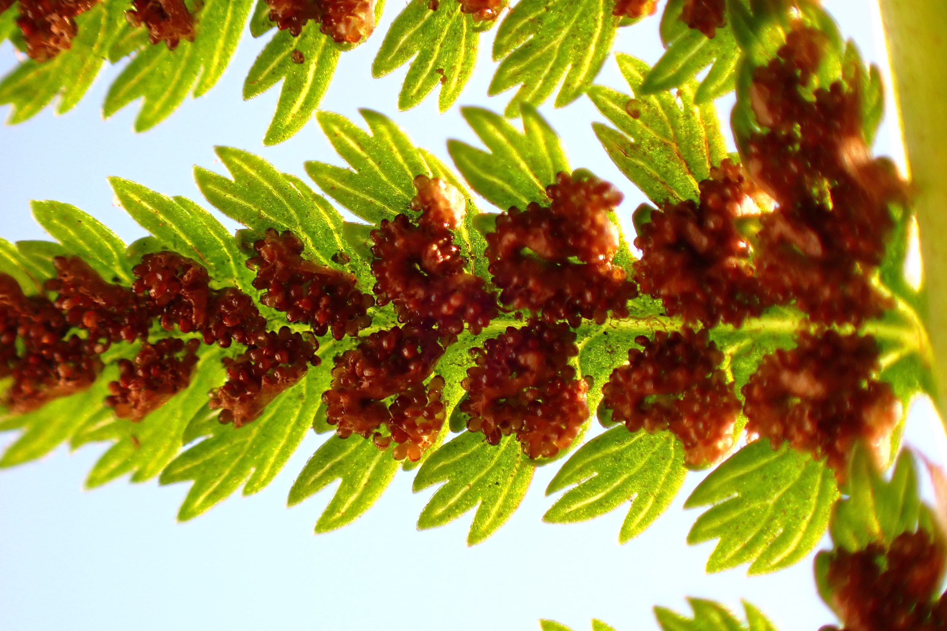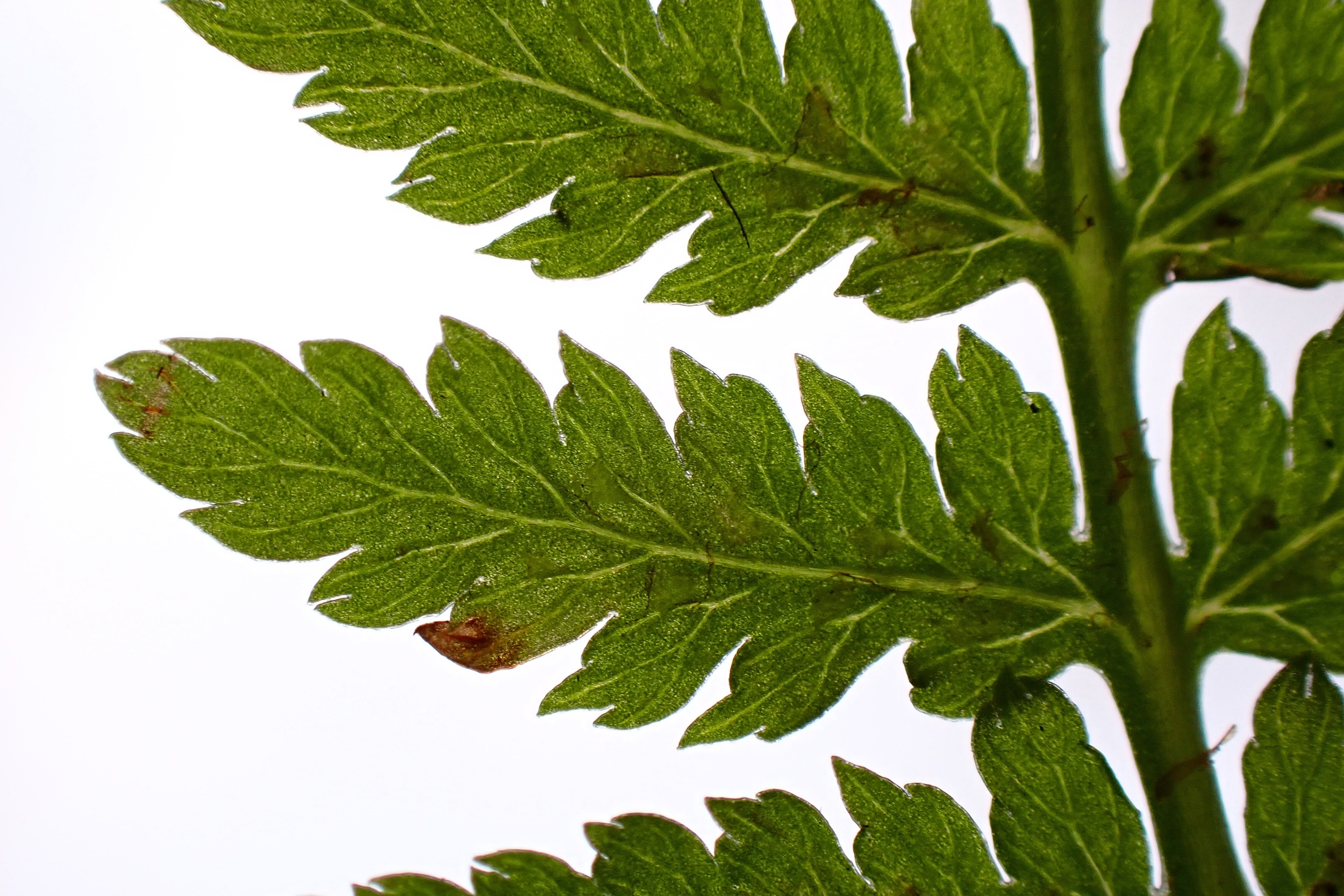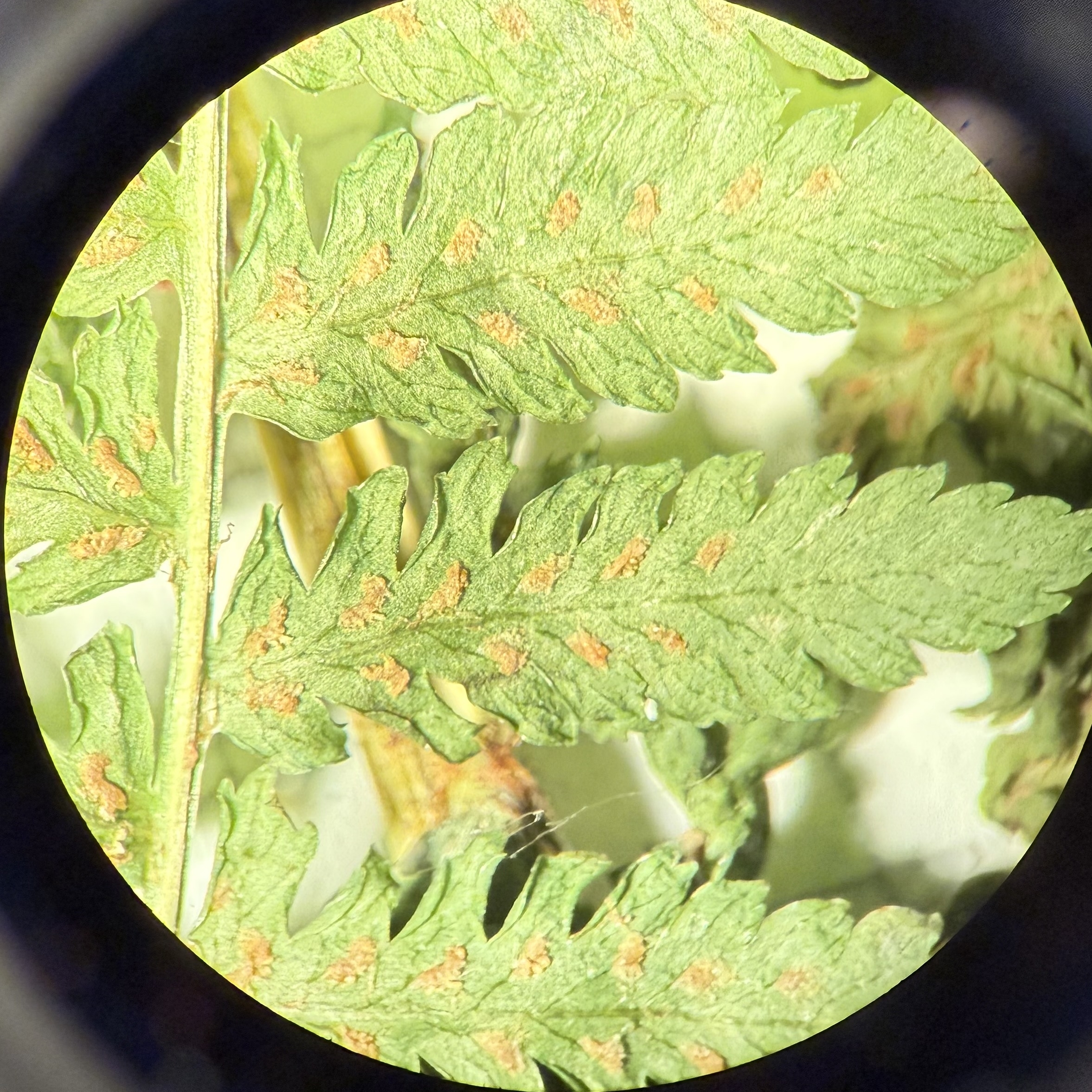 Deshalb: Bei älteren und/oder bereits etwas welken Wedeln mit leicht gekrümmten Fiederrändern kann das Nerven-Merkmal ein Murks und deshalb nicht sehr verlässlich sein. Bei den anderen Wedeln sollte es klappen, sofern die Nerven mit einer guten Lupe (10x war tipptopp) kontrolliert werden können. Die besten Erfahrungen hab ich bei Gegenlicht oder gegen eine weisse, besonnte Wand gemacht.