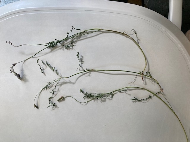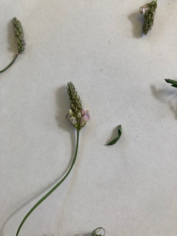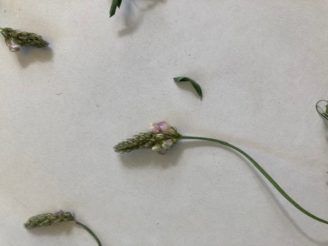 Diese Pflanze hat auf dem Heimweg vom Kletter in Lalden etwas gelitten… Ich konnte aber trotzdem problemlos zu Onobrychis gelangen. Auf Grund der blassen Farbe, zwar eher blass lila - nur ein Blütenstand blass rosa - der 2-3x längeren Stängel der Blütentraube als das dazugehörige Blatt und der schlanken Blütentraube Onobrychis arenaria. Stimmt das?