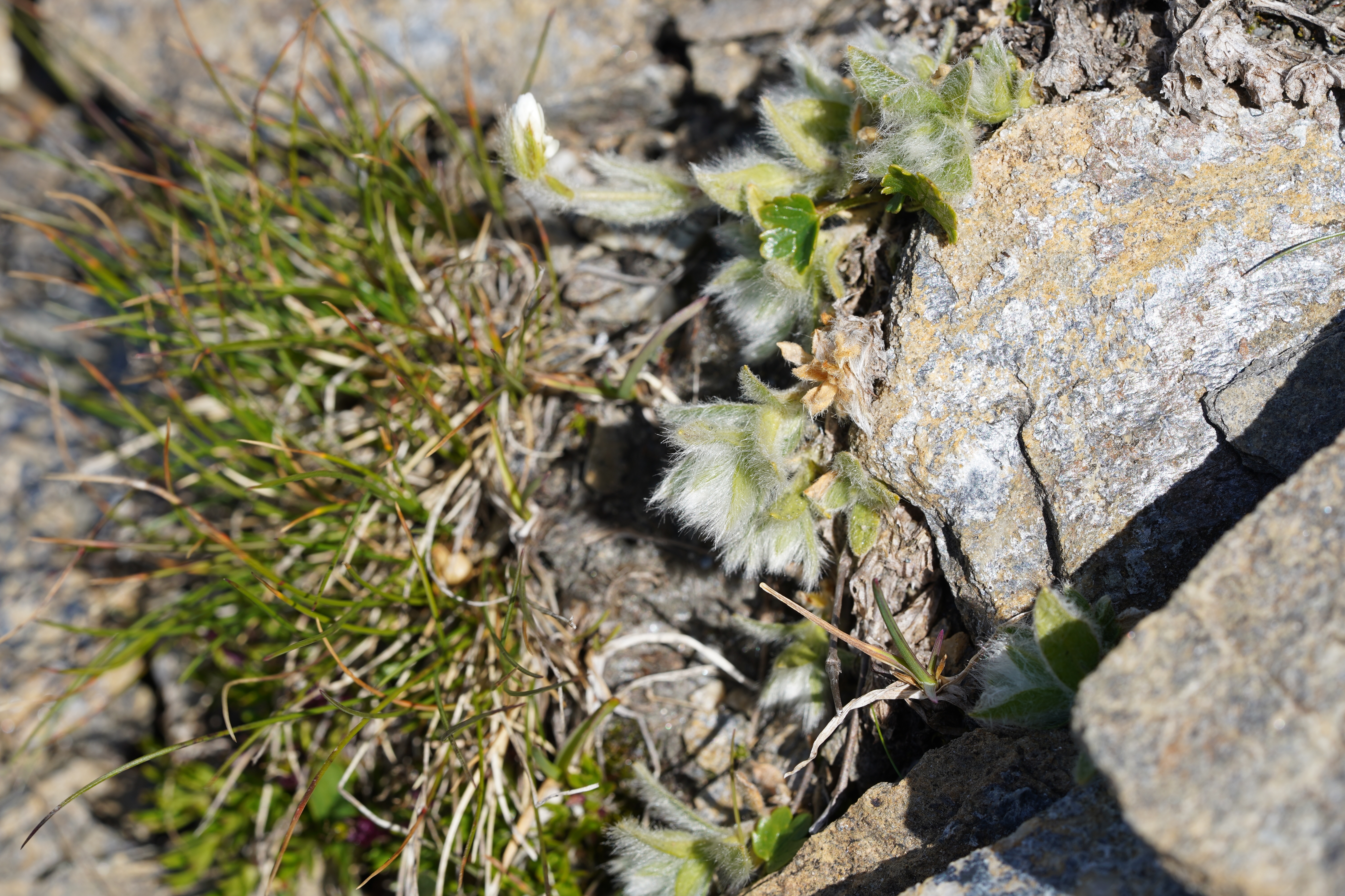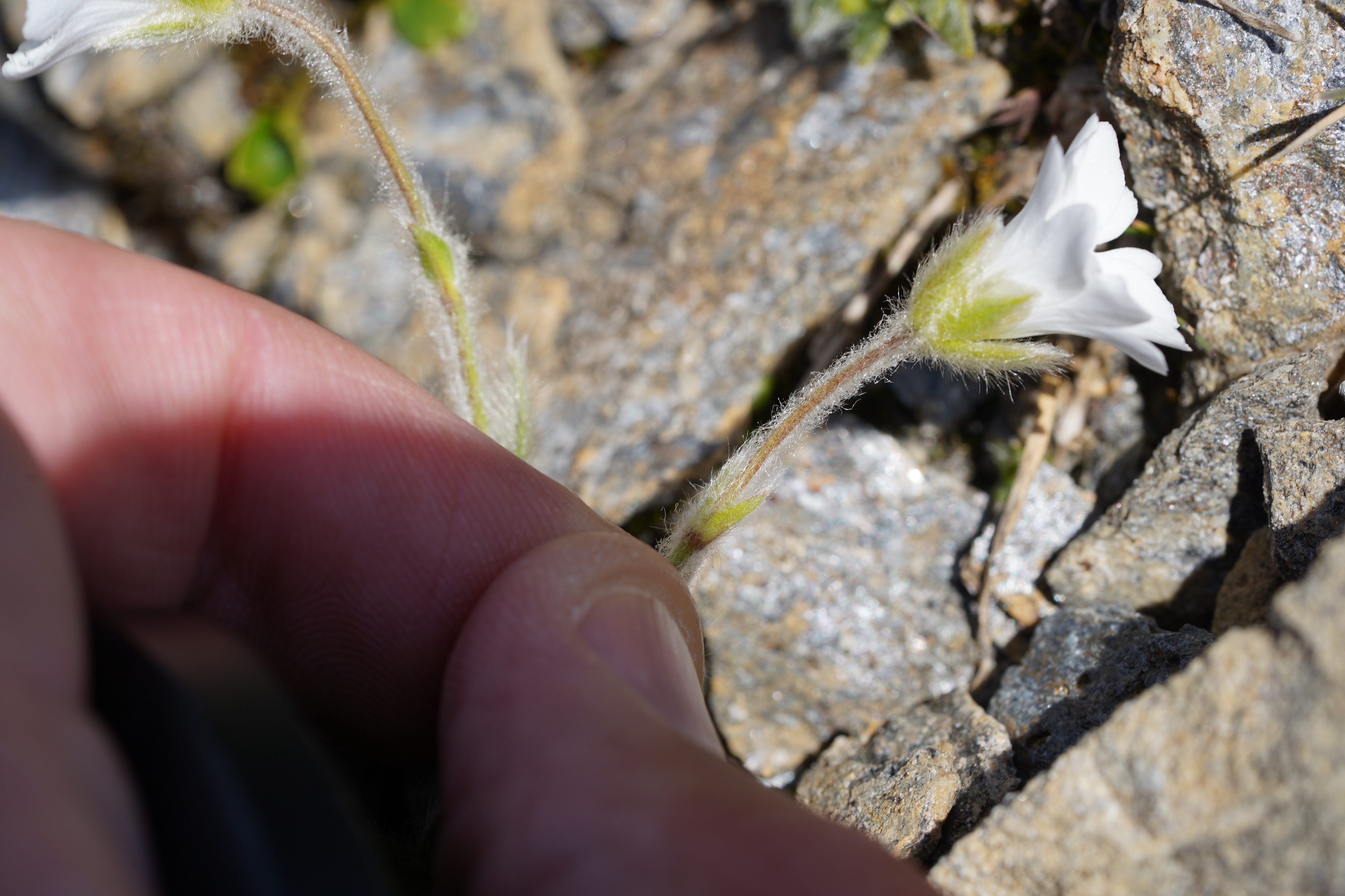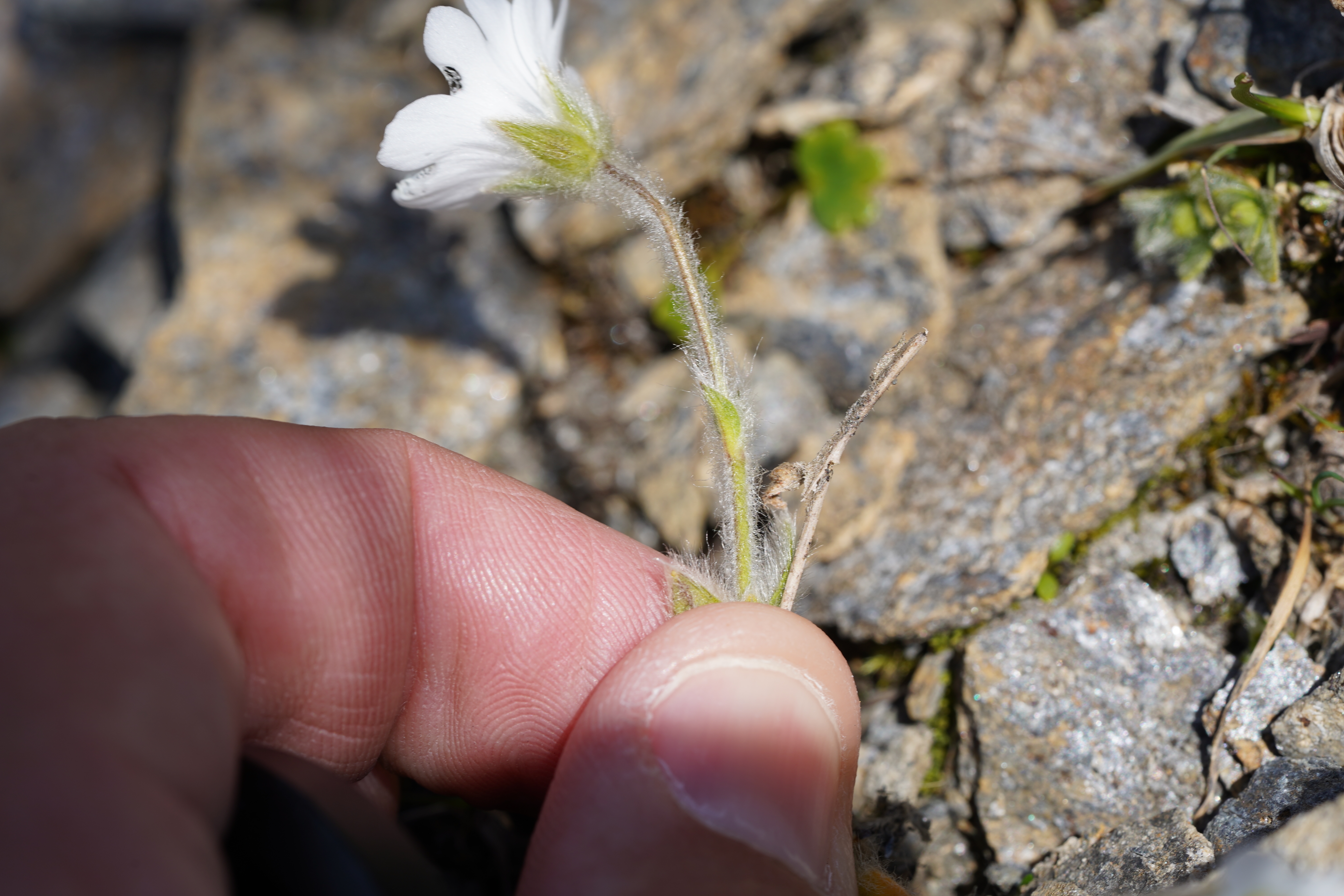 Gestern gab es im Schutt oberhalb Avers, Cresta auch mehrfach Cerastium alpinum. Jedoch in einer stark behaarten Form. Früher wurde ja anscheinend mal eine var. lanatum unterschieden mit besonders haarigen Blättern, mittlerweile wird diese aber anscheinend synonymisiert mit alpinum in der Flora Helvetica.