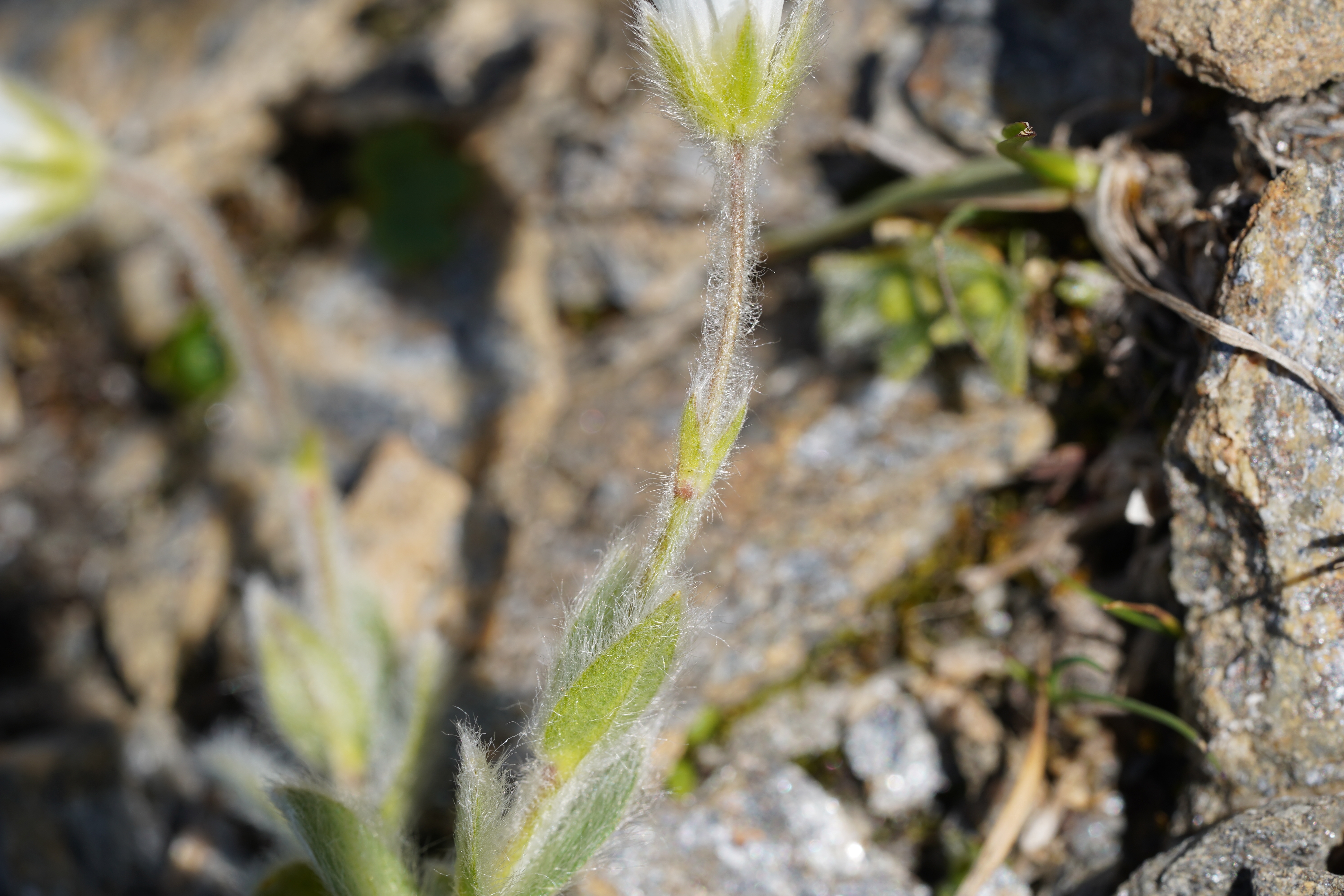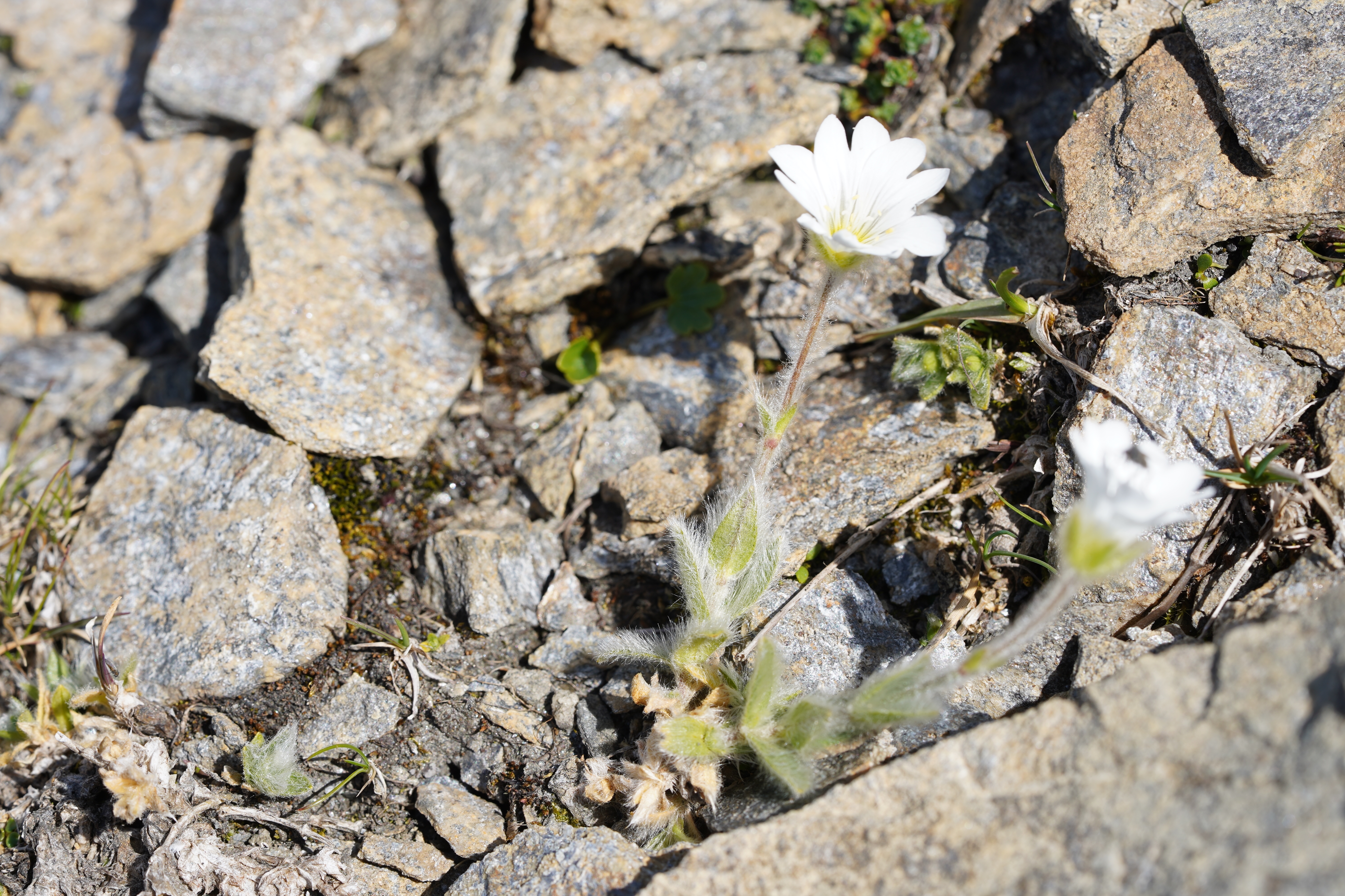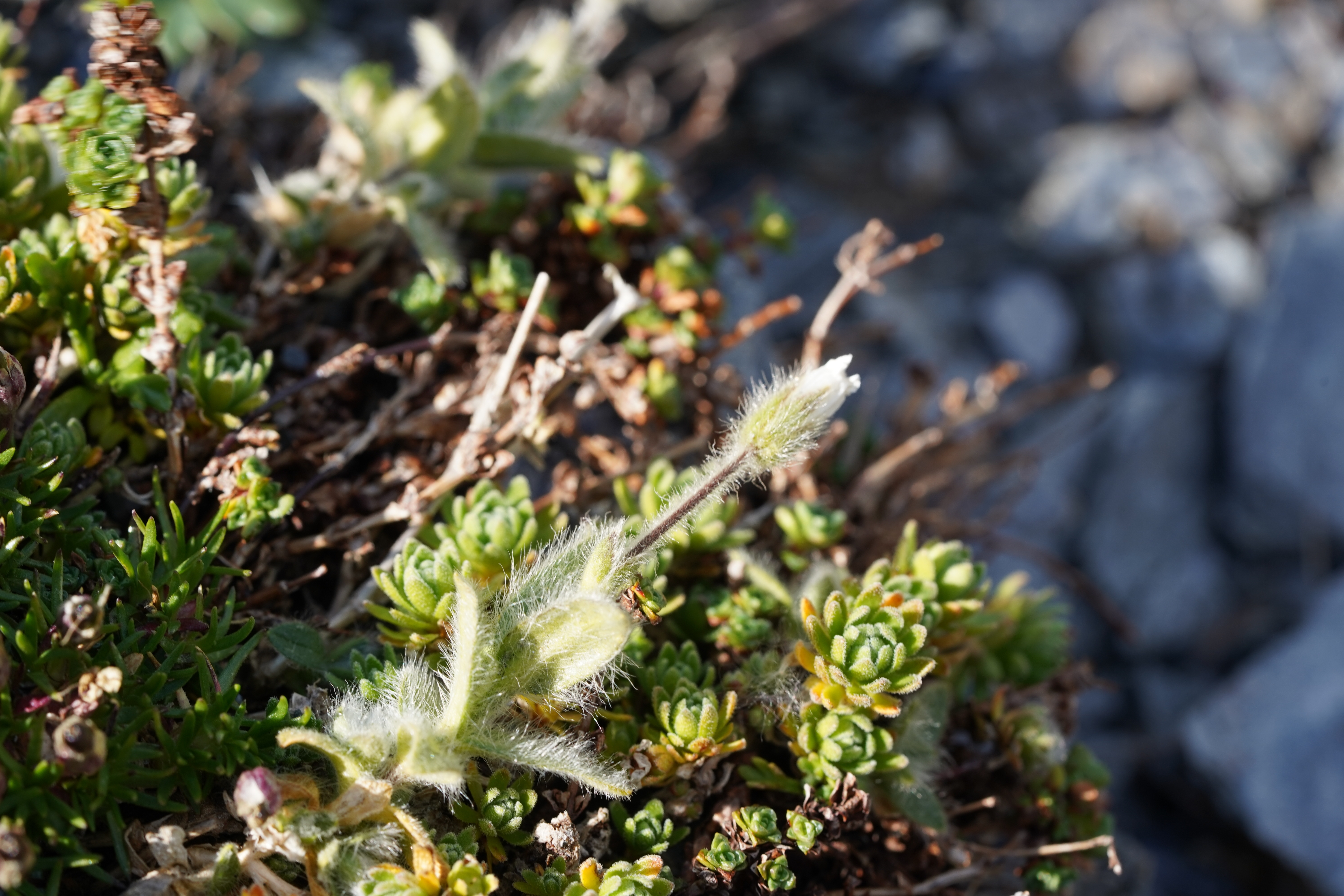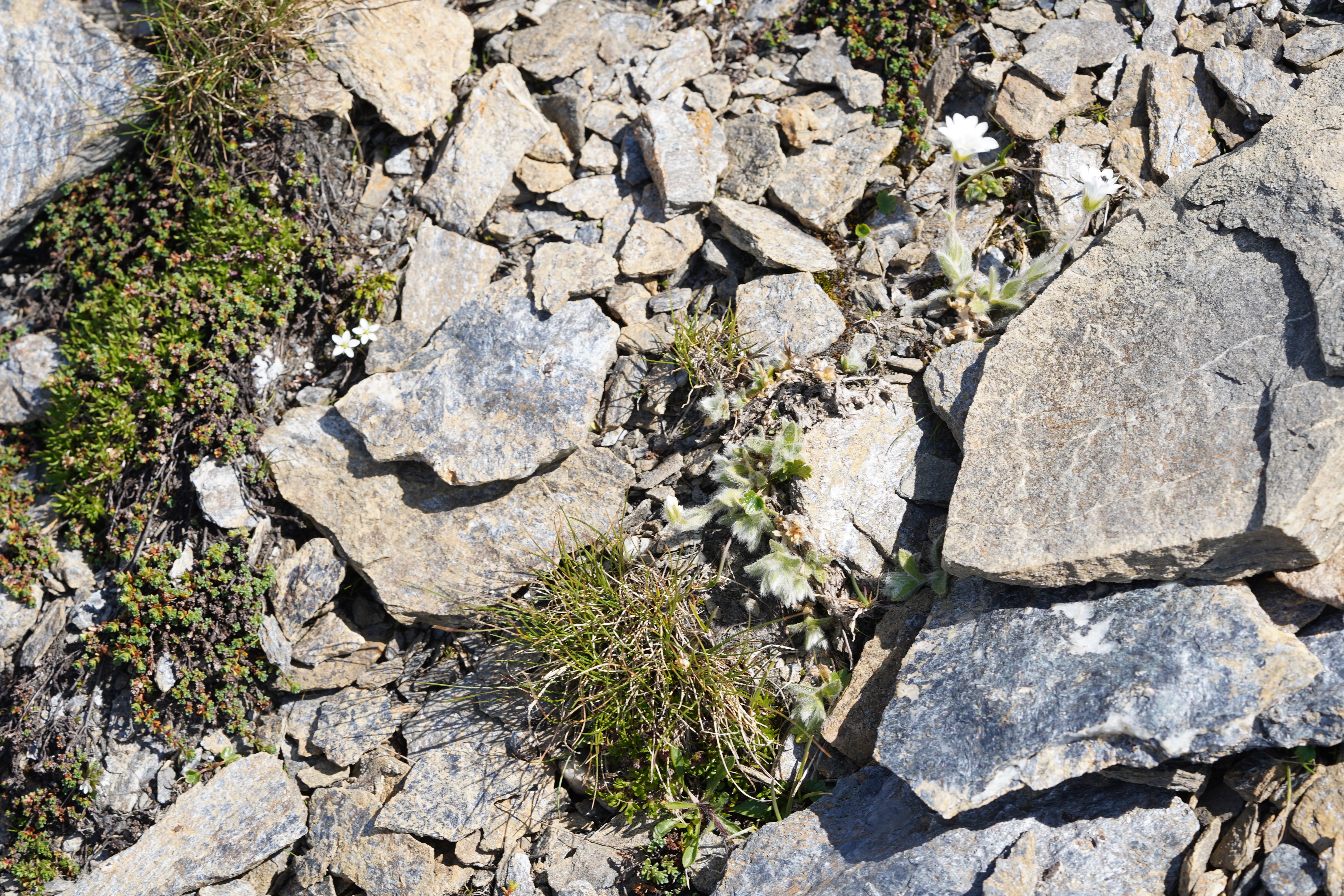 Gestern gab es im Schutt oberhalb Avers, Cresta auch mehrfach Cerastium alpinum. Jedoch in einer stark behaarten Form. Früher wurde ja anscheinend mal eine var. lanatum unterschieden mit besonders haarigen Blättern, mittlerweile wird diese aber anscheinend synonymisiert mit alpinum in der Flora Helvetica.