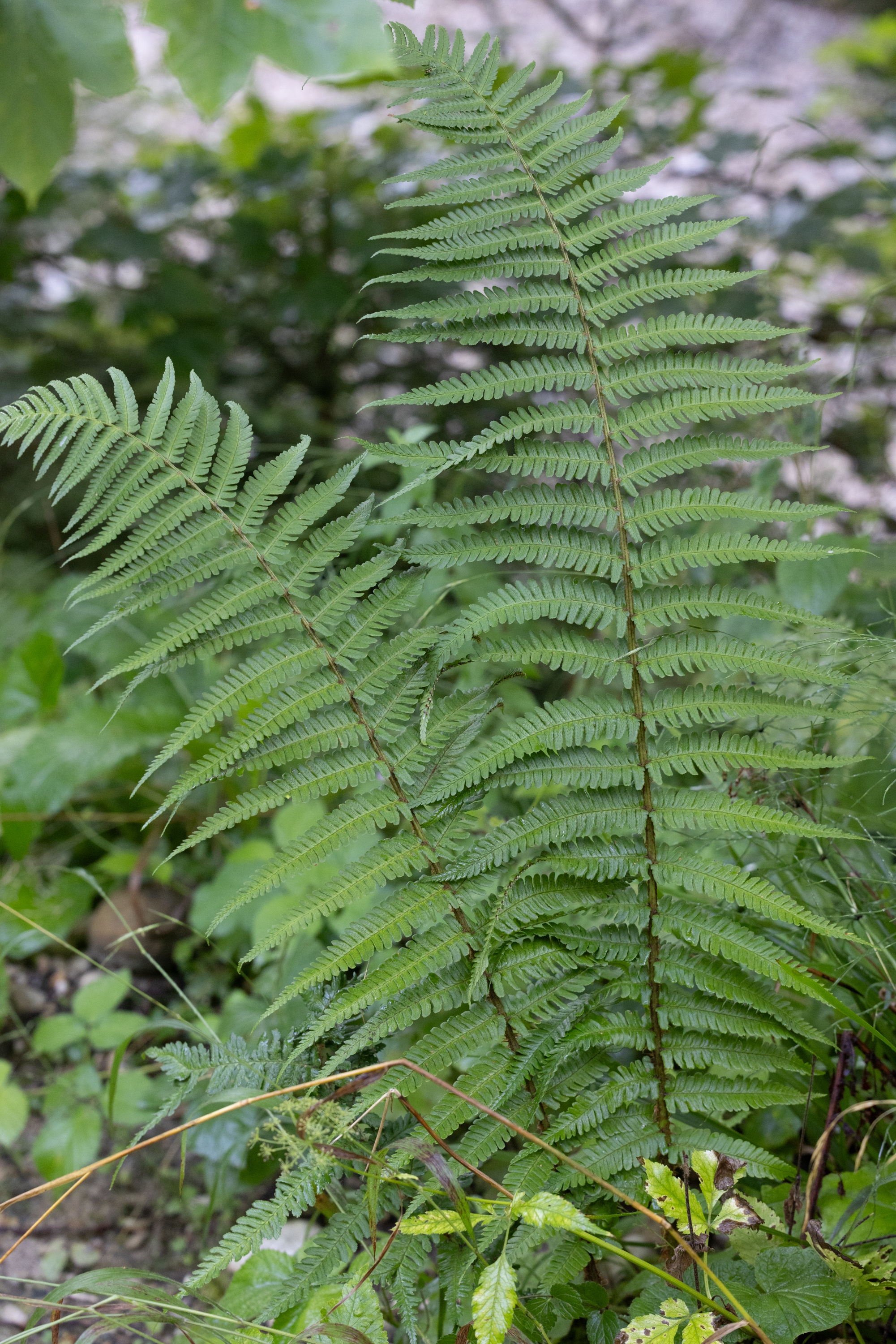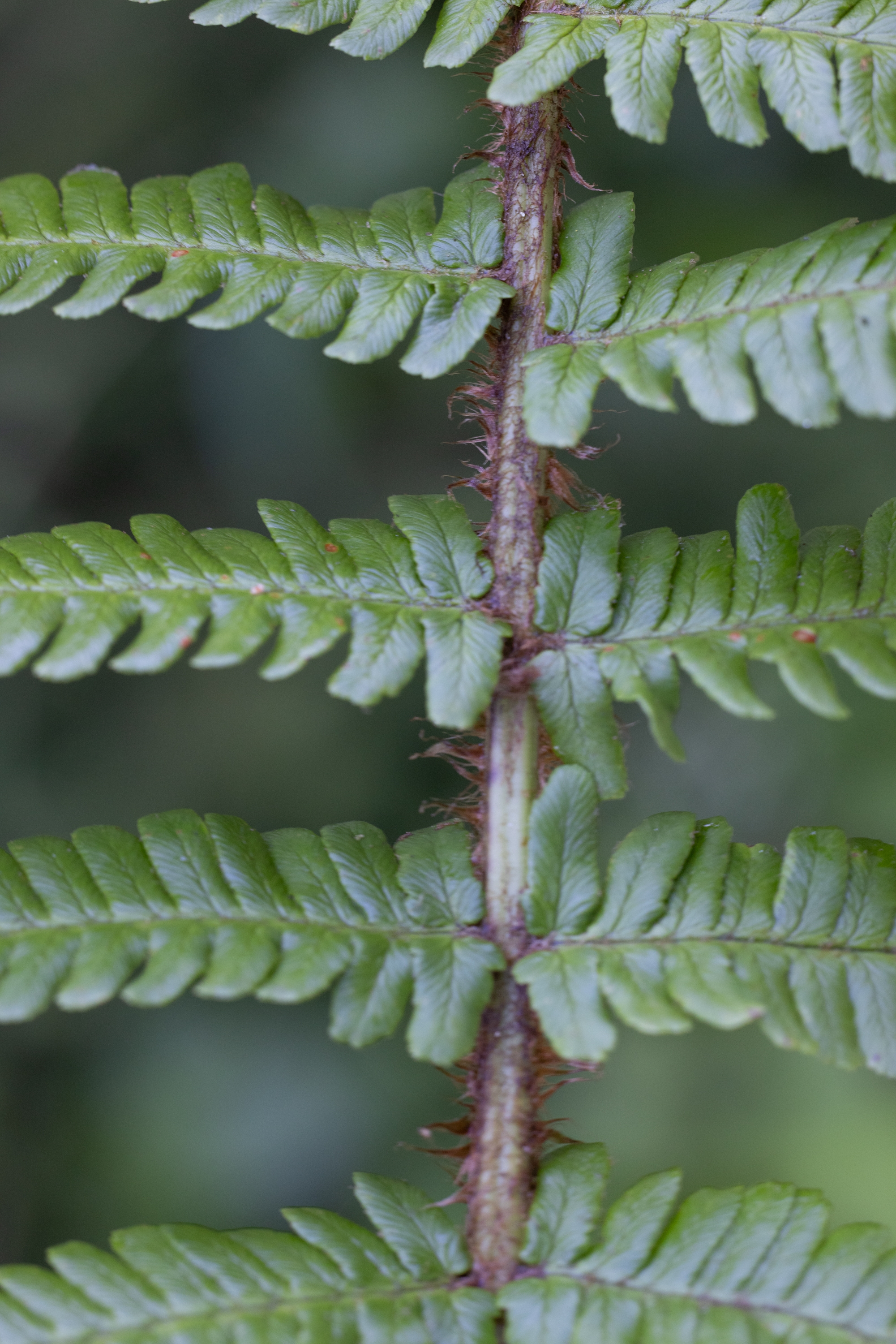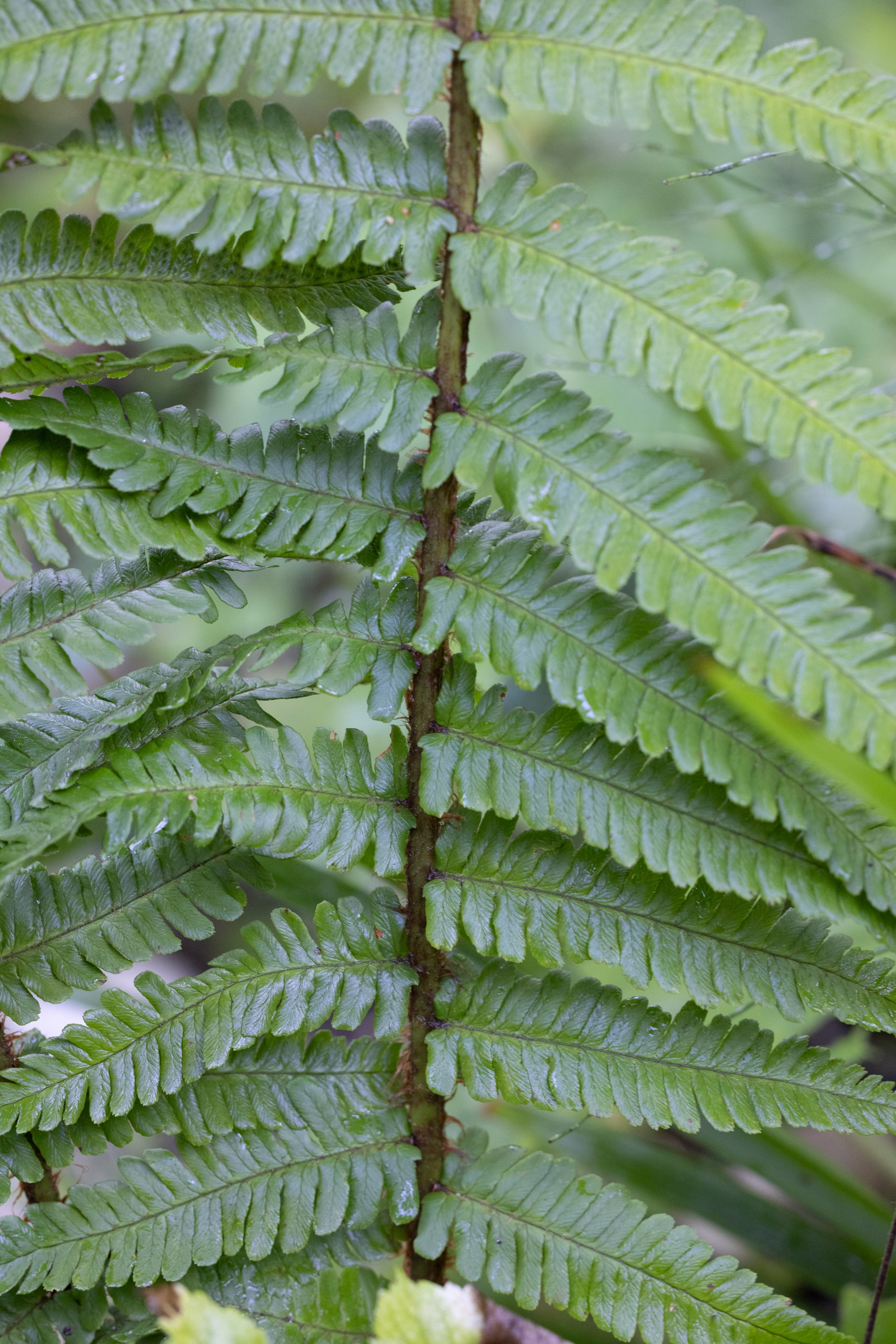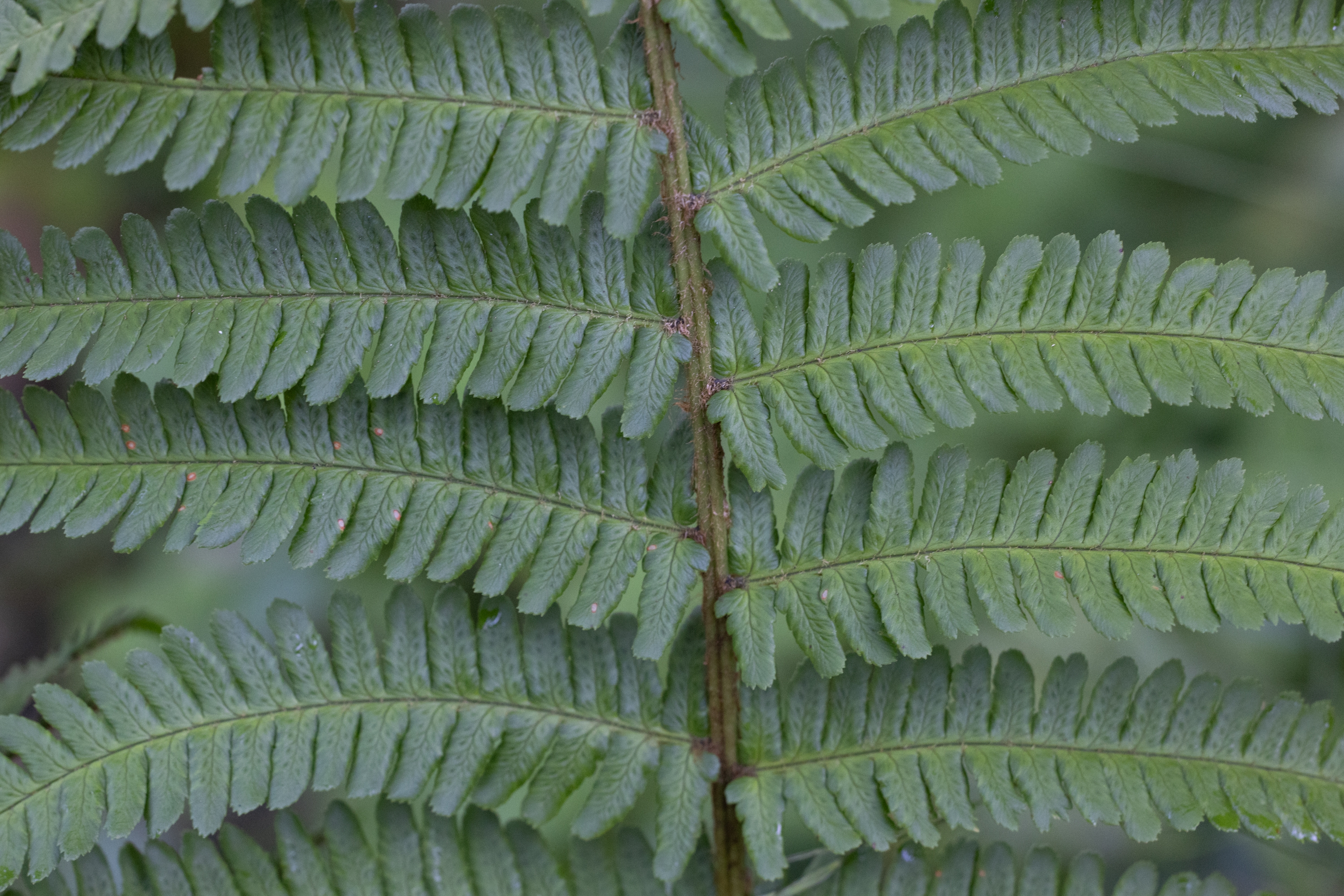 Ich stimme dir zu, dass diese Pflanze nicht ganz eindeutig zu bestimmen ist, also ob sie den Diploiden oder den Triploiden zuzurechnen ist. Ein paar Merkmale (Schuppendichte, Schleierform und Dicke) könnten zu diploiden Arten von Dryopteris affinis passen (und dennoch wüsste ich nicht, wohin ich sie stellen soll), während andere Merkmale auf D. borreri s.l. passen: Einige Schleier schrumpfen eben doch recht stark, in den unteren Fiedern sind die Enden der Fiederchen schräg geschnitten, die feinen Schuppen auf der Fiederspindel zeigen kaum mehr eine Färbung, die Blattnerven sind zwar sichtbar, jedoch nicht so ausgeprägt durchscheinend wie bei diploiden. Und sehr stark spricht für D. borreri, dass benachbarte Fiederchen oft ungleiche Längen haben und (wenn auch nur schwach ausgeprägt) in unterschiedlicher Weise verdreht sind. Das Blatt zeigt keinen besonderen Glanz und insgesamt zeigt die Pflanze keinen besonderen Charakter, so wie dies für D. borreri “charakteristisch” ist :o)