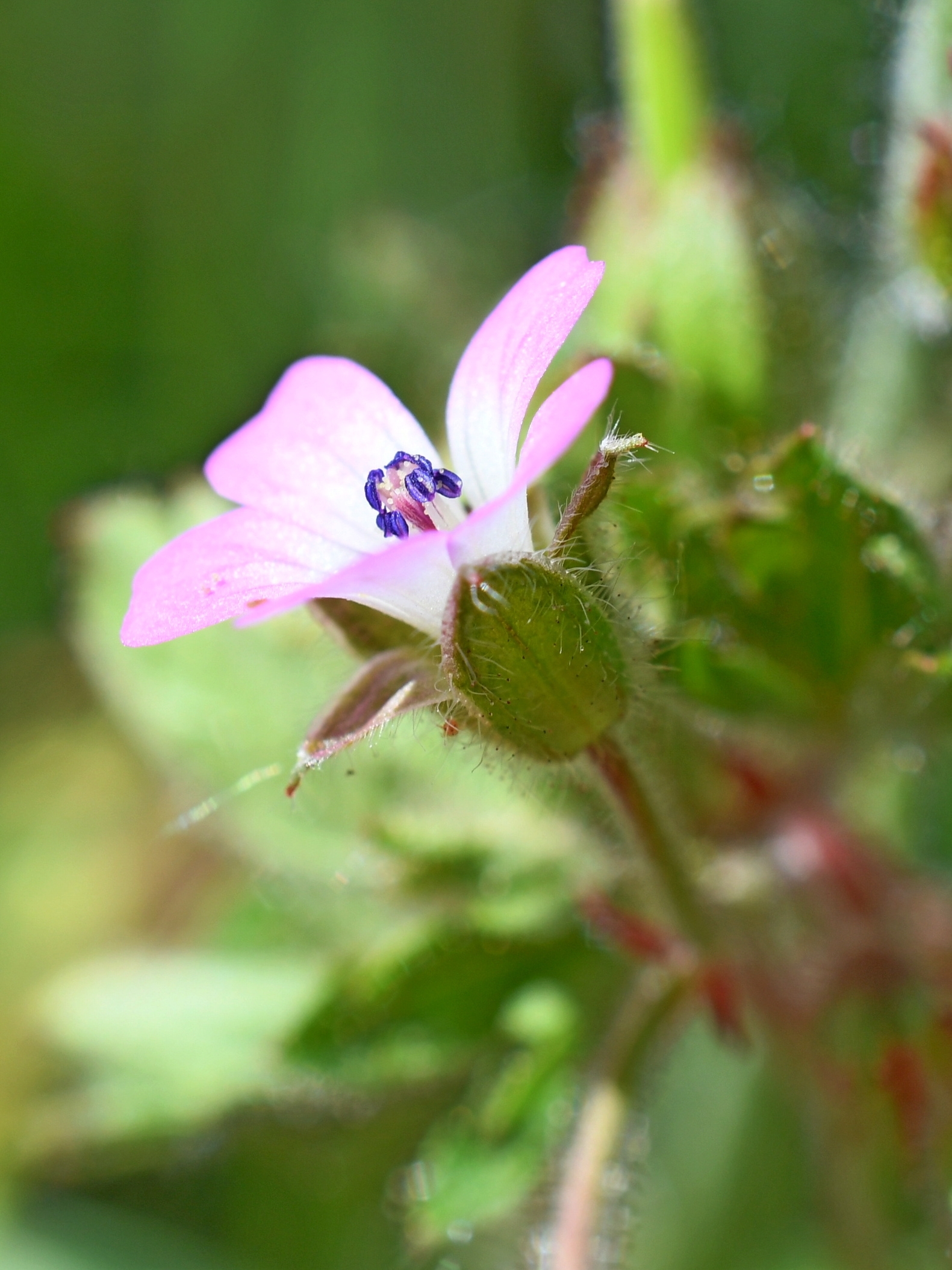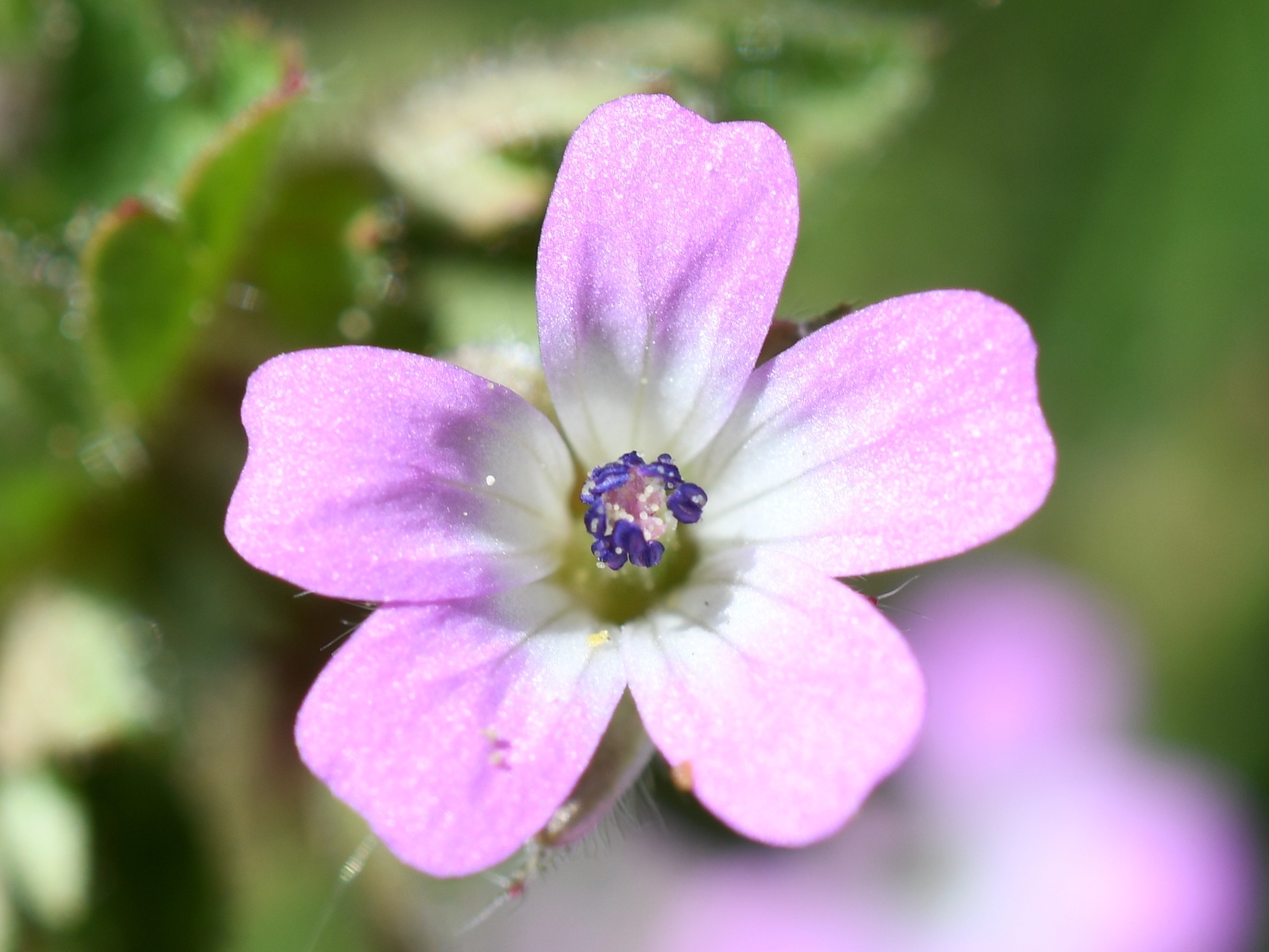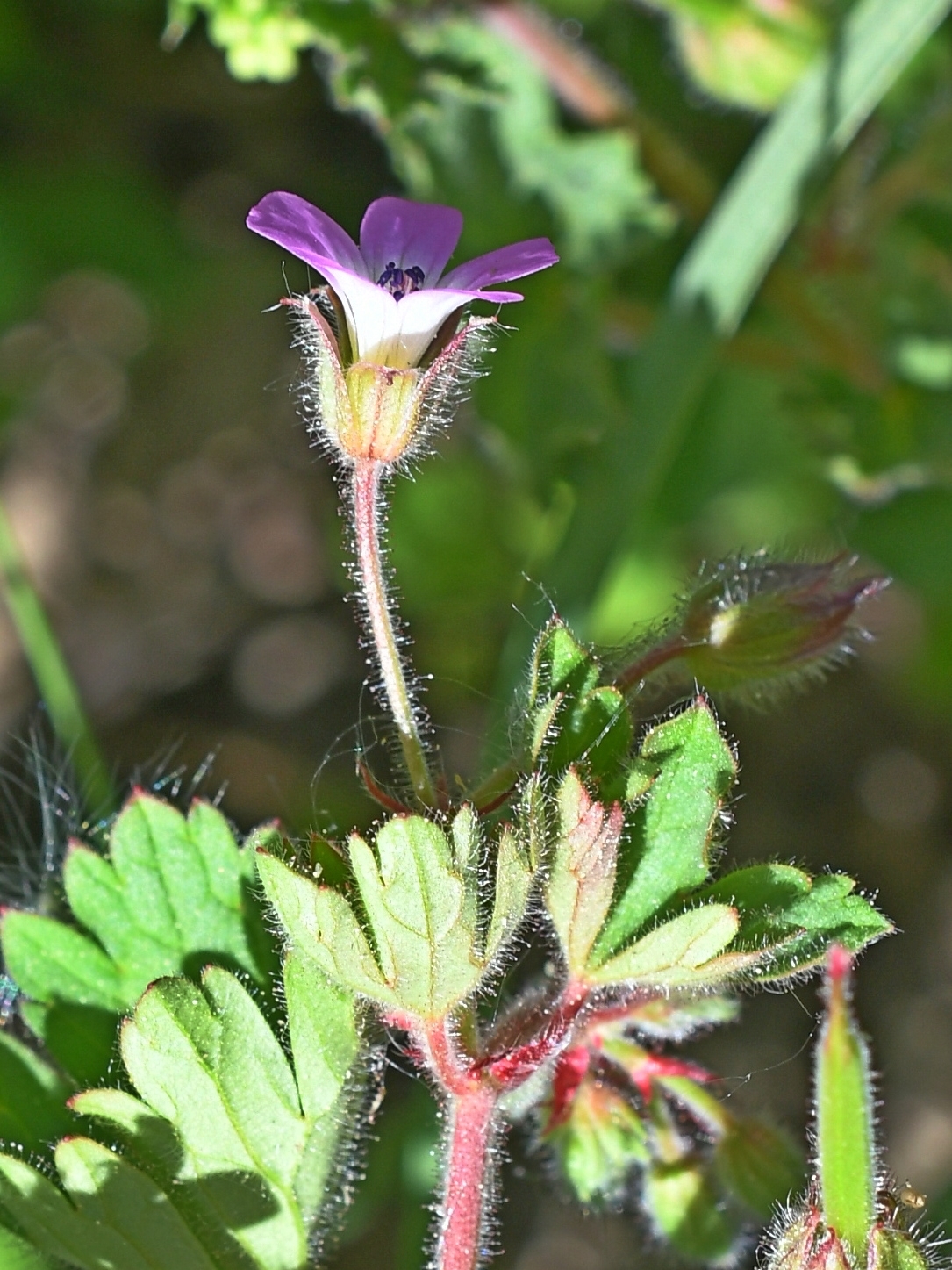Ja, die dichte Behaarung mit einfachen Haaren und Drüsenhaaren passt zum Rundblättrigen Storchschnabel (Geranium rotundifolium)!