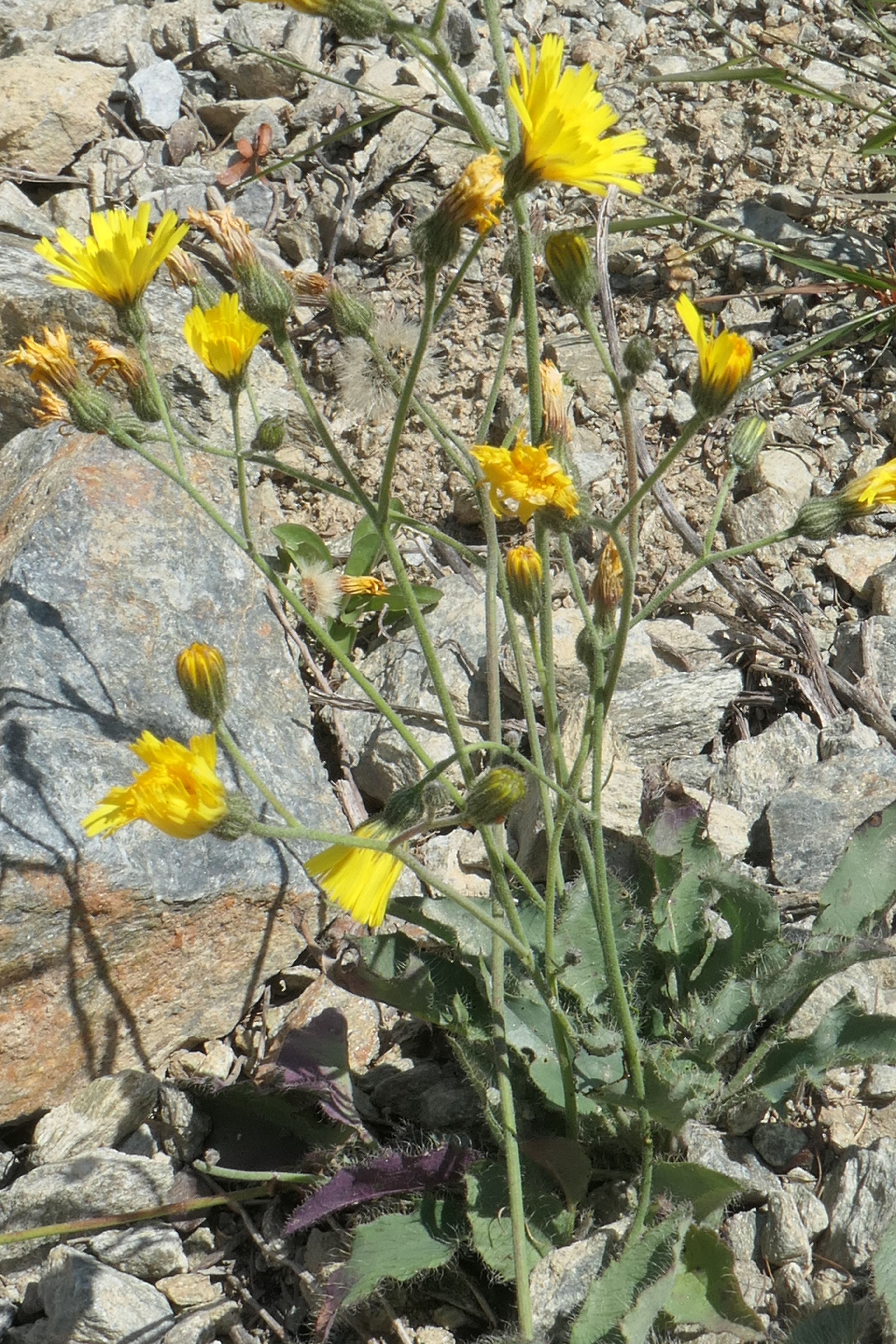Die Art H. glanduliferum subsp. piliferum ist es nicht, diese müsste Einköpfig sein, nur selten 2 - 3 Köpfig und deutlich gedrungener. Welche Arten bei INFOFLORA in H. piliferum aggr. enthalten sind weiss ich nicht. Leider hinken wir in der Schweiz punkto Nomenklatur und Taxonomie der Hieracium hinterher. Siehe auch Flora Germanica Band 3, Kritische Gattungen, auf Seite 619.