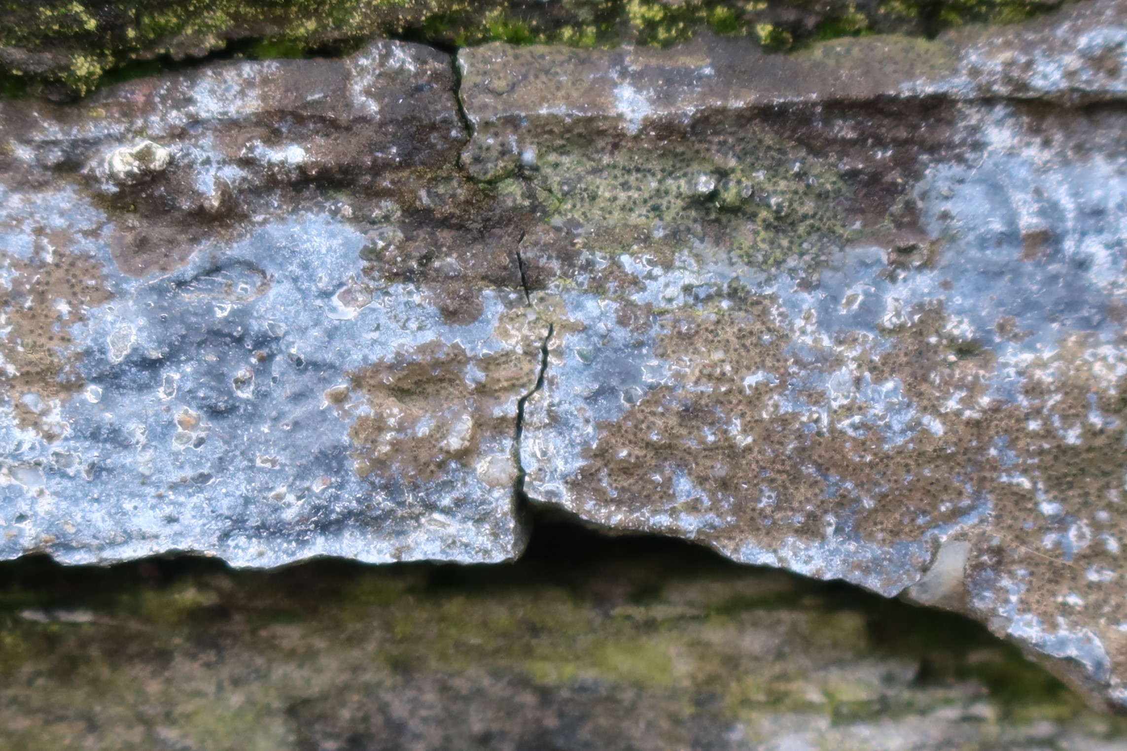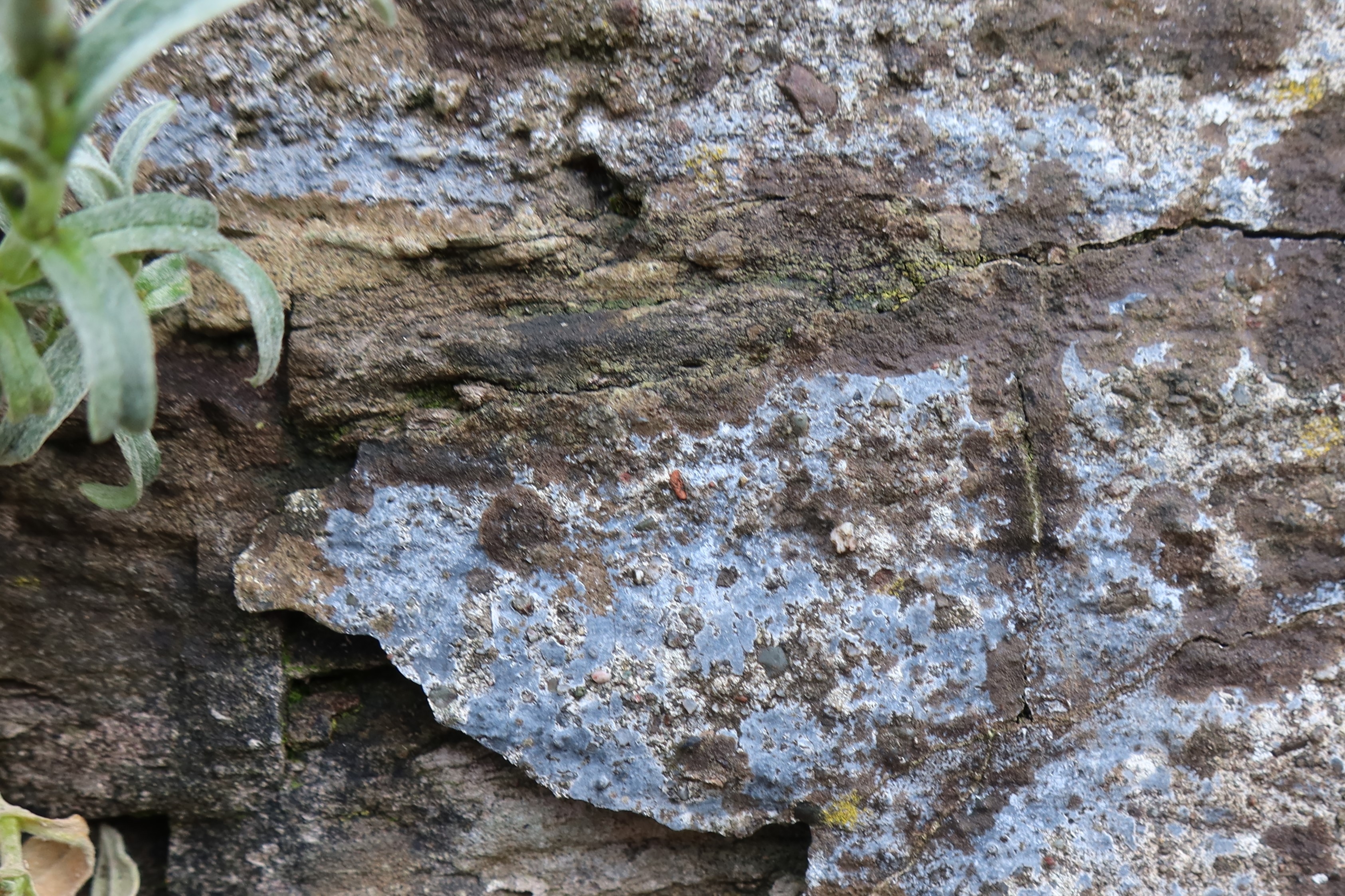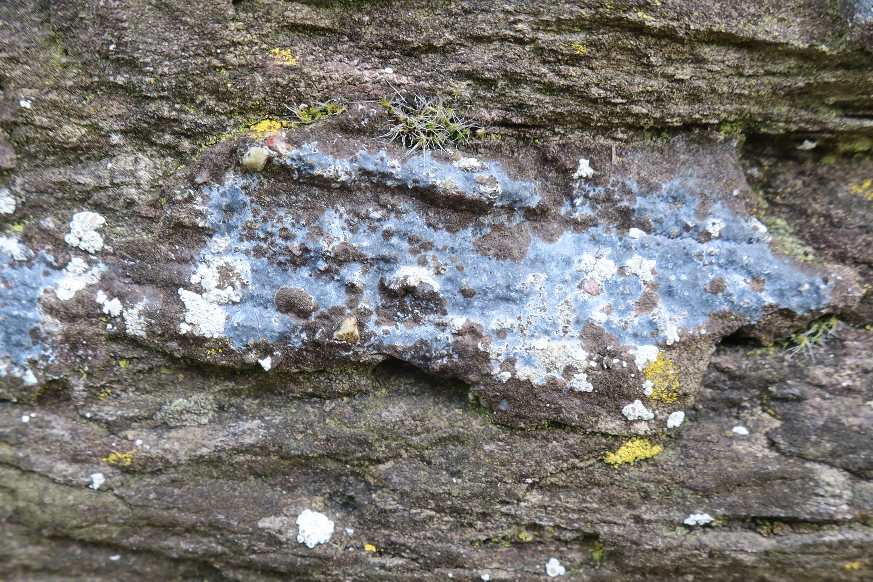 An einer alten Mauer mitten im Dorf Oberhofen am Thunersee. Auf Grund der Farbe wohl eindeutig Hymenelia coerulea. Interessant: die Flechte wächst nur auf dem Mörtel, mit dem die alte Mauer mal geflickt wurde. Hat dies mit dem Kalkgehalt zu tun?