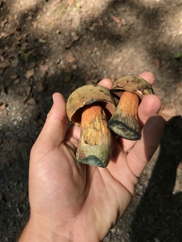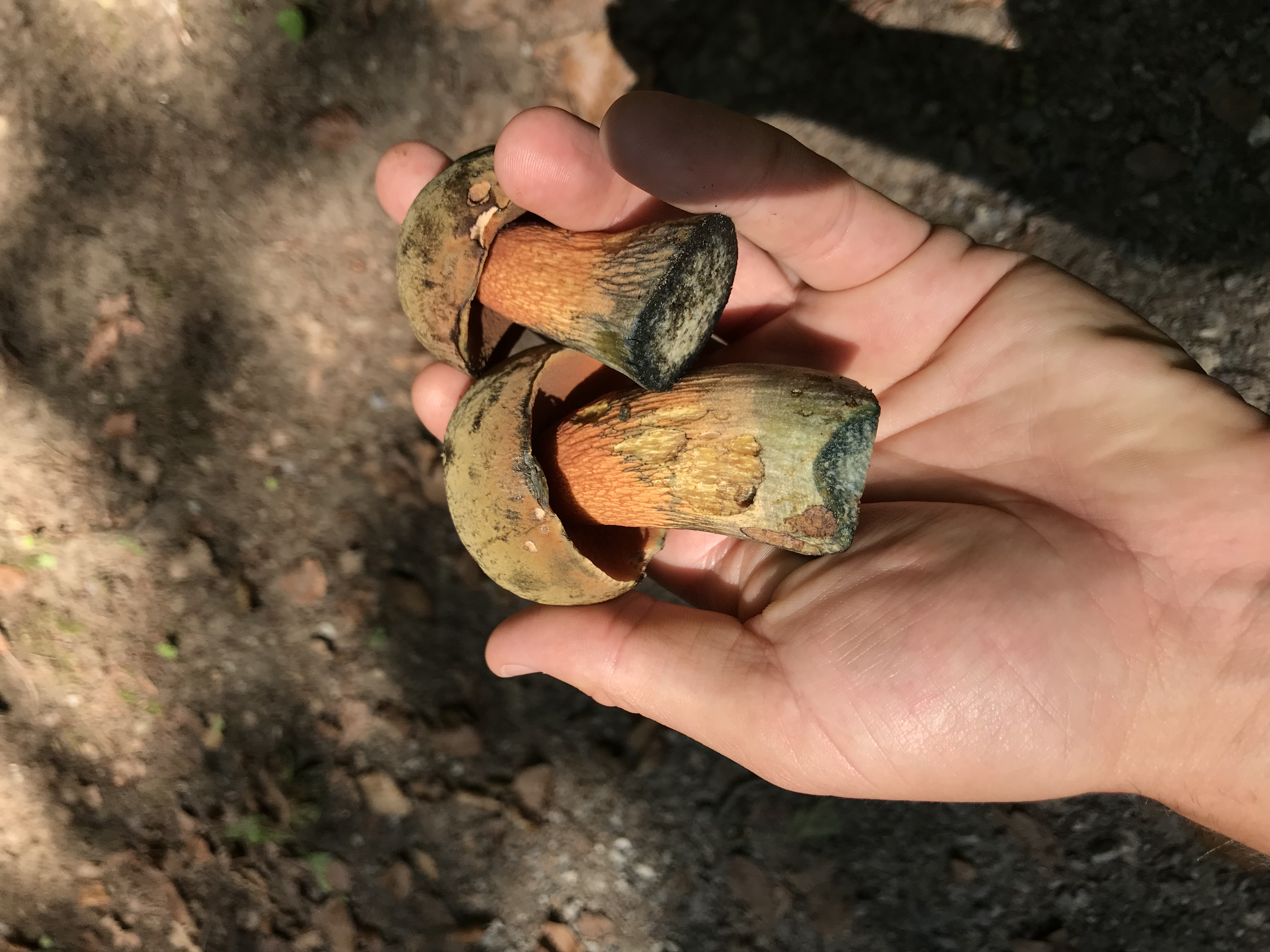 Ganz einfach: Suillellus luridus (Netzstieliger Hexenröhrling) bevorzugt kalkhaltige Böden, während Neoboletus erythropus (Flockenstieliger Hexenröhrling) saure Böden liebt. Bis vor kurzem durfte übrigens der Netzstielige Hexenröhrling auf der Pilzkontrolle nicht freigegeben werden, da er als “giftig” in Kombination mit Alkoholgenuss galt, ähnlich wie der Faltentintling. Nun dürfen wir ihn auf der Kontrolle wieder freigeben. Aber da ich jahrelang Netzsielige Hexenröhrlinge weggeworfen habe, esse ich ihn nach wie vor nicht. Den “Flocki” hingegen lieben wir!