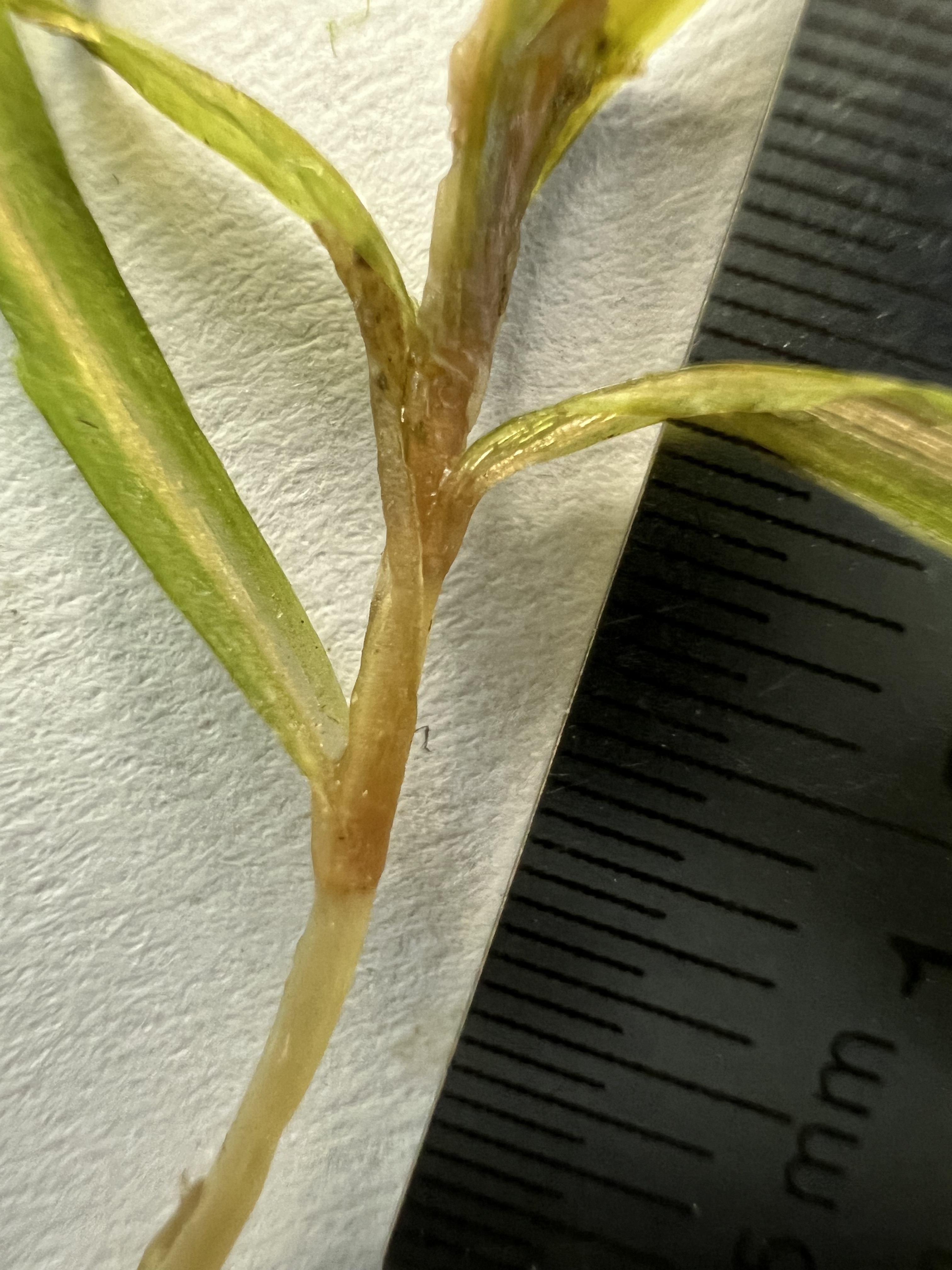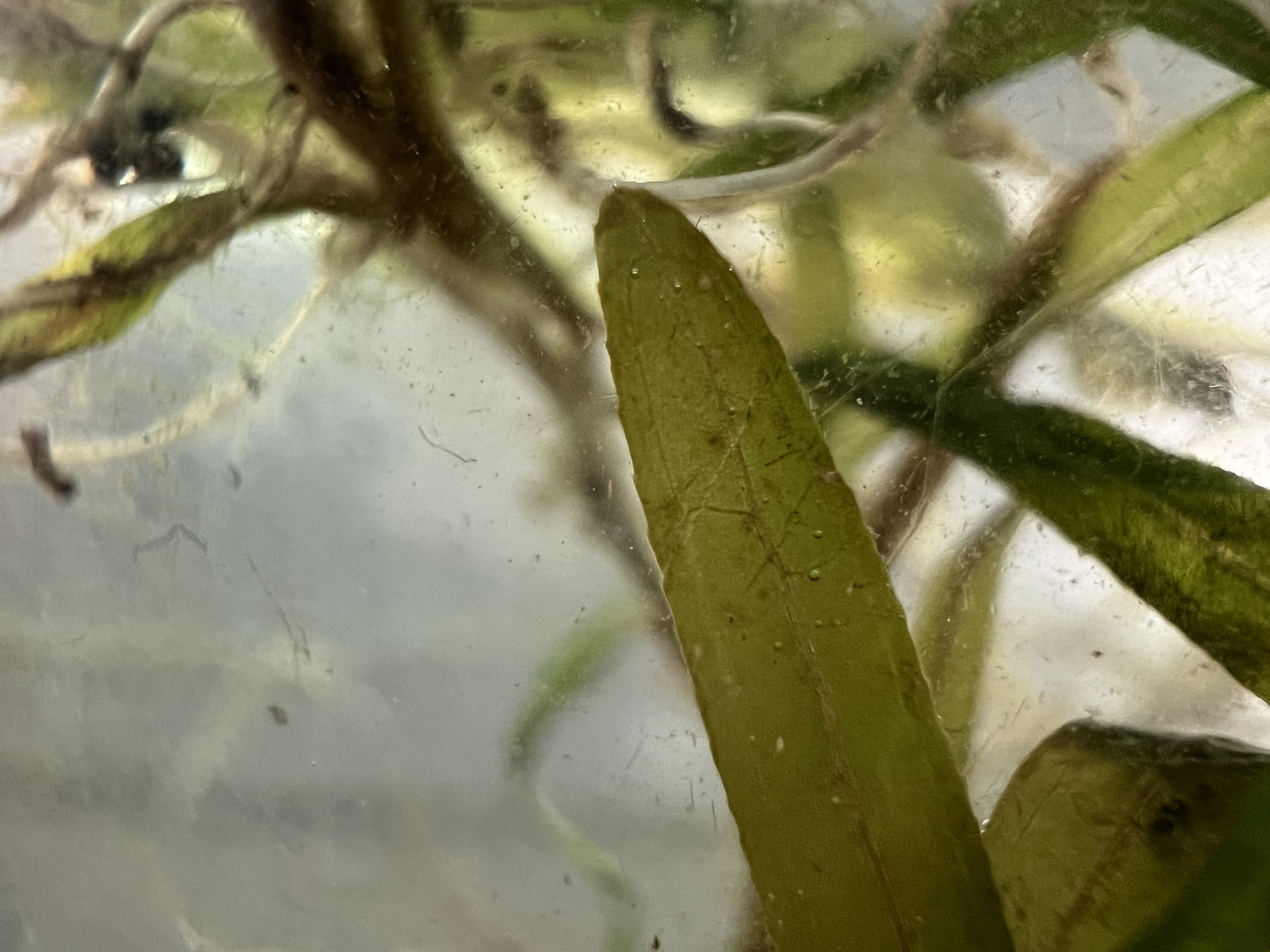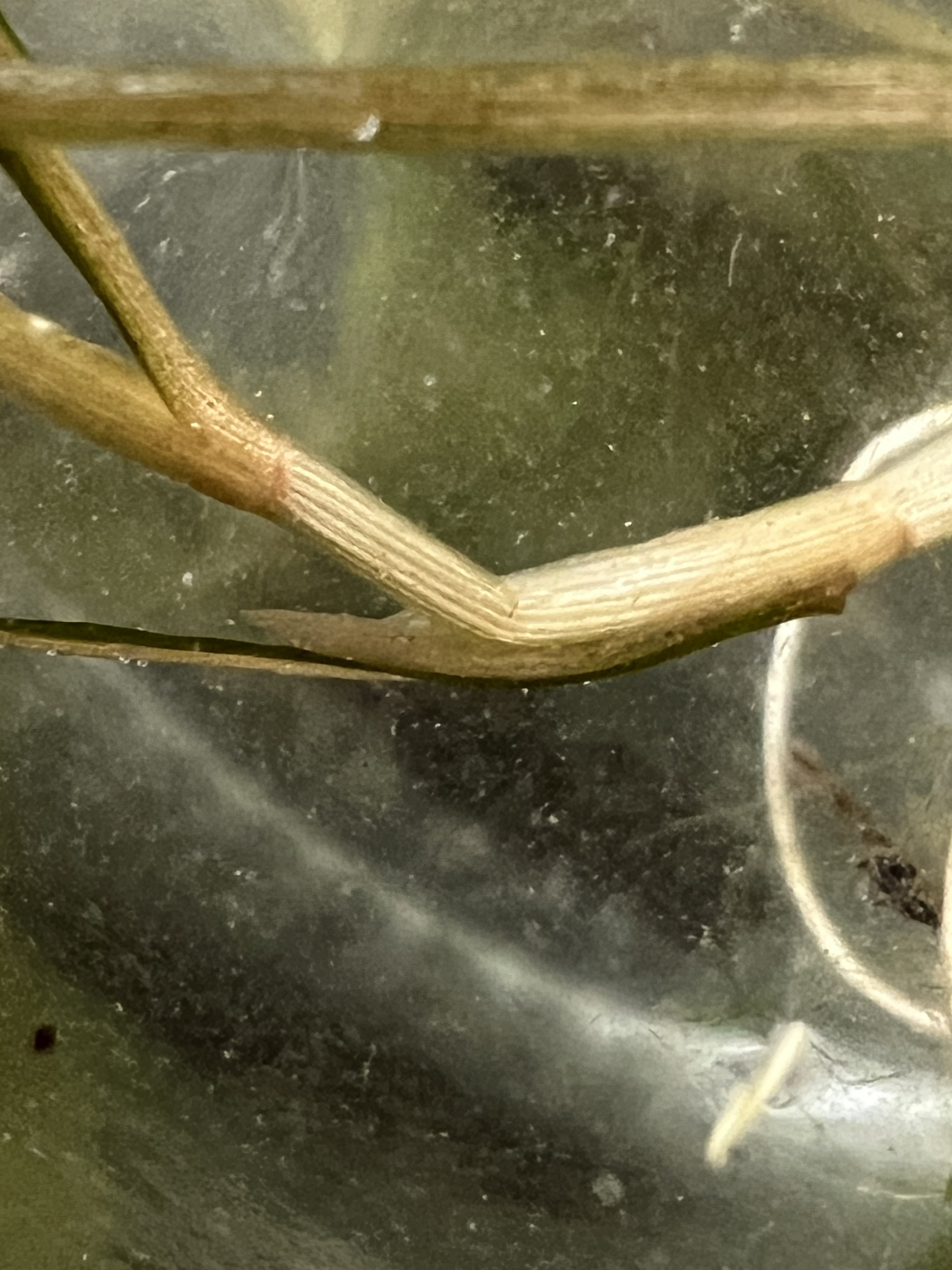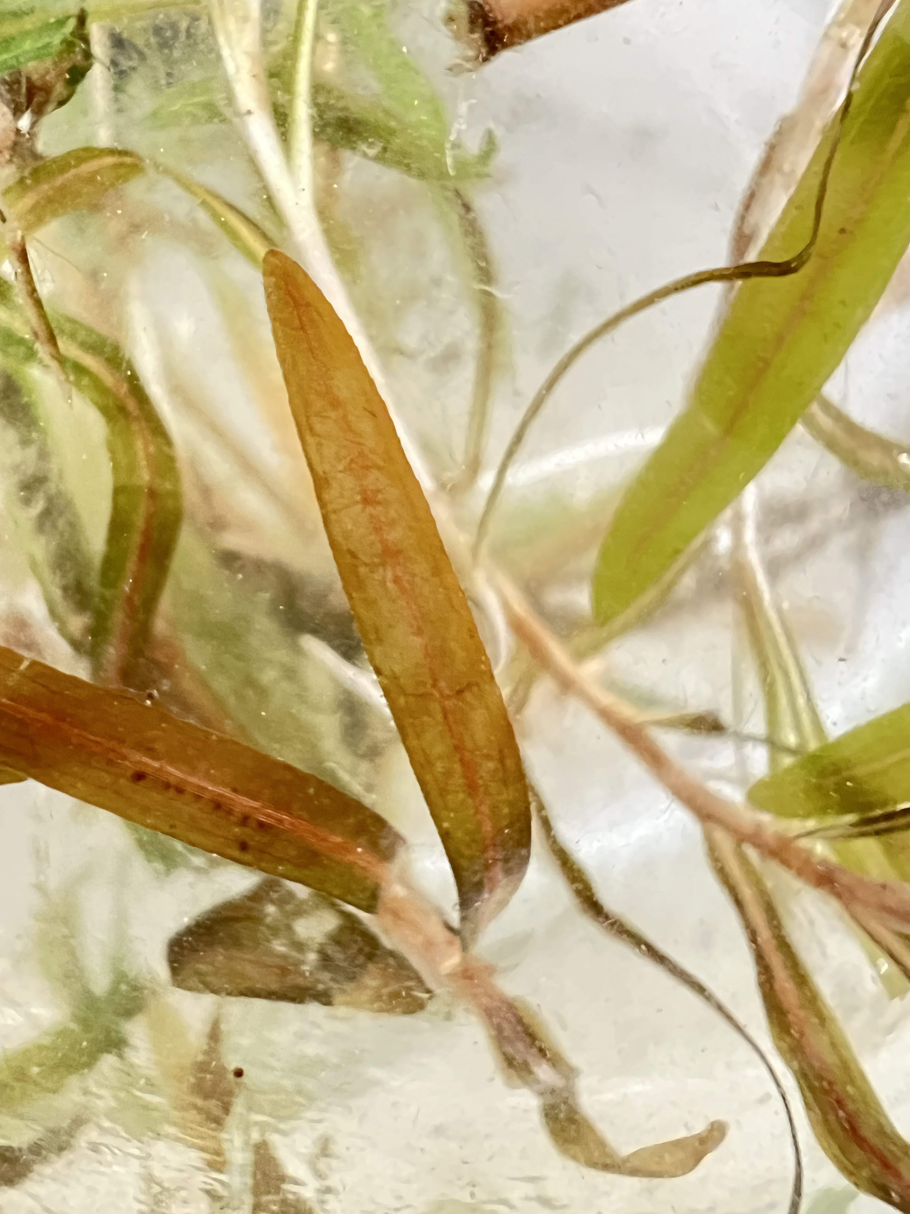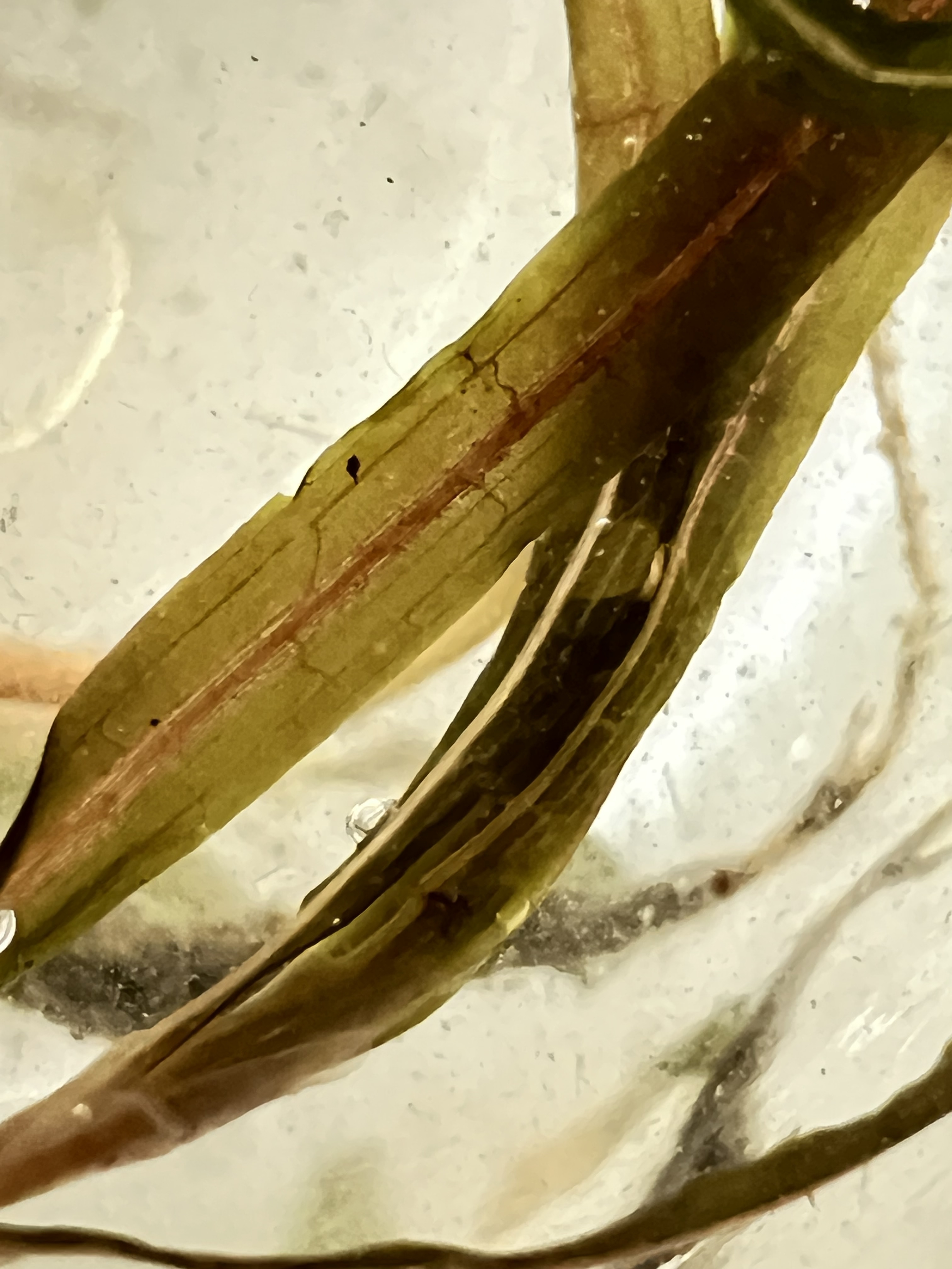 den Zweifeln ob des gezähnten Blattrandes stimme ich zu. Mit dem “Bestimmungsschlüssel für die aquatischen Makrophyten in Deutschland” komme ich Auf P. crispus x friesii oder P. crispus x trichoides. Diese unterscheiden sich durch “Zumindest einige junge Nebenblätter geschlossen” (c x f) und “alle Nebenblätter offen” (c x t). Damit habe ich schon Probleme, wenn ich eine Pflanze seziere und wage keine Aussage über die Fotos.