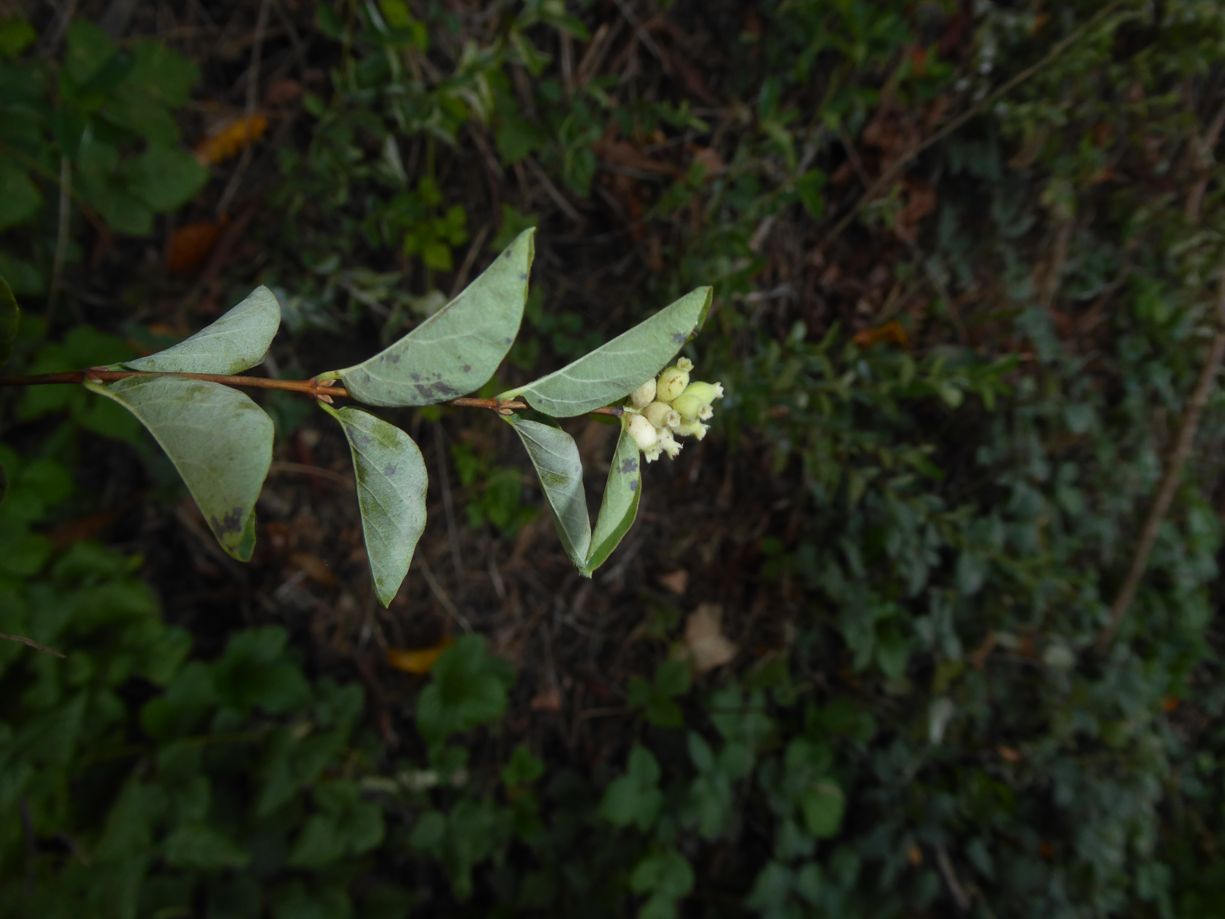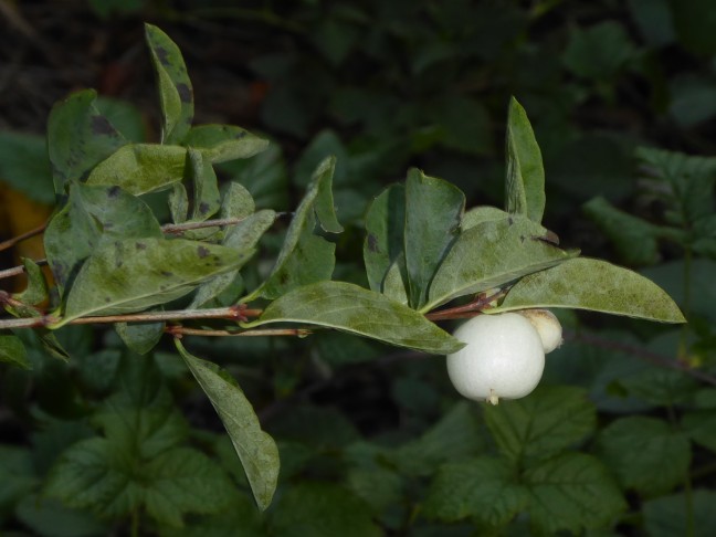Ich sehe Symphoricarpos albus, obwohl die Blüten nicht mehr vorhanden sind.