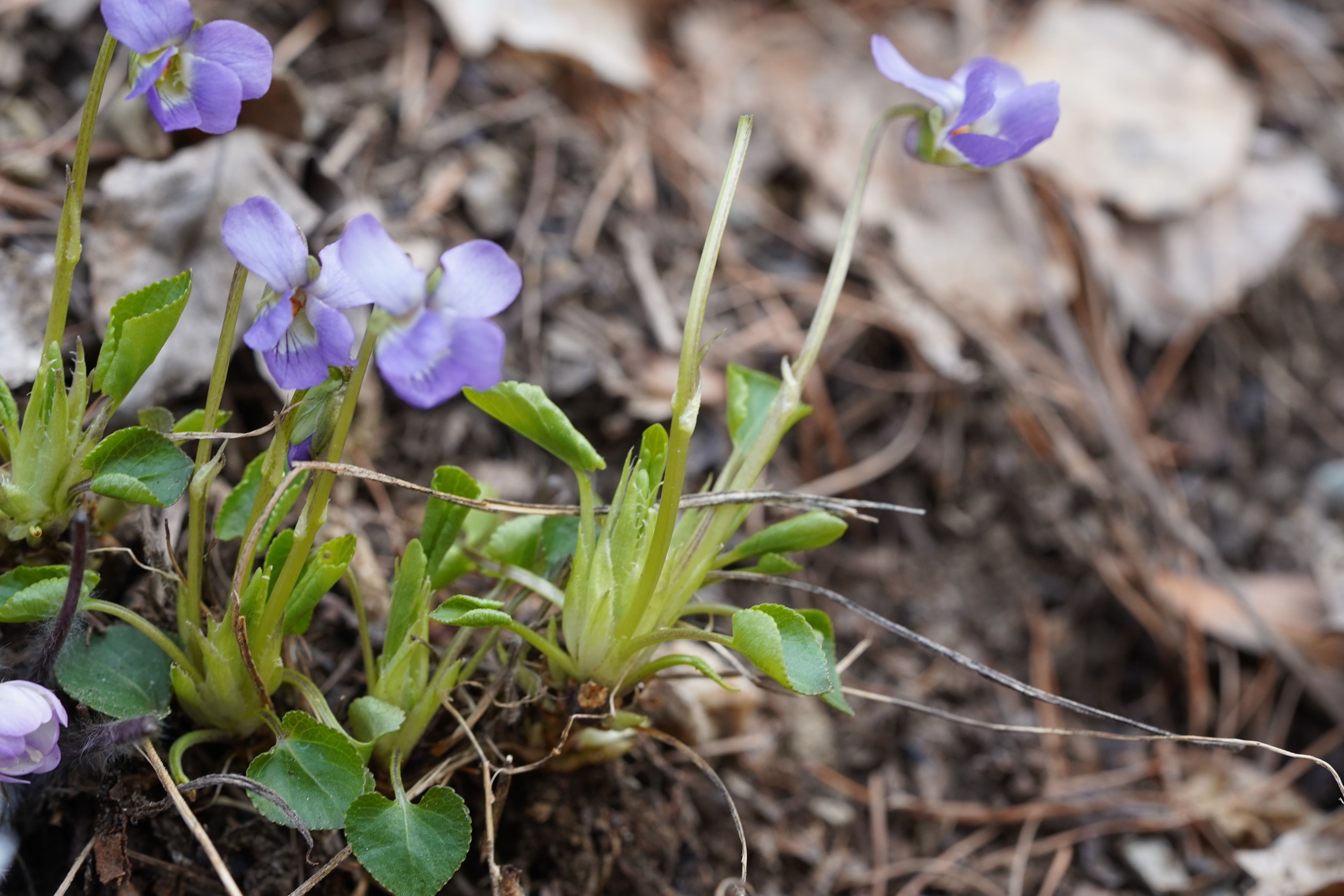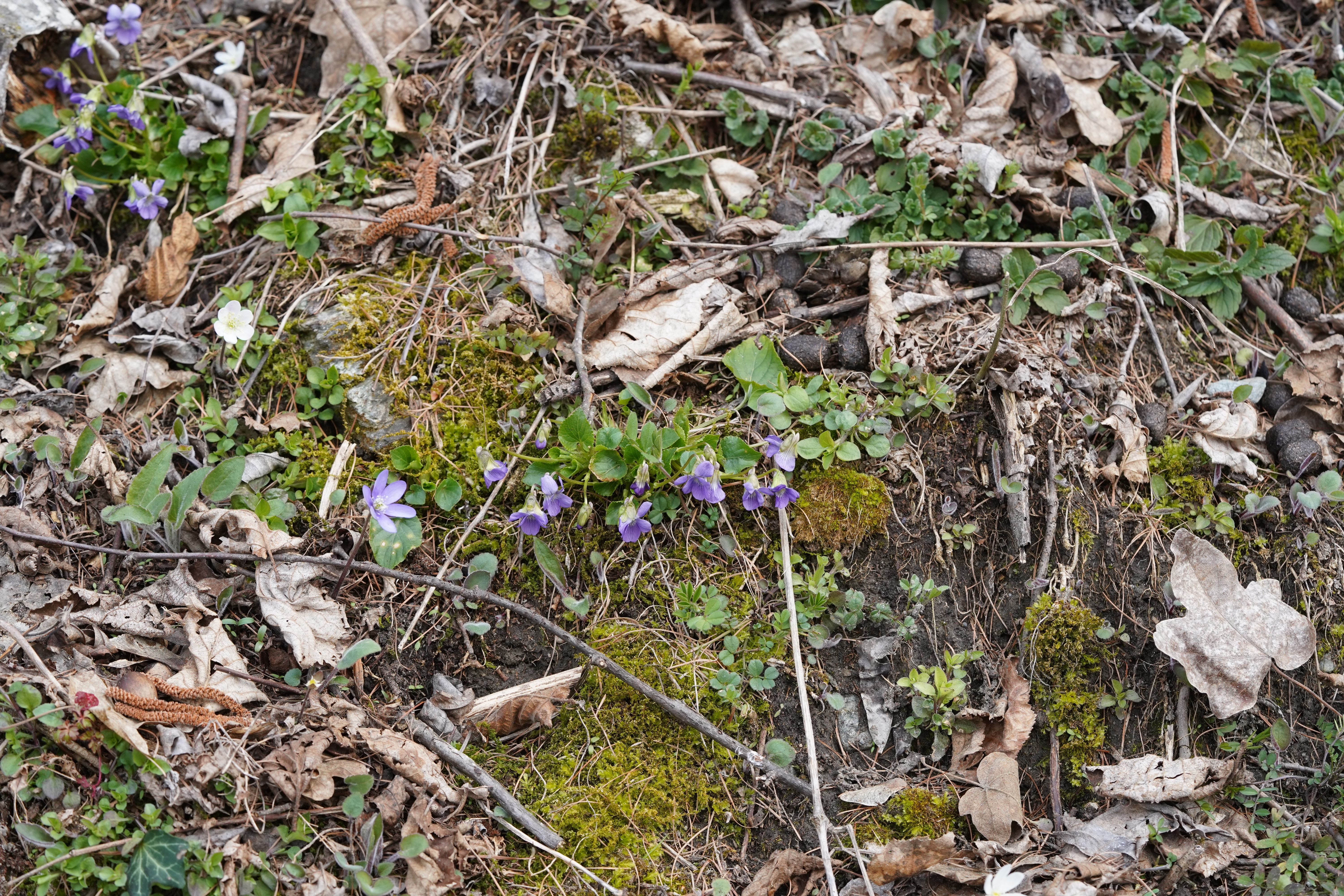 Viola pyrenaica kenne ich bislang hauptsächlich aus den Voralpen und dort meist aus höheren und oft etwas schwerer zugänglichen Lagen. Am Wochenende jedoch konnte ich dieses Veilchen erstmals im Wallis auf der Südseite finden und zwar im lückigen Ahornwald an mehreren Stellen (zusammen mit Viola collina und Corydalis intermedia). Der tiefst gelegene Fundpunkt lag dabei auf 850m, so tief unten habe ich die Art bislang noch nie wahrgenommen.