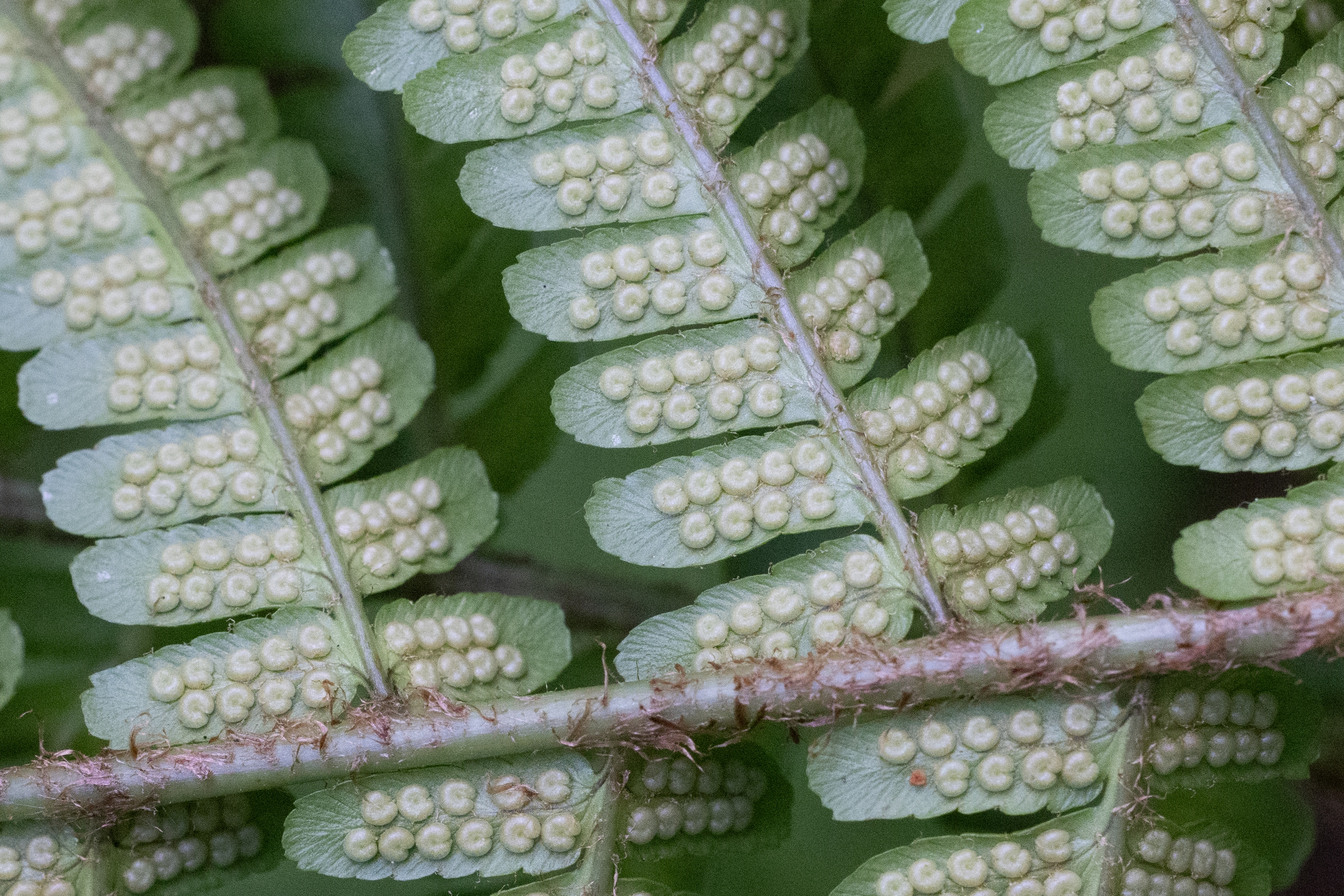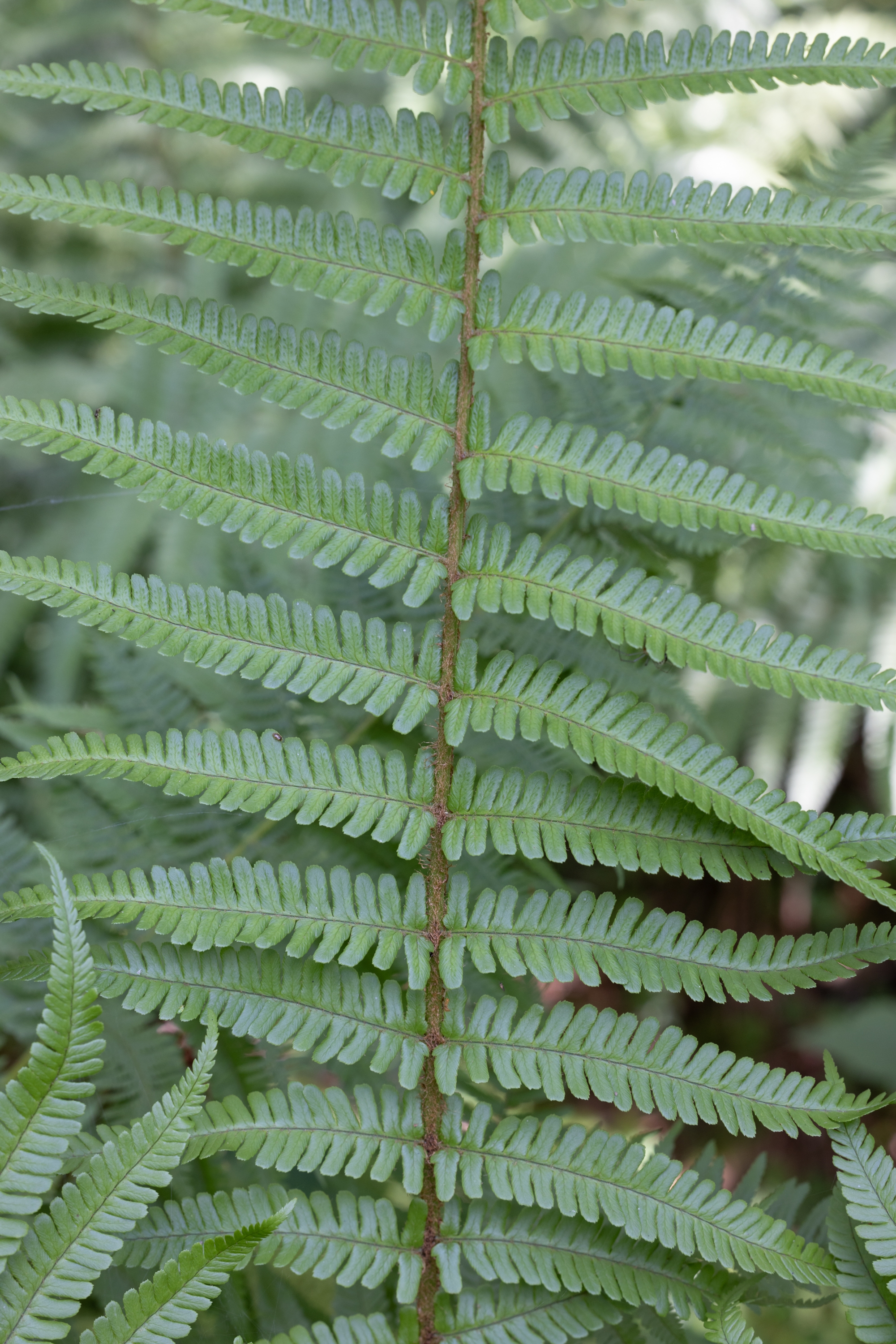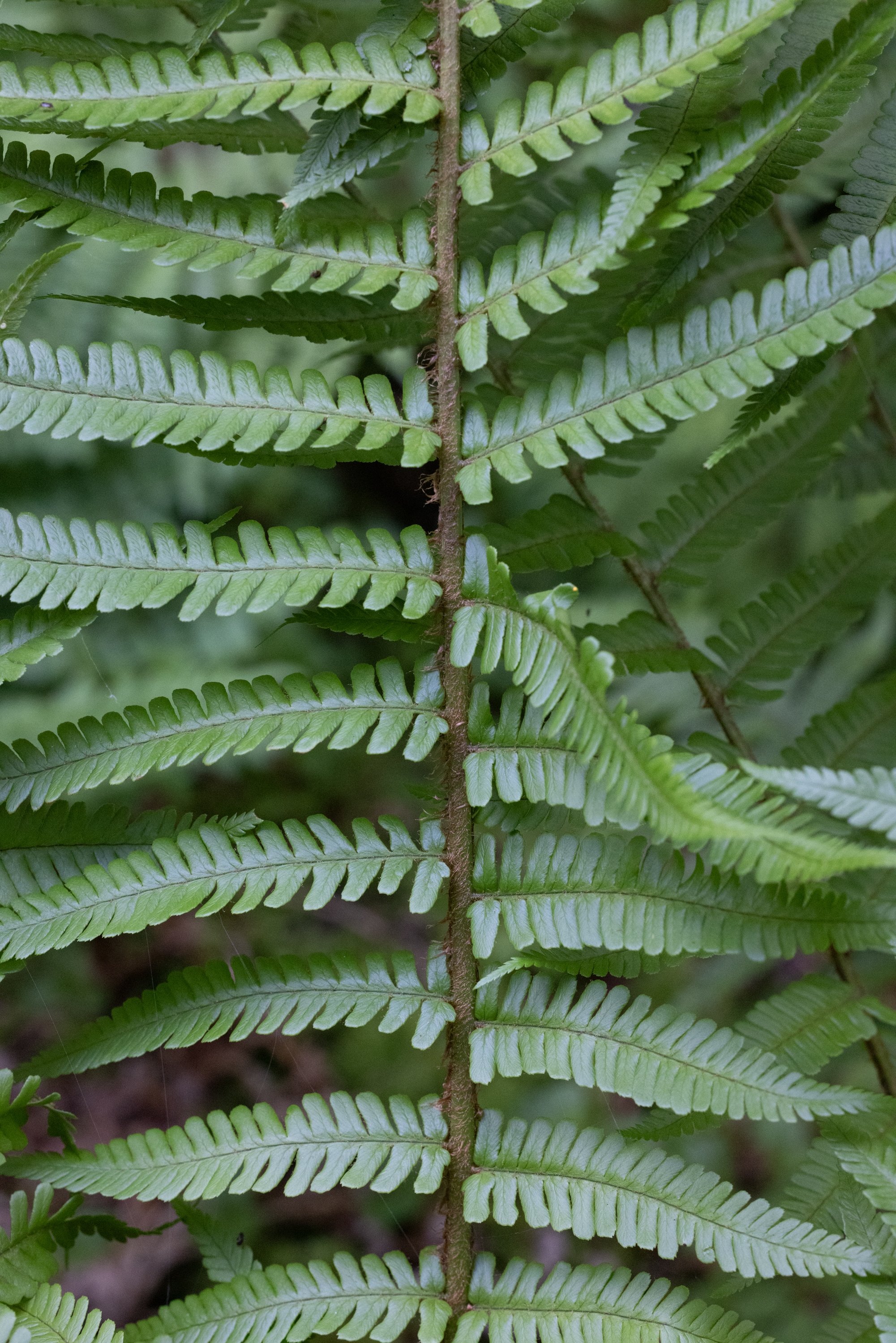 das sieht nach einem D. borreri aus, mit einem ziemlich geordneten Erscheinungsbild. Solche Formen von D. borreri waren in flowzytometrischen Untersuchungen bisher immer triploid. Sie sind manchmal schwer gegen die diploide D. affinis subsp. affinis var. affinis abzugrenzen. Für D. borreri spricht der recht schwache Glanz der Blattspreite (Oberseite); die relativ schwache Beschuppung (betrachtet im Bereich der mittleren Blattspindel - dies ist meist der Übergangsbereich zwischen sterilen und fertilen Fiedern), mit blass brauen Schuppen, die zudem nicht schön langgestreckt mit Längen über 8mm sind; die etwas trapezförmige, schräge Schnippelung (wie abgeschnitten, also nicht wohl gerundet) der Enden der Fiederchen im unteren Drittel der Blattspreite; die schwache Beschuppung der Blattspindeln im fertilen Bereich. Zur Sporenreife sollten die Schleier der Pflanze pfifferlingsartig einschrumpfen, während sie bei Var. affinis relativ formstabil bleiben, eventuell von der Seite einreißen.