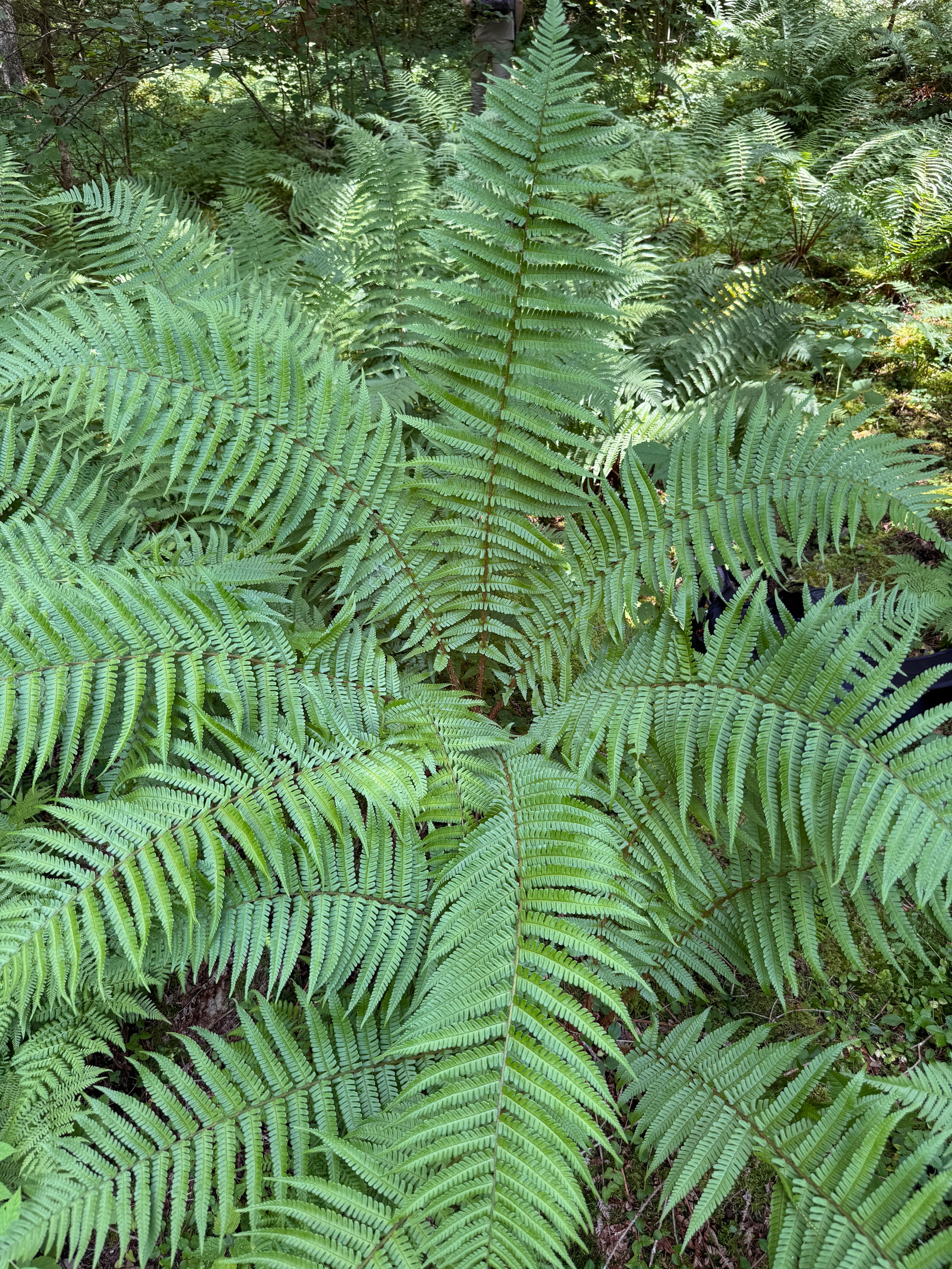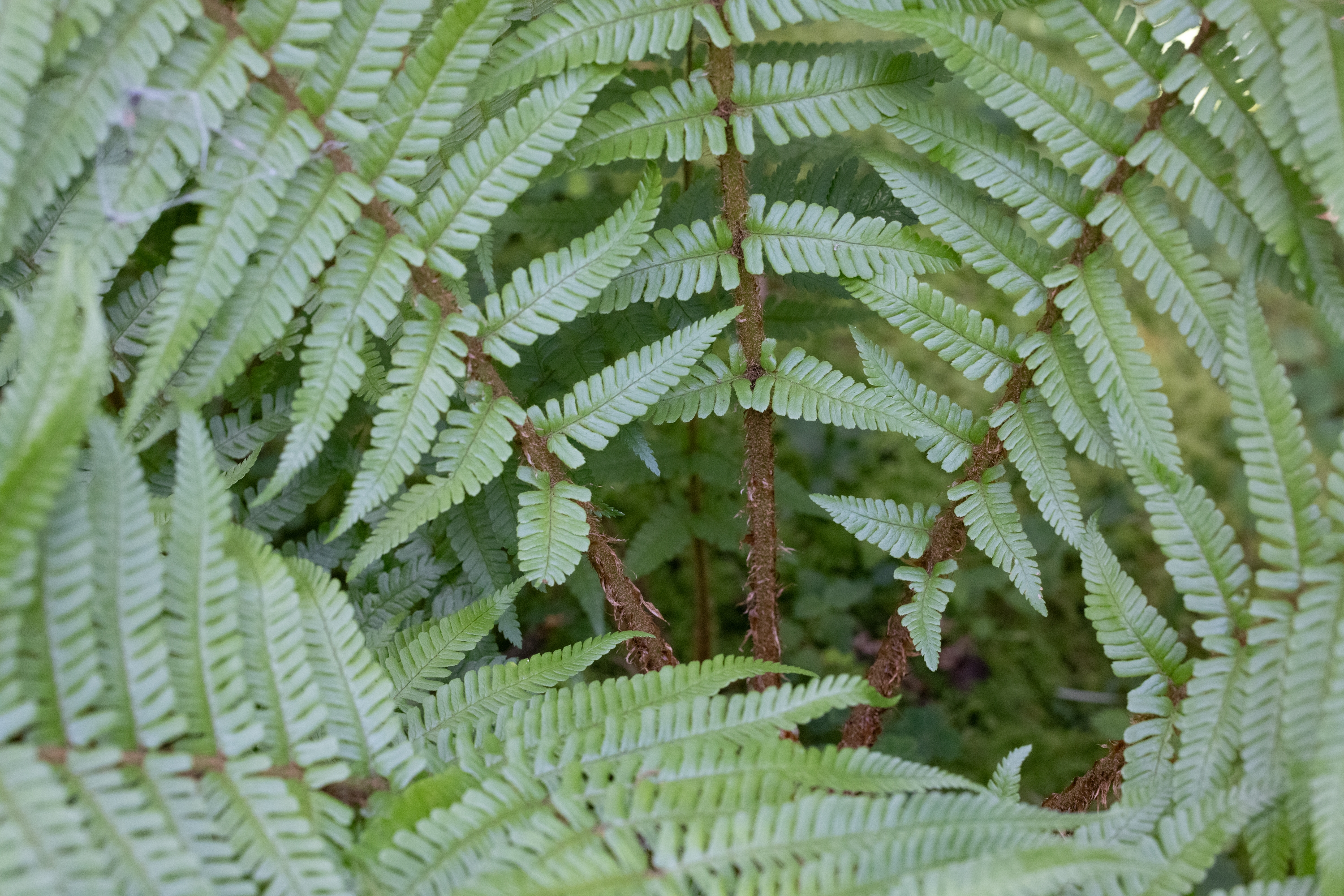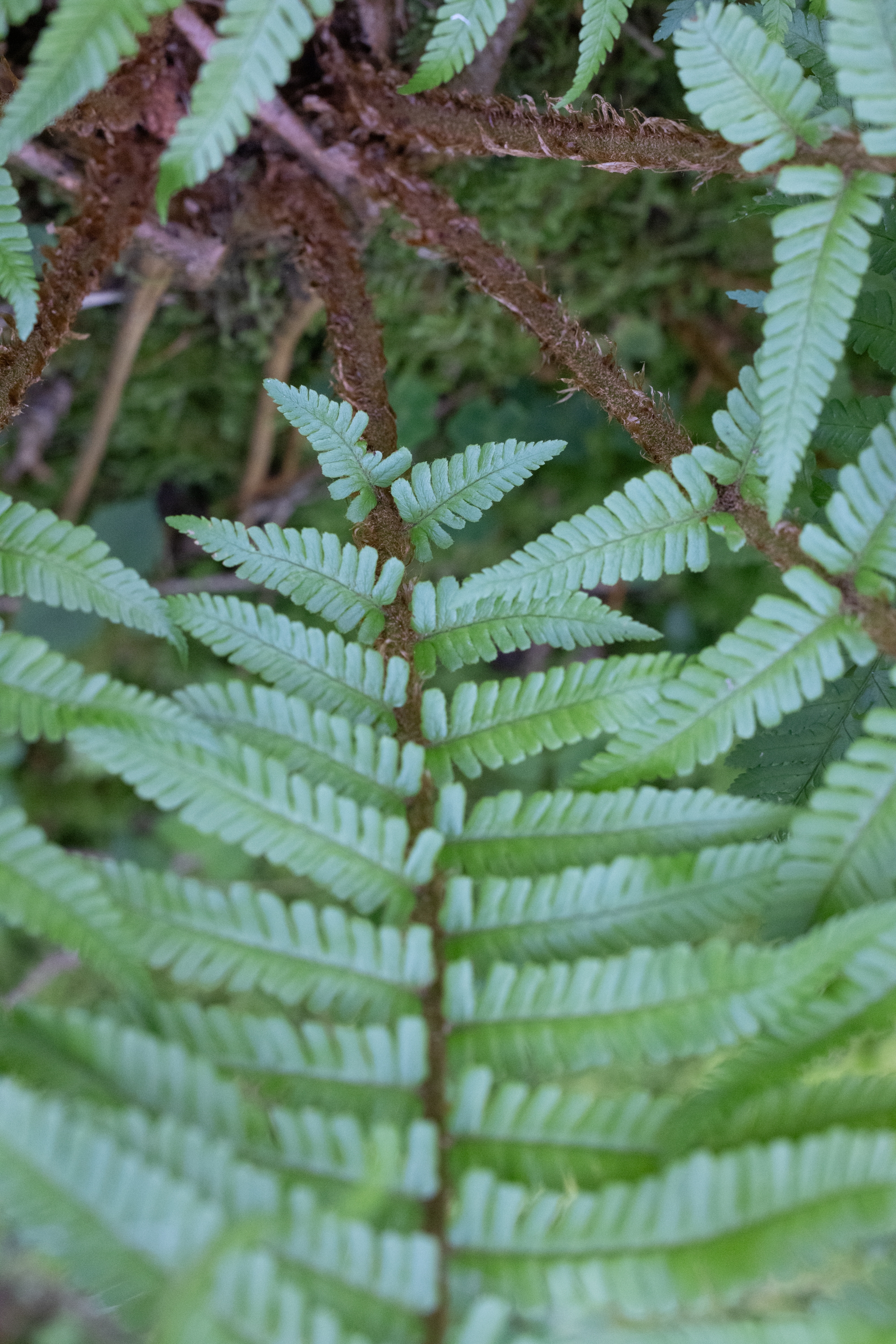 das sieht nach einem D. borreri aus, mit einem ziemlich geordneten Erscheinungsbild. Solche Formen von D. borreri waren in flowzytometrischen Untersuchungen bisher immer triploid. Sie sind manchmal schwer gegen die diploide D. affinis subsp. affinis var. affinis abzugrenzen. Für D. borreri spricht der recht schwache Glanz der Blattspreite (Oberseite); die relativ schwache Beschuppung (betrachtet im Bereich der mittleren Blattspindel - dies ist meist der Übergangsbereich zwischen sterilen und fertilen Fiedern), mit blass brauen Schuppen, die zudem nicht schön langgestreckt mit Längen über 8mm sind; die etwas trapezförmige, schräge Schnippelung (wie abgeschnitten, also nicht wohl gerundet) der Enden der Fiederchen im unteren Drittel der Blattspreite; die schwache Beschuppung der Blattspindeln im fertilen Bereich. Zur Sporenreife sollten die Schleier der Pflanze pfifferlingsartig einschrumpfen, während sie bei Var. affinis relativ formstabil bleiben, eventuell von der Seite einreißen.