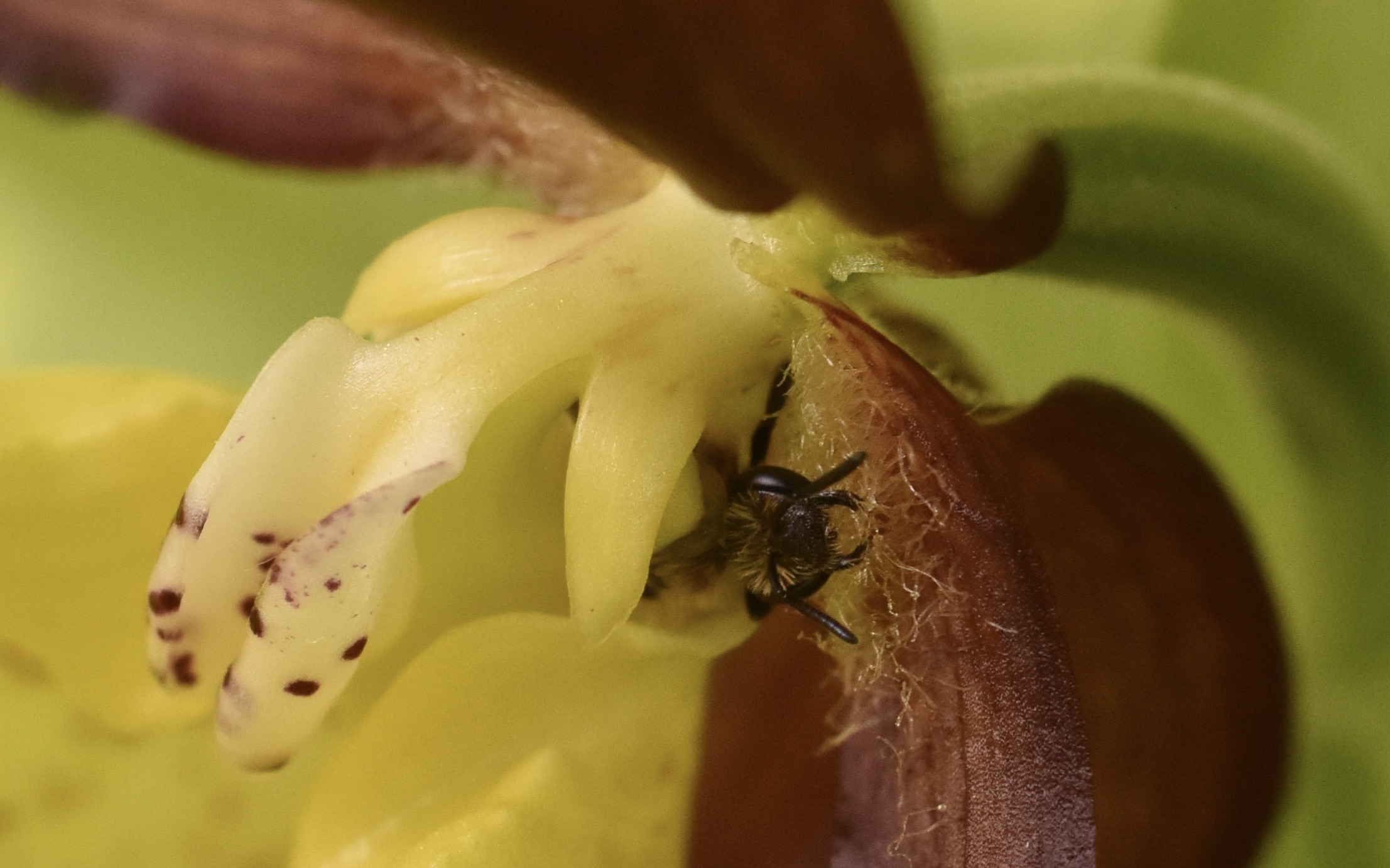 Das Bestäuberinsekt hat es nicht leicht, seinen Weg aus der Falle zu finden.