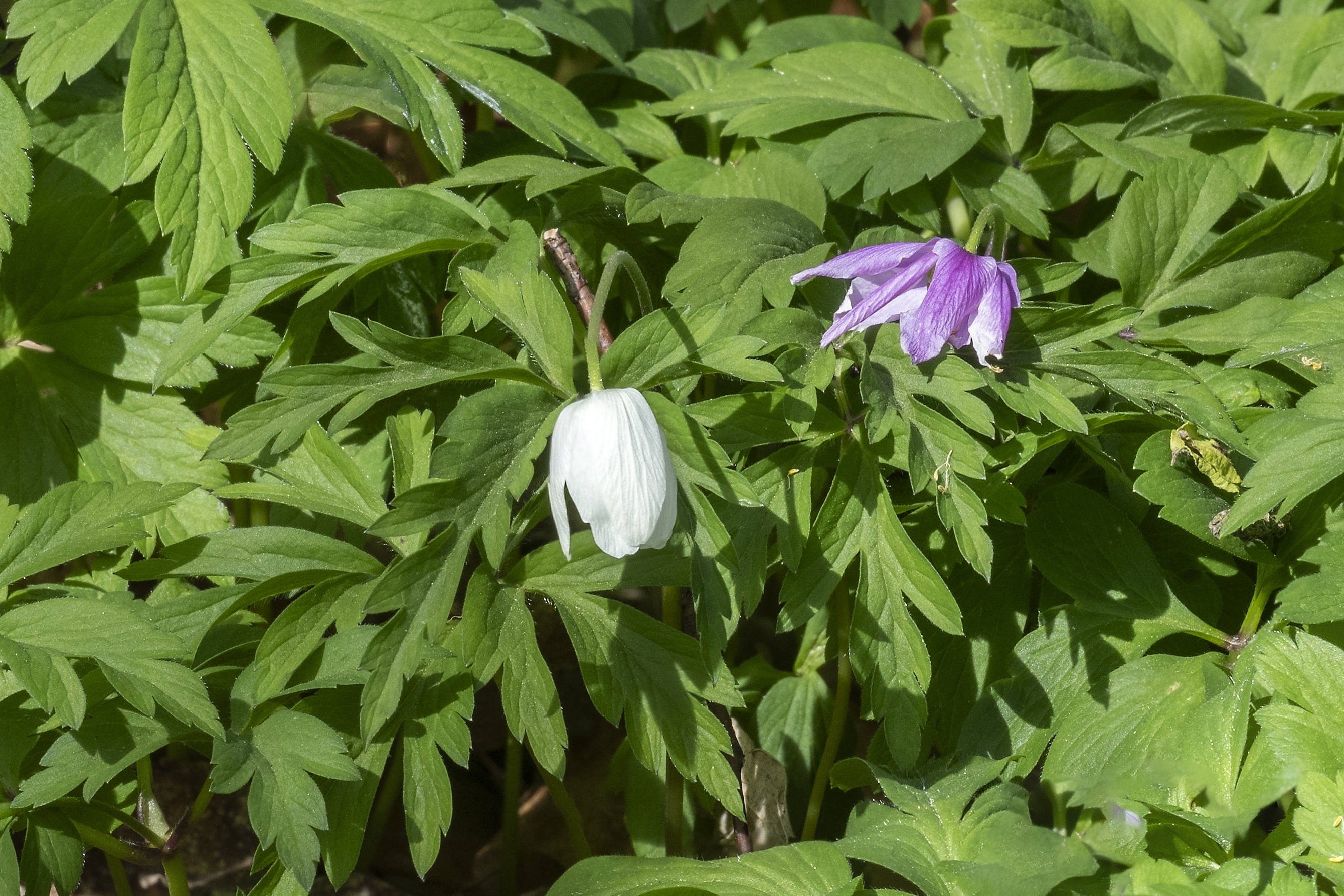 Kann mir jemand erklären wesshalb manche Busch-Windröschen violette Blätter machen, und 0.5m daneben alle grüne Blätter machen?