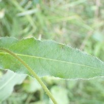 - Stängelblätter mit breitem Grund sitzend oder den Stängel etwas umfassend, ganzrandig bis buchtig gezähnt.
