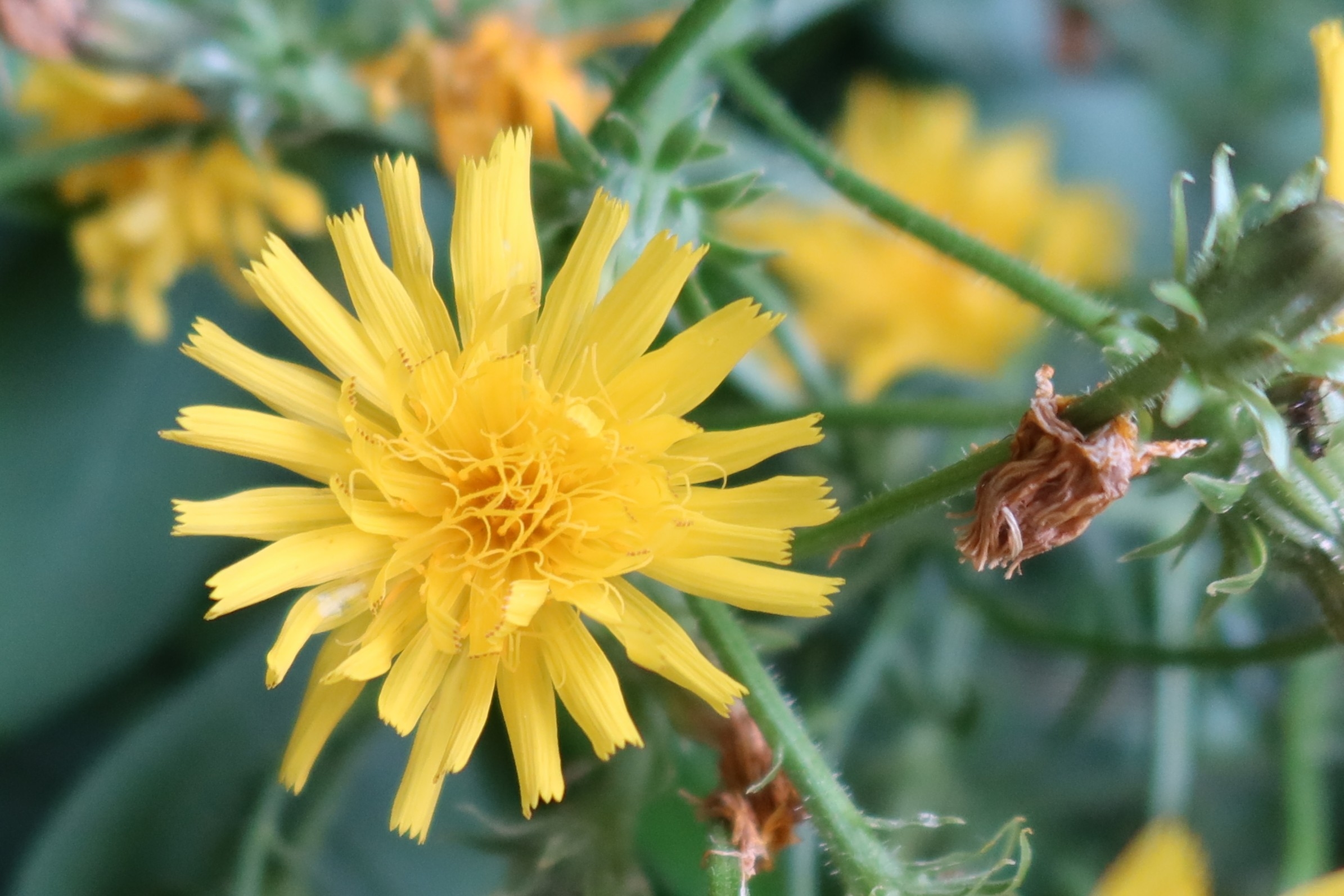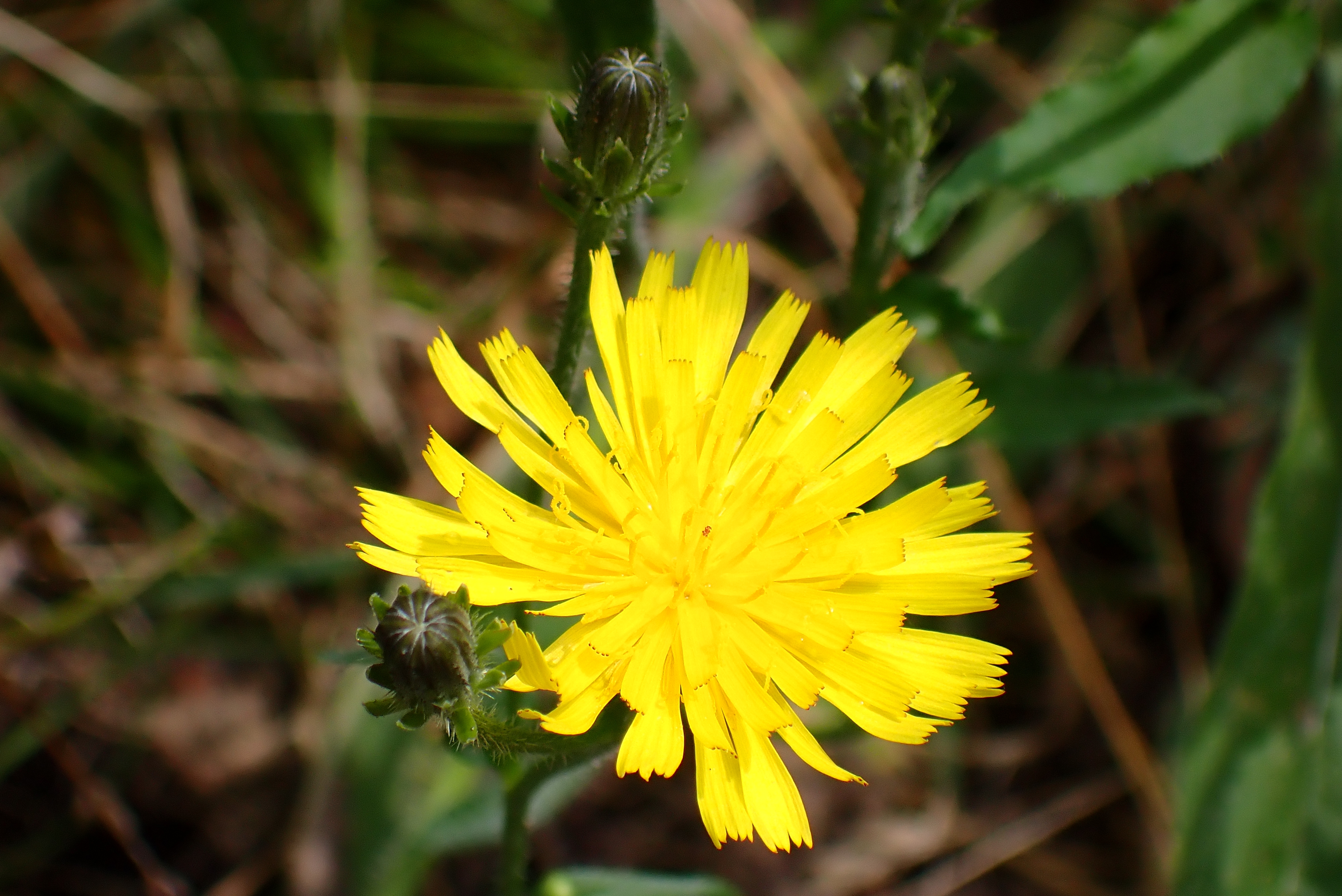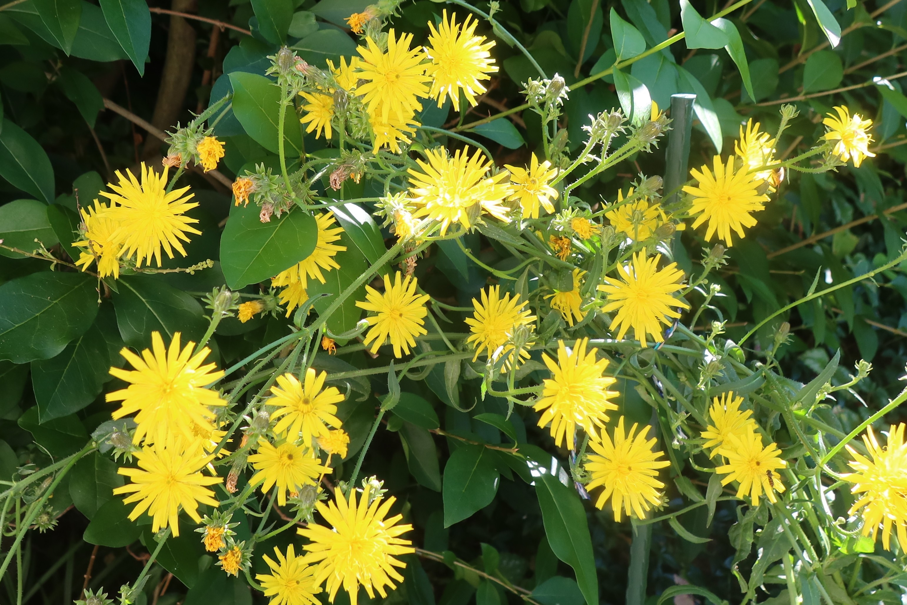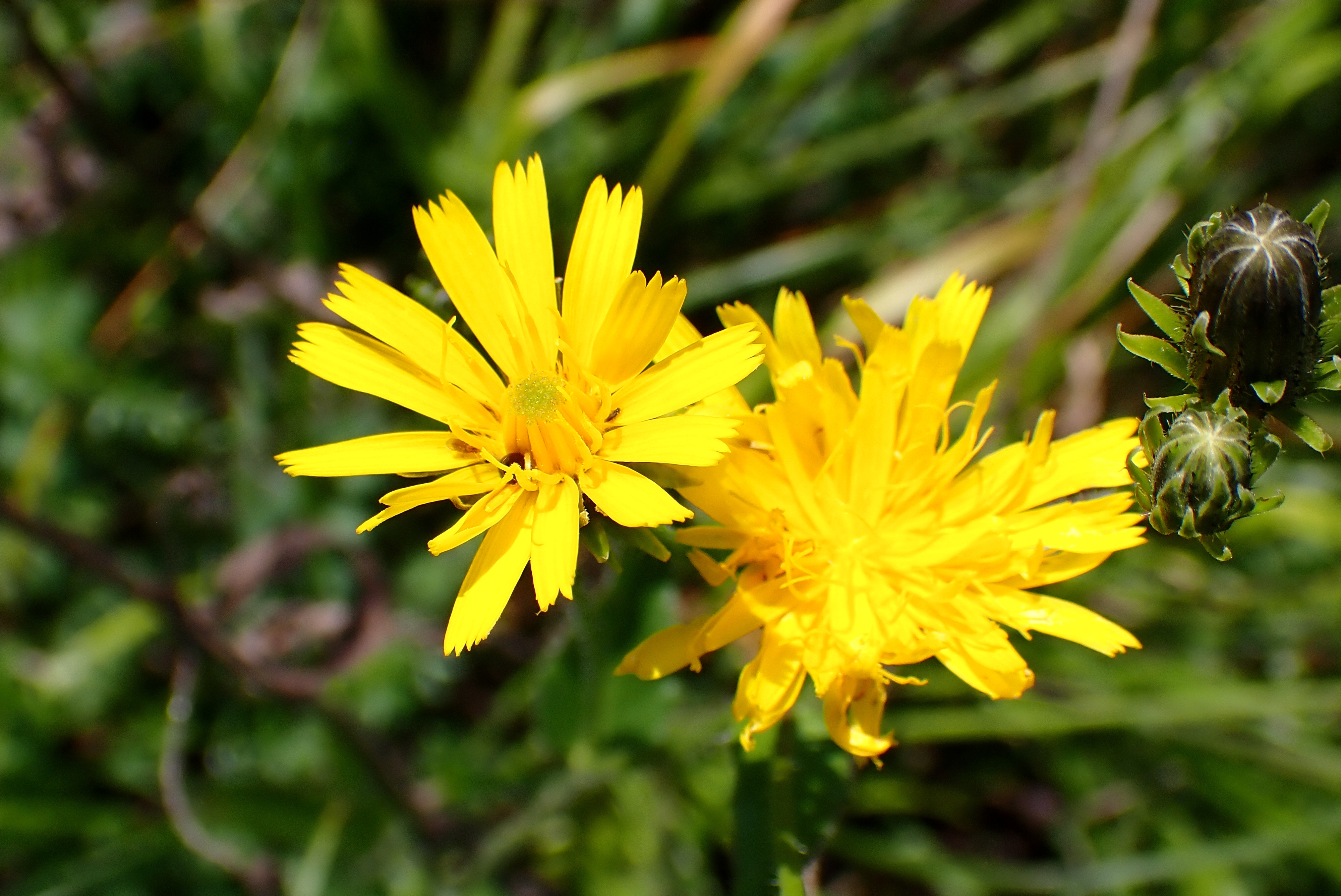 Hier wachsen 4 gelbe Korbblütler (Asteraceae) praktisch nebeneinander am Strassenrand.