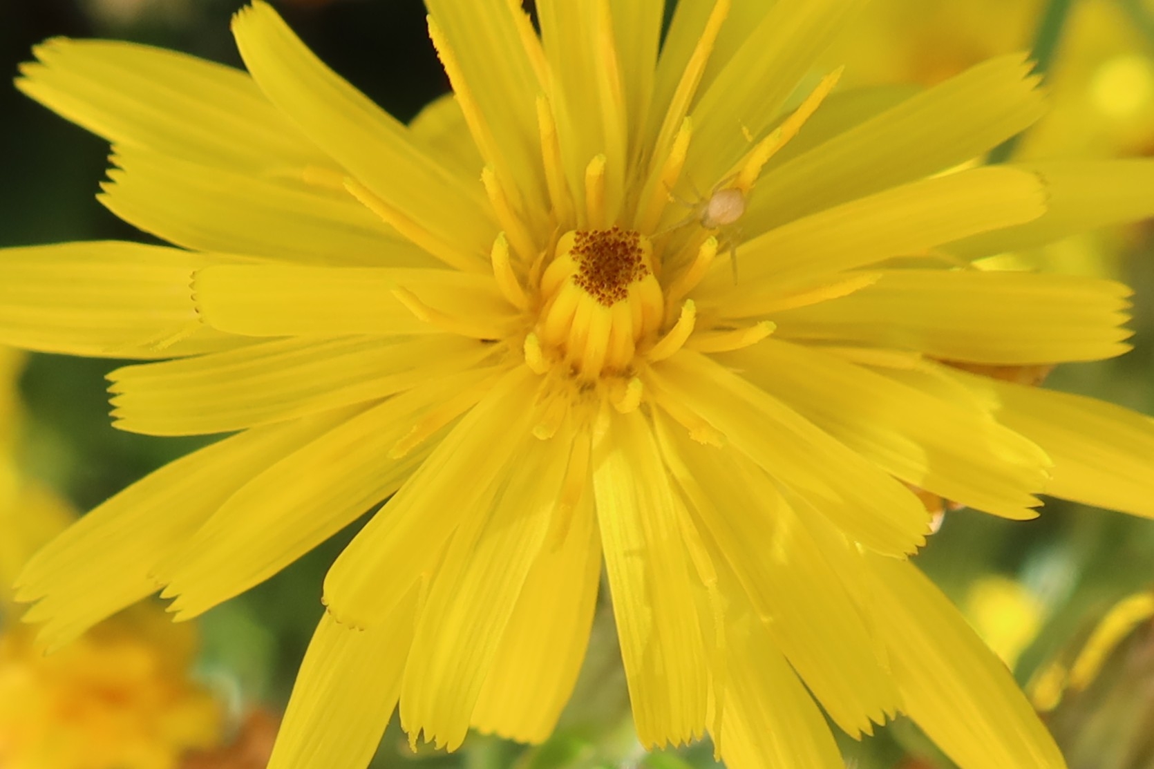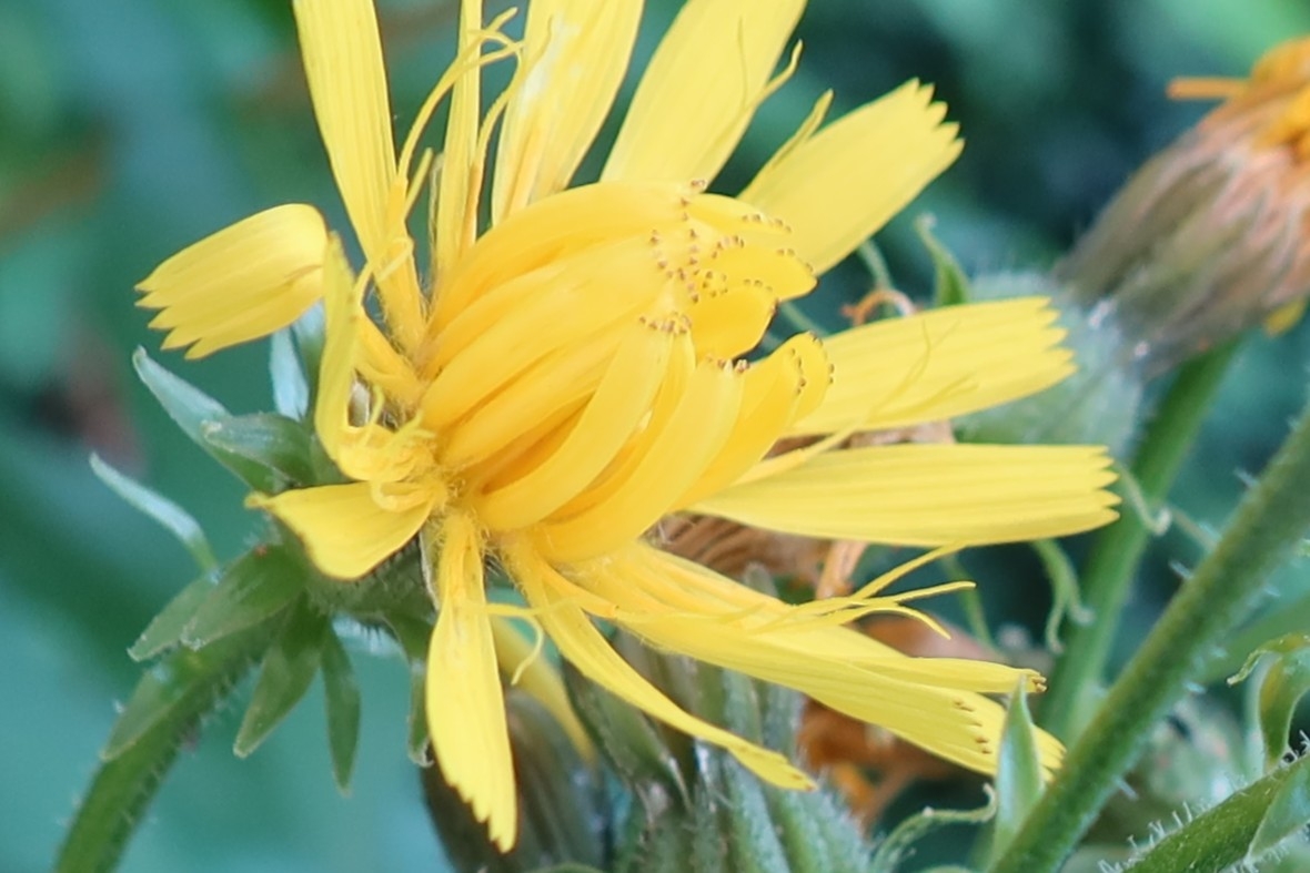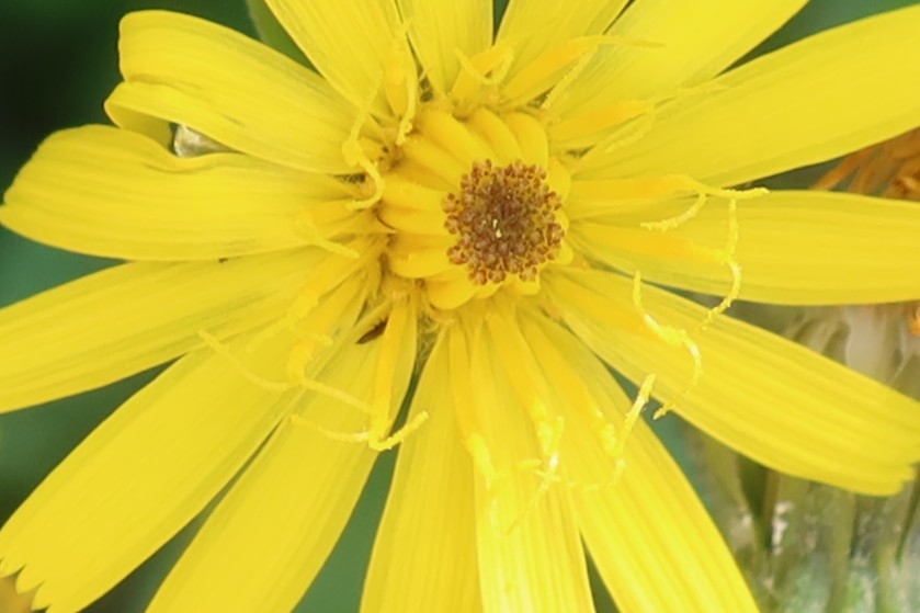Beim genauen (mit der Lupe) Betrachten von Picris hieracioides-Blüten ist mir aufgefallen, dass die Zungenblüten auf der Unterseite am Rande kleine braune Flecken aufweisen. Sind das bloss Farbflecken, oder sind es Drüsen, haben sie eine Funktion? Ich habe keine Ahnung und bin dankbar für botanischen Nachhilfeunterricht.
