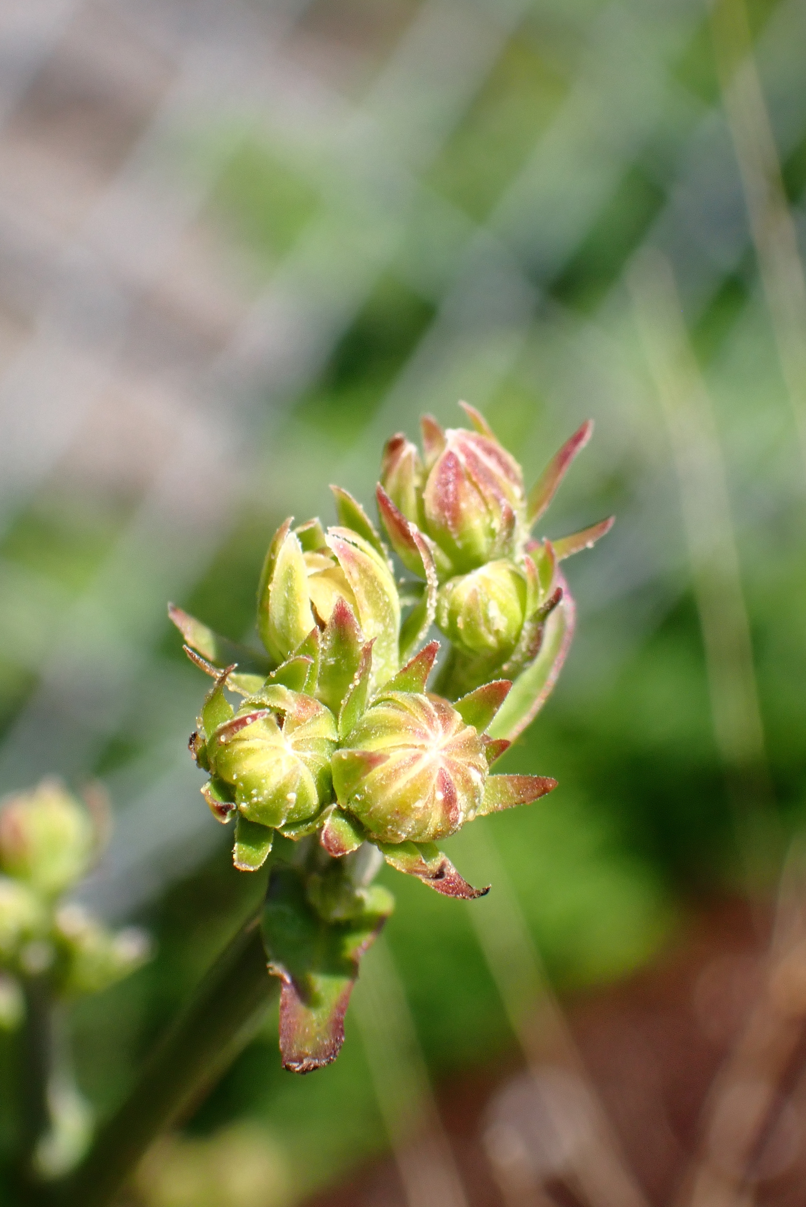 - Blütenknospen vor dem Aufblühen an der Spitze rötlichbraun, seltener grünlich.