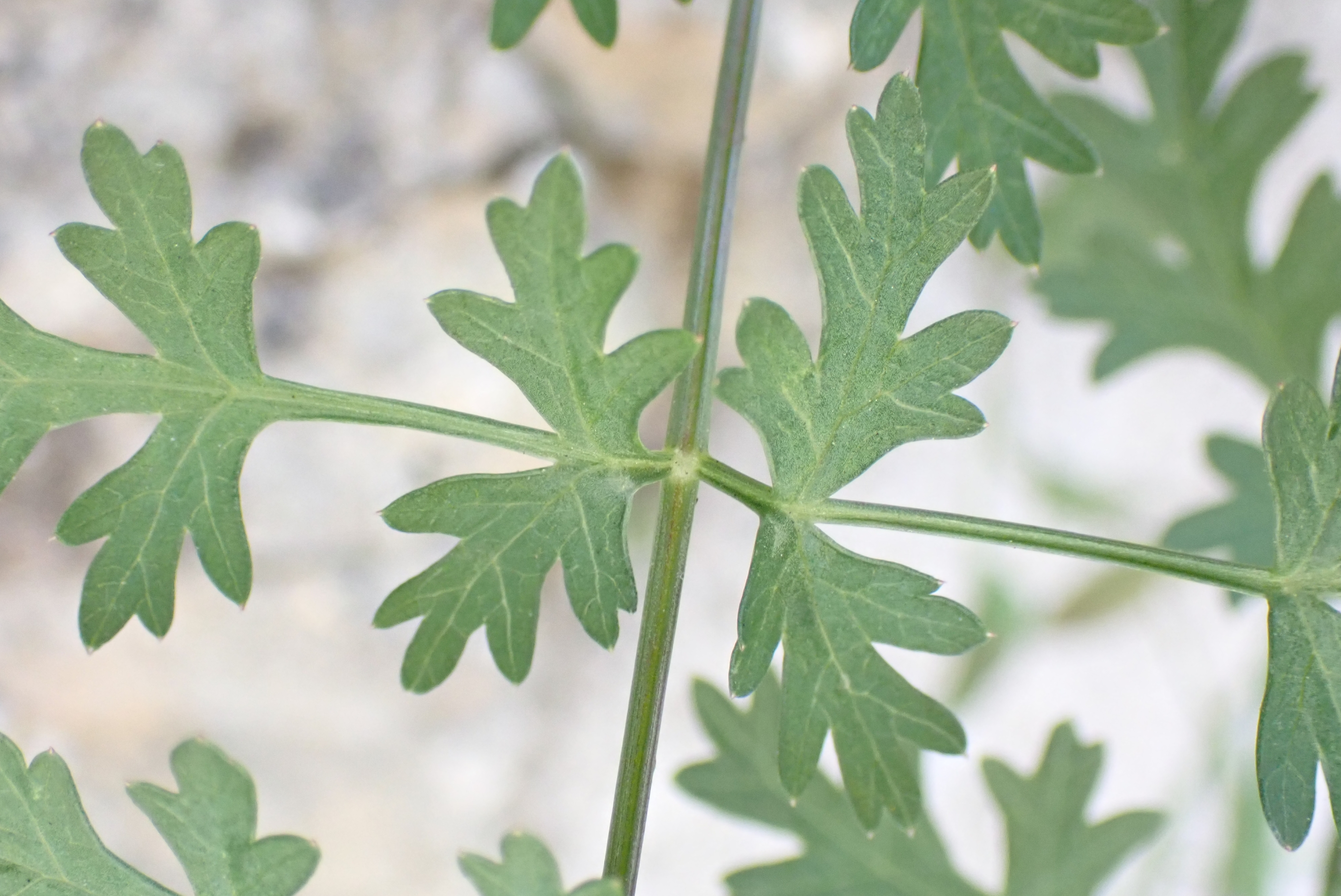 - Fiedern 1. Ordnung sitzend oder nur sehr kurz gestielt → die innersten Fiederchen (Fiedern 2. Ordnung) bilden deshalb an der Blattspindel ein «Kreuz».