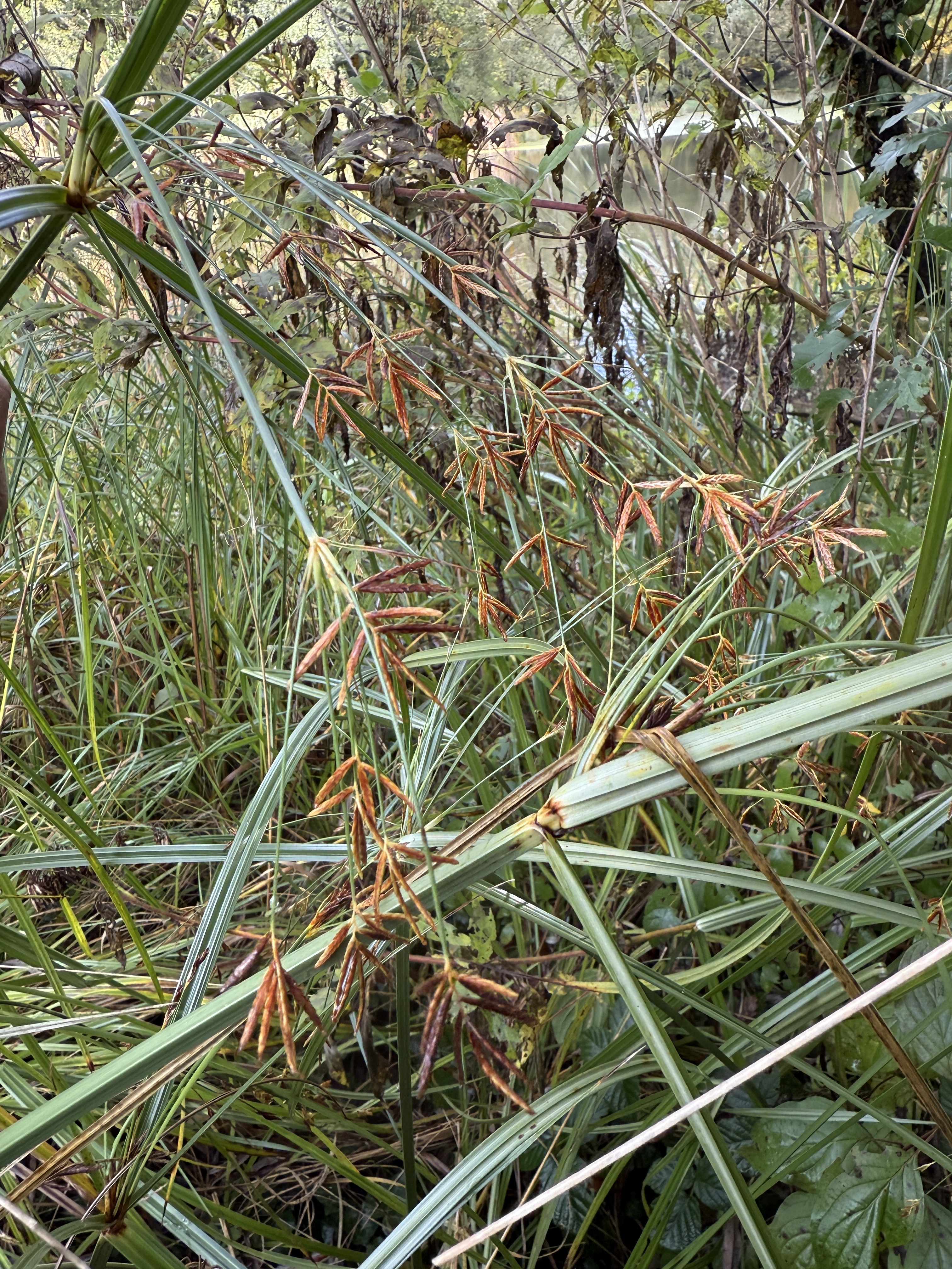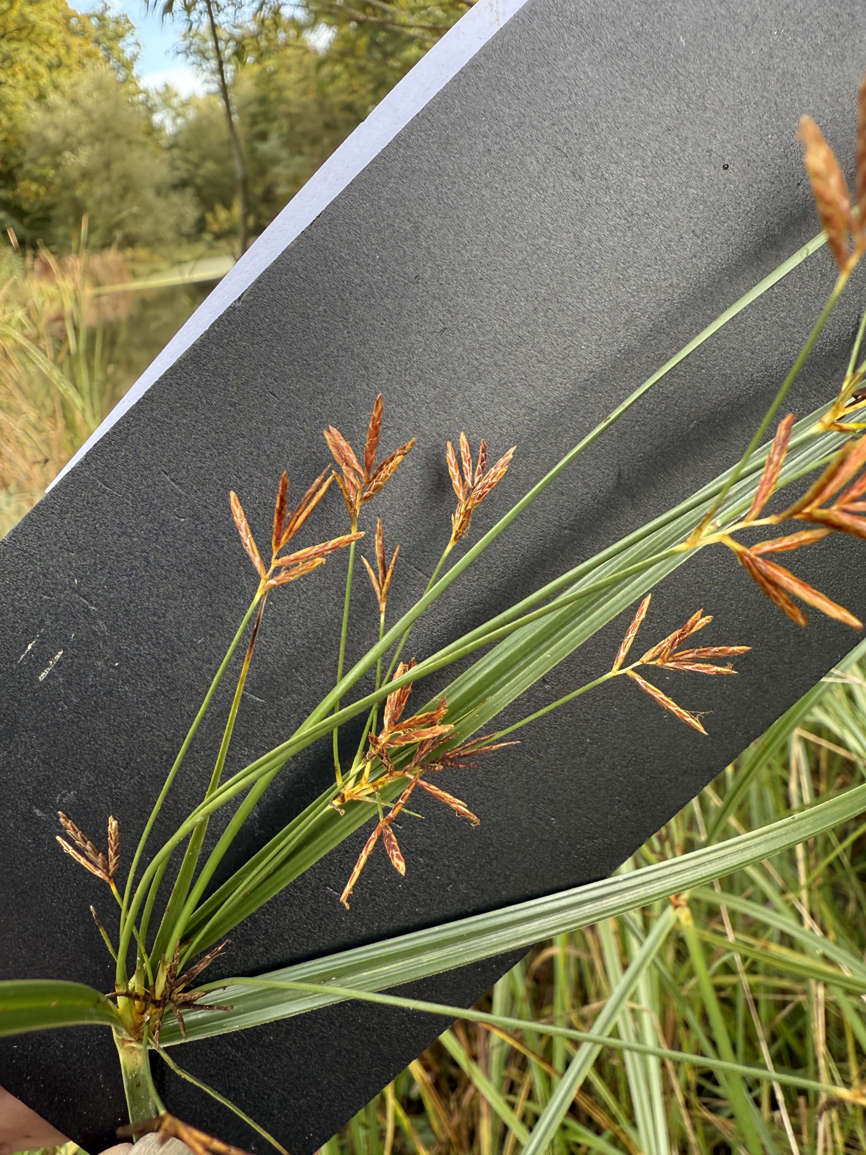 - Beim Essbaren Cypergras (Cyperus esculentus) ist alles etwas kleiner. Insbesondere sind die Spirrenäste nicht über 10 cm lang. Die Ährchen sind bräunlich oder gelblich und es hat Knollen.