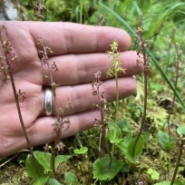 Fruchtstände des Kleinen Zweiblattes (Listera cordata) findet man im Herbst kaum, da diese wie beim Grossen Zweiblatt (Listera ovata) rasch zerfallen. Trotzdem lassen sich Vorkommen entdecken, weil sich die herbstlich gelb gefärbten Blättchen deutlich vom grünen Moos oder vom braunen Waldboden abheben.