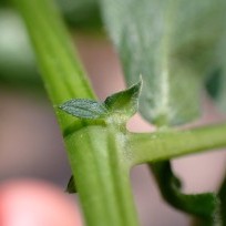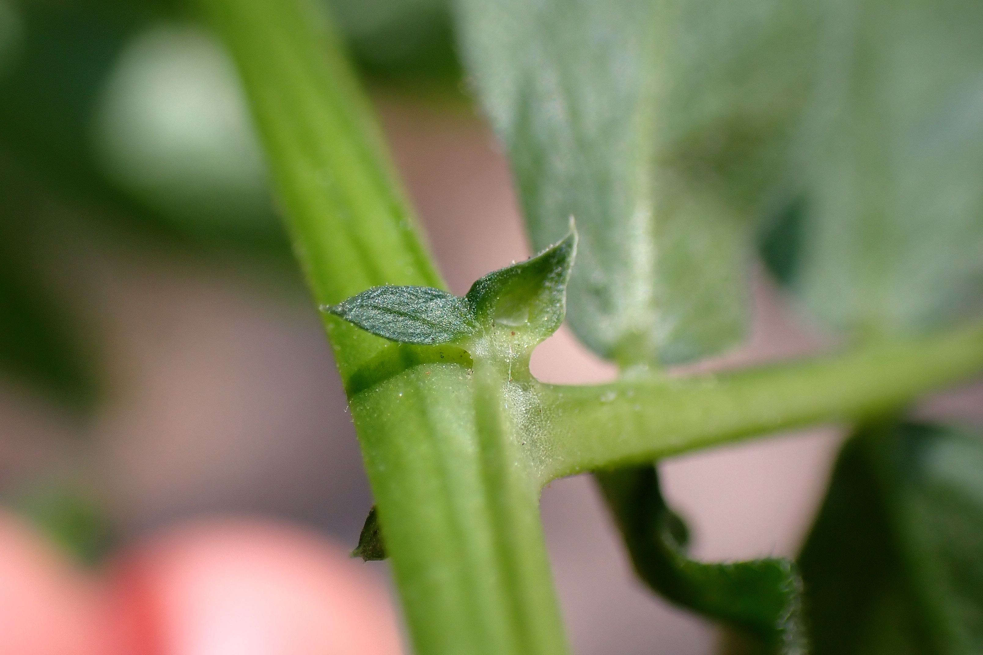 • Nebenblätter auf der Unterseite mit dunklen extrafloralen Nektarien.