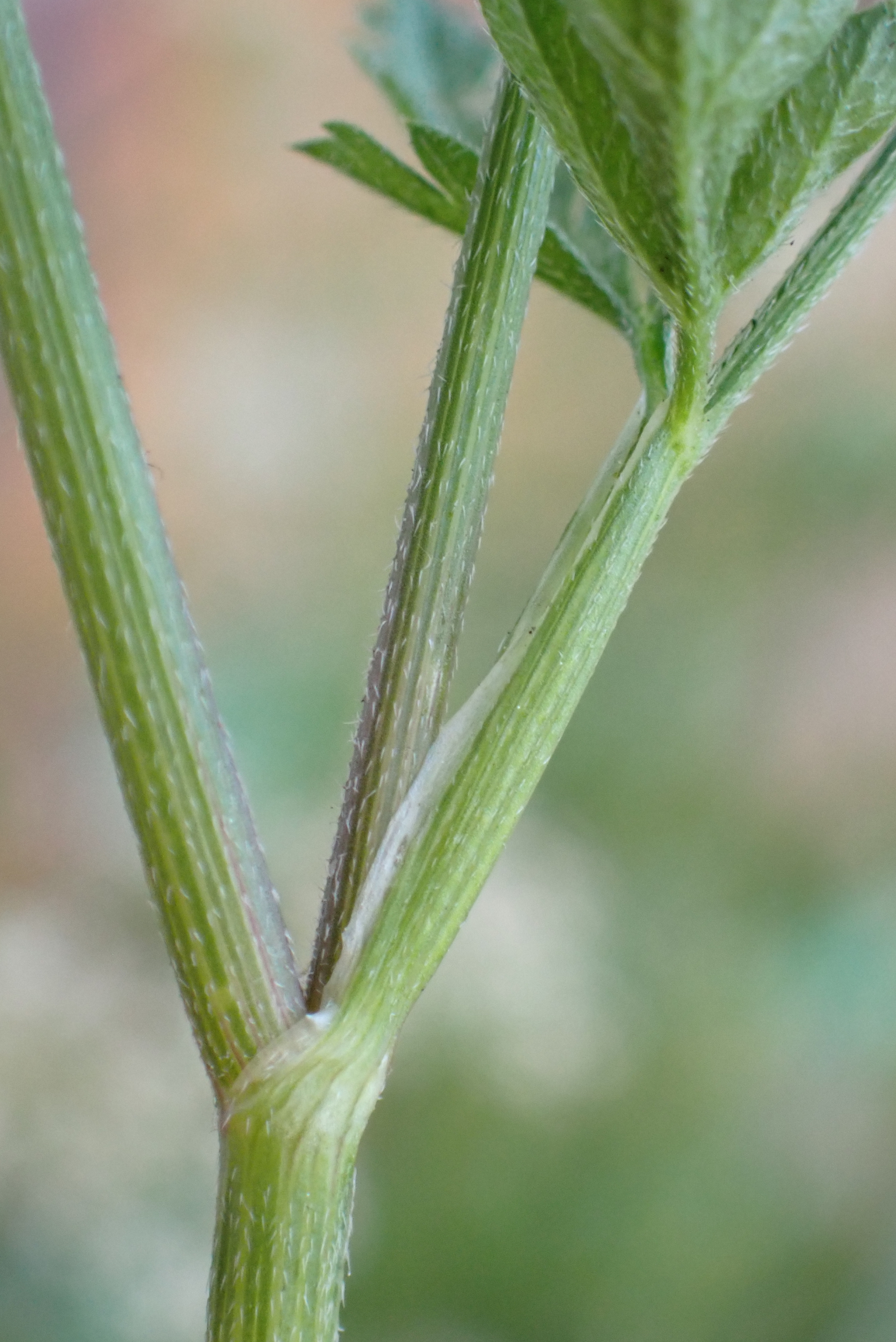 - Stängel aufrecht, gerillt; anliegend behaart, Haare abwärts gerichtet.