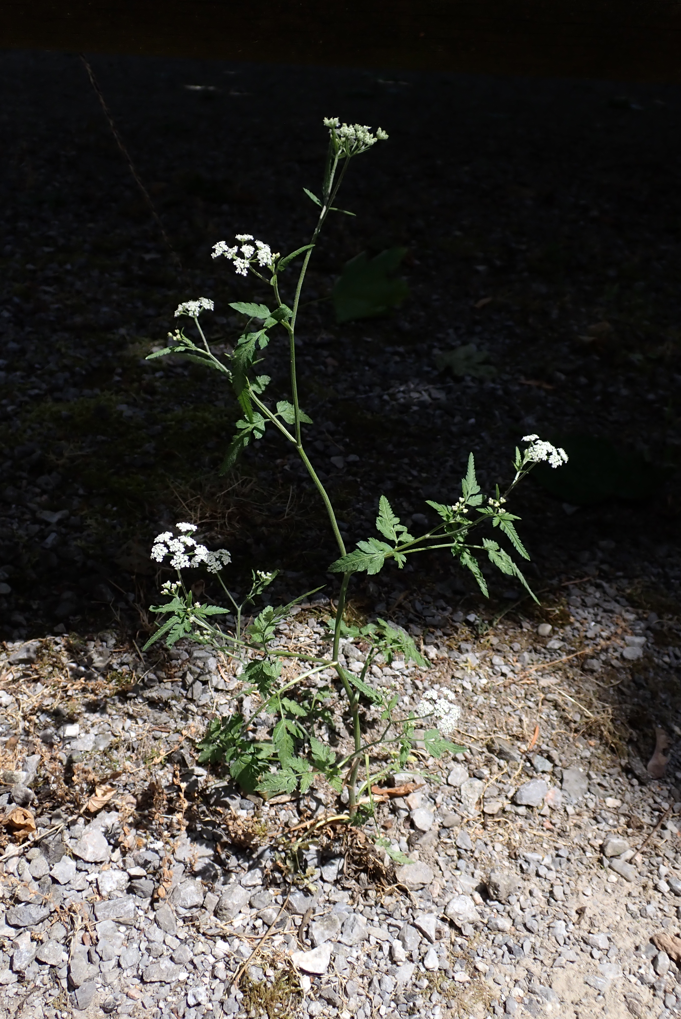 Diese Igeli-Samen gefallen mir noch besser als die von Daucus carota. Die gesuchte Pflanze ist nicht ganz so häufig wie Daucus carota, aber auch nicht selten. Es handelt sich um eine Wald-Pflanze, was im einen der zwei deutschen Namen erwähnt wird. Der lateinische Name hingegen weist auf ein weit entferntes Land hin, obwohl die Art bei infoflora als indigen eingestuft wird. Welche Pflanze ist es? Und gibt es eine Erklärung für den lateinischen Namen?