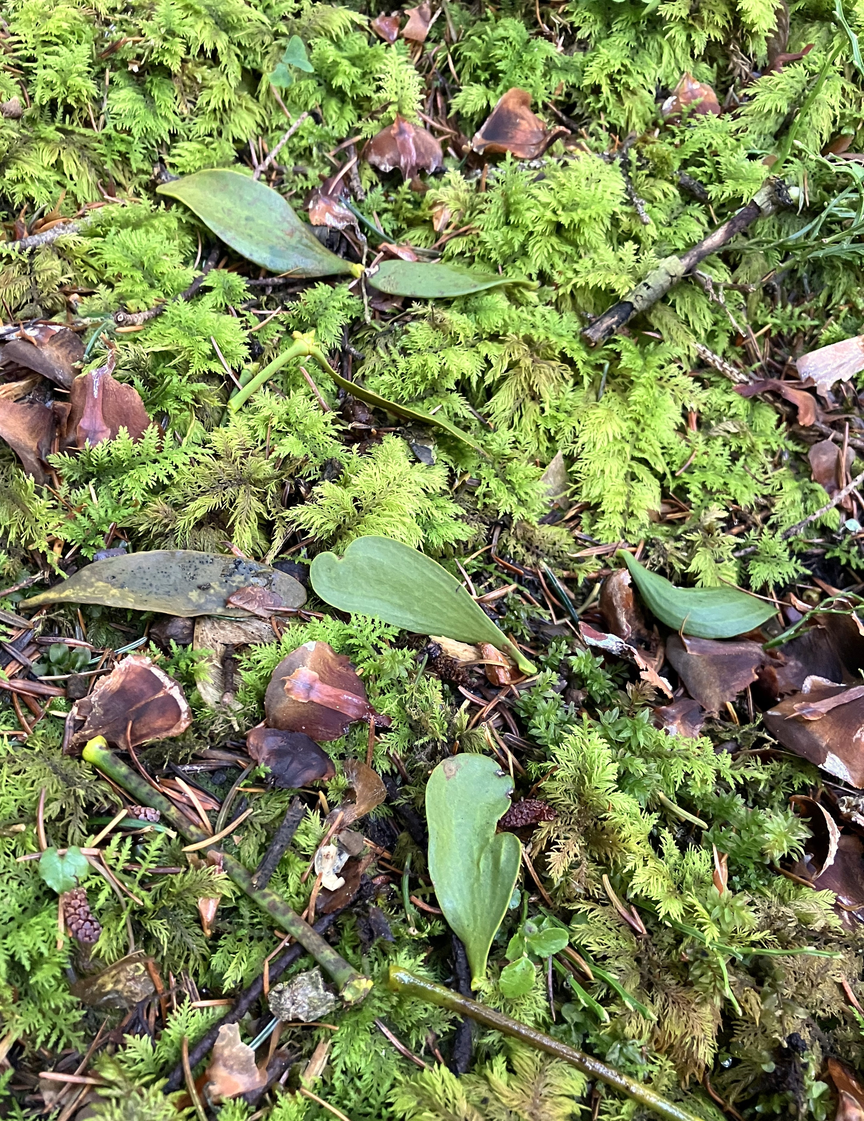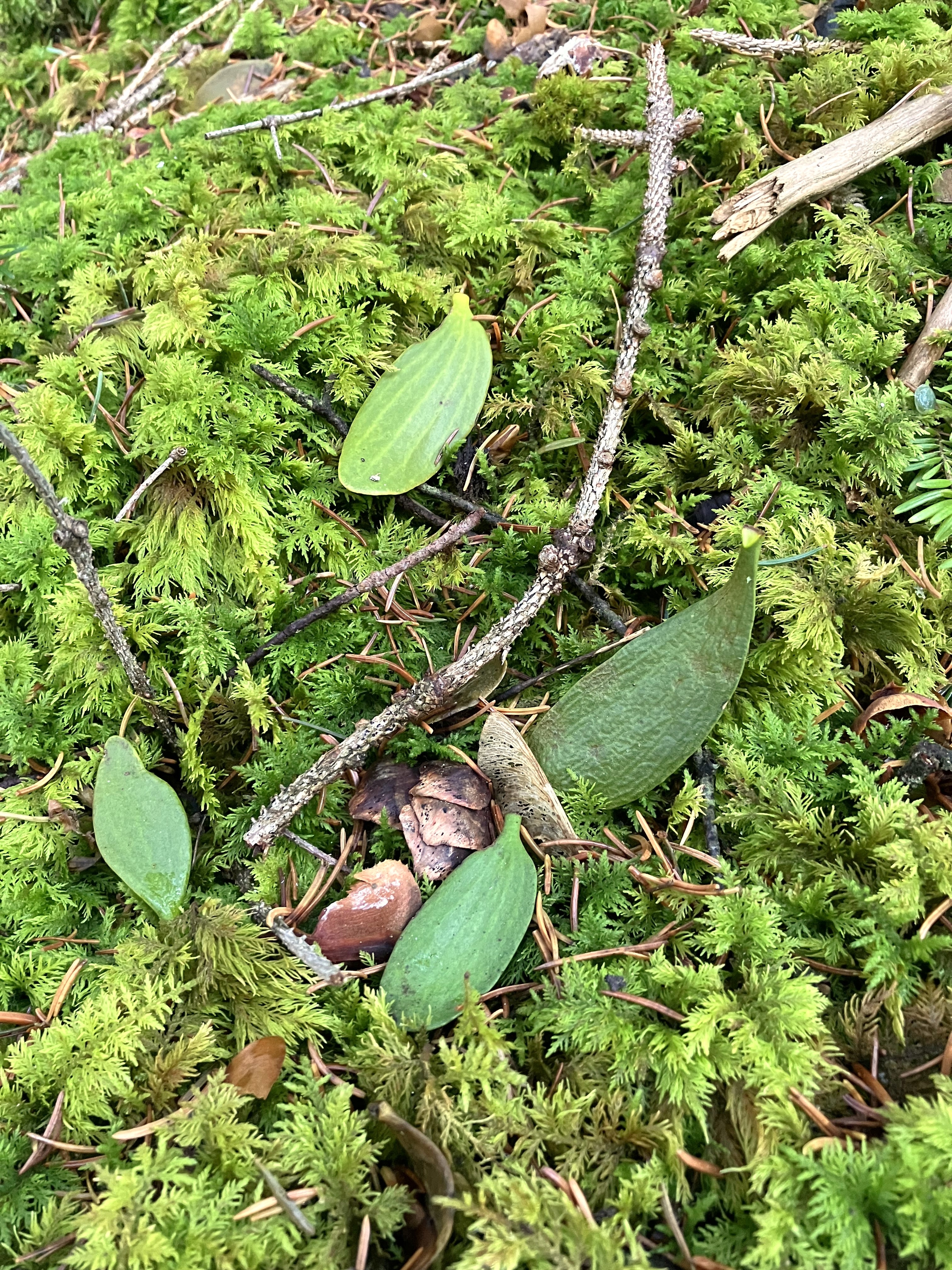 Am Boden im Moos neben einer Weisstanne liegende Blätter. Buchholterberg (BE), 9.12.2025 (Blumenwanderer)