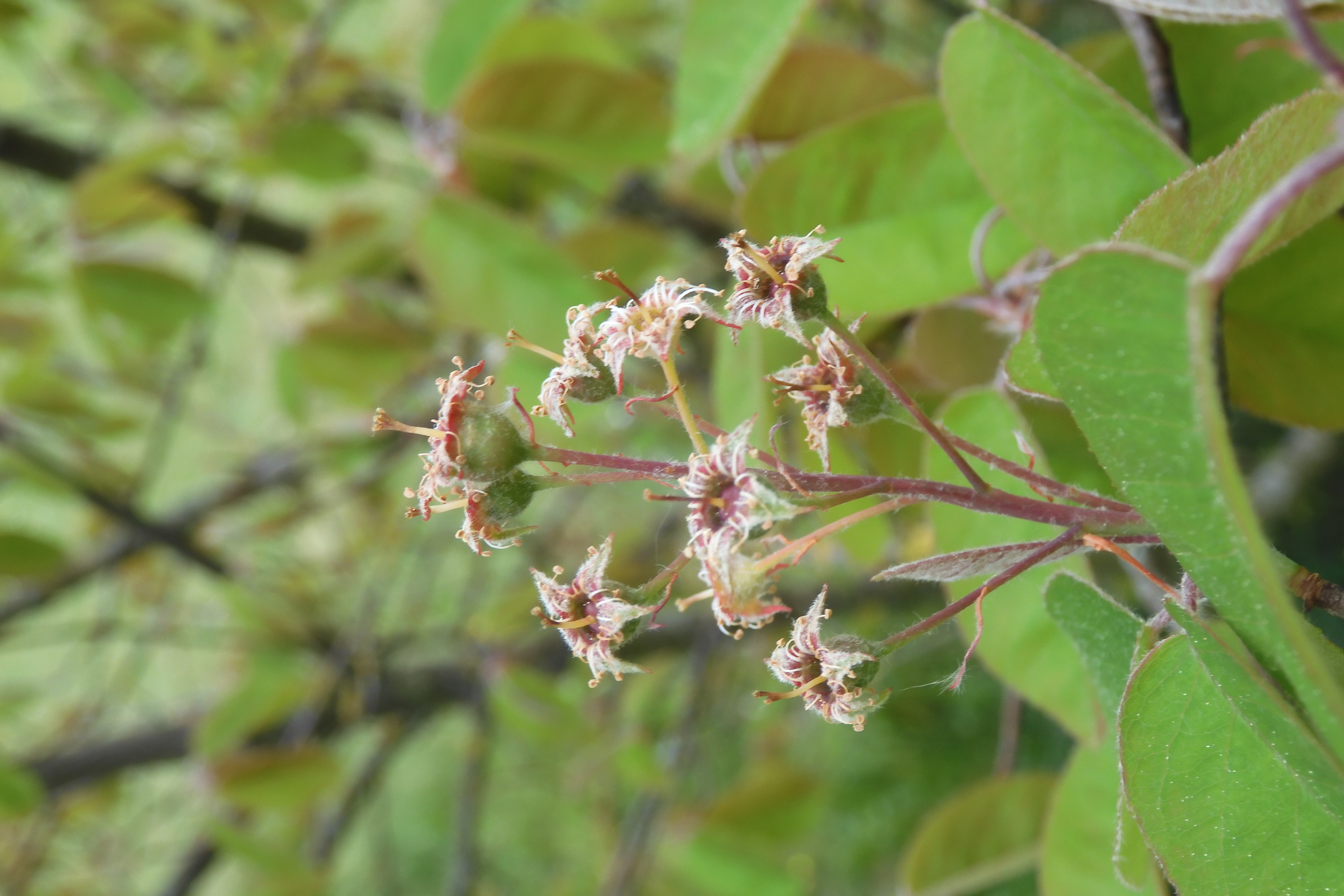 Nachtrag: Also natürlich meinte ich, dass bei A. ovalis die Griffel unverwachsen sind. Im Gegensatz zu allen anderen häufig in Kultur befindlichen Amelanchier-Arten! Und Achtung: es gibt noch A. spicata (ca. ebenso häufig im Kultur wie A. lamarckii), der ebenfalls spitze Blätter und lange Griffel hat.