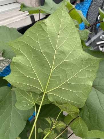 4 Blätter unterseits flaumig behaart Catalpa speciosa