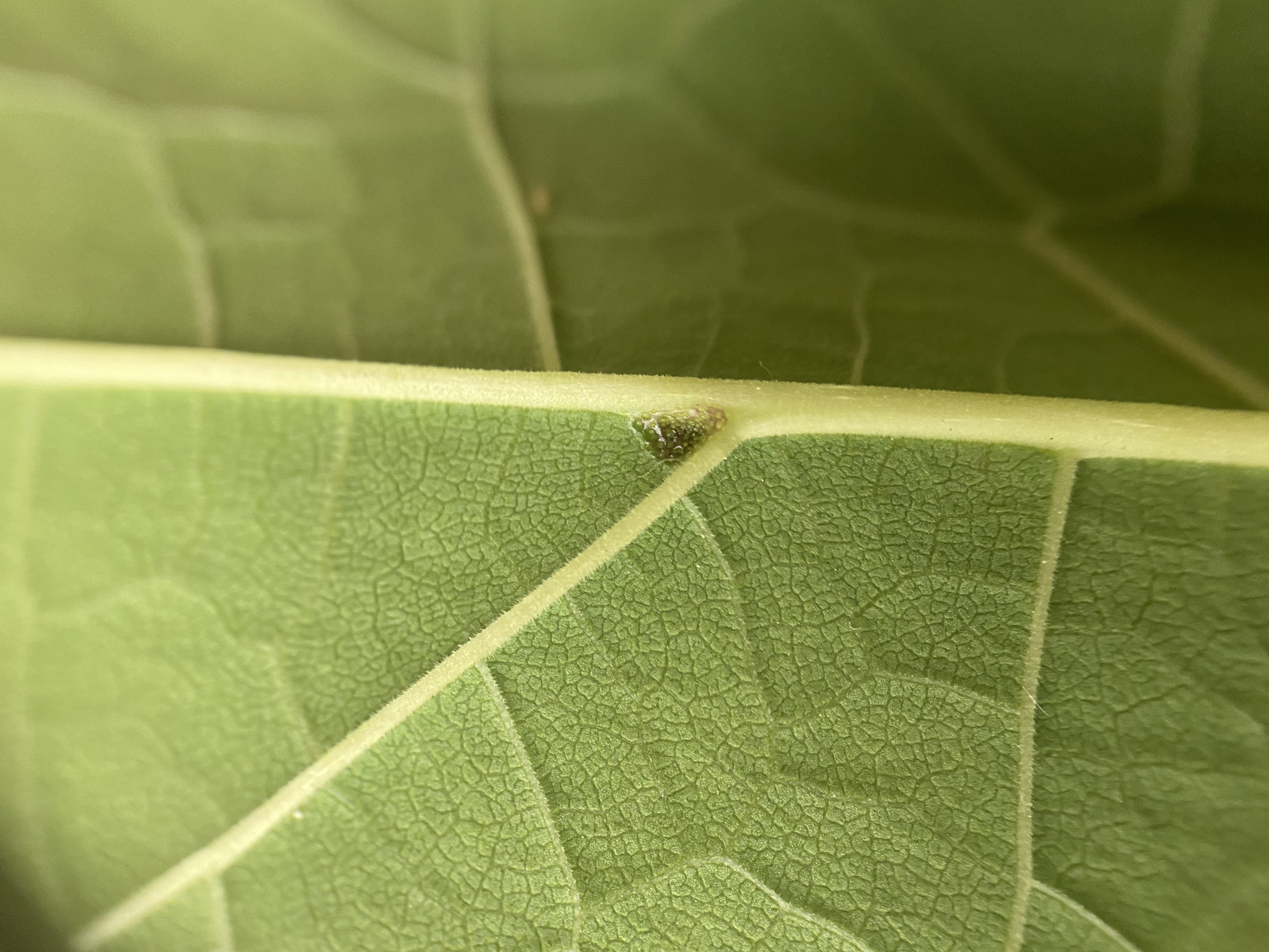 2 Blätter nach toten Affen riechend, Blatt am Grund mit 3 kräftigen Nerven,