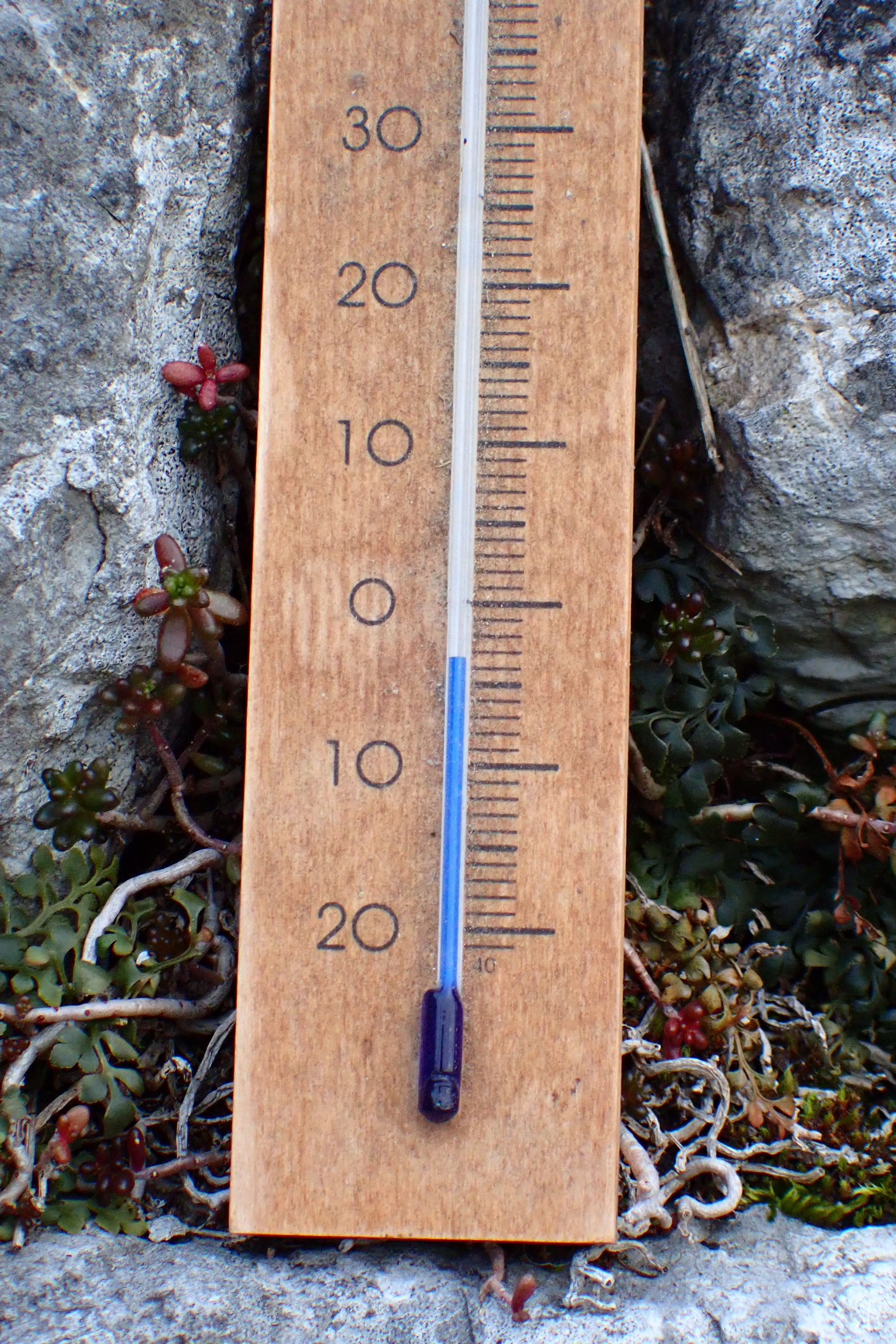 Der Postautofahrer meinte -3 °C (mein klassisches Thermometer aus der Landi teilte seine Meinung, Foto unten).