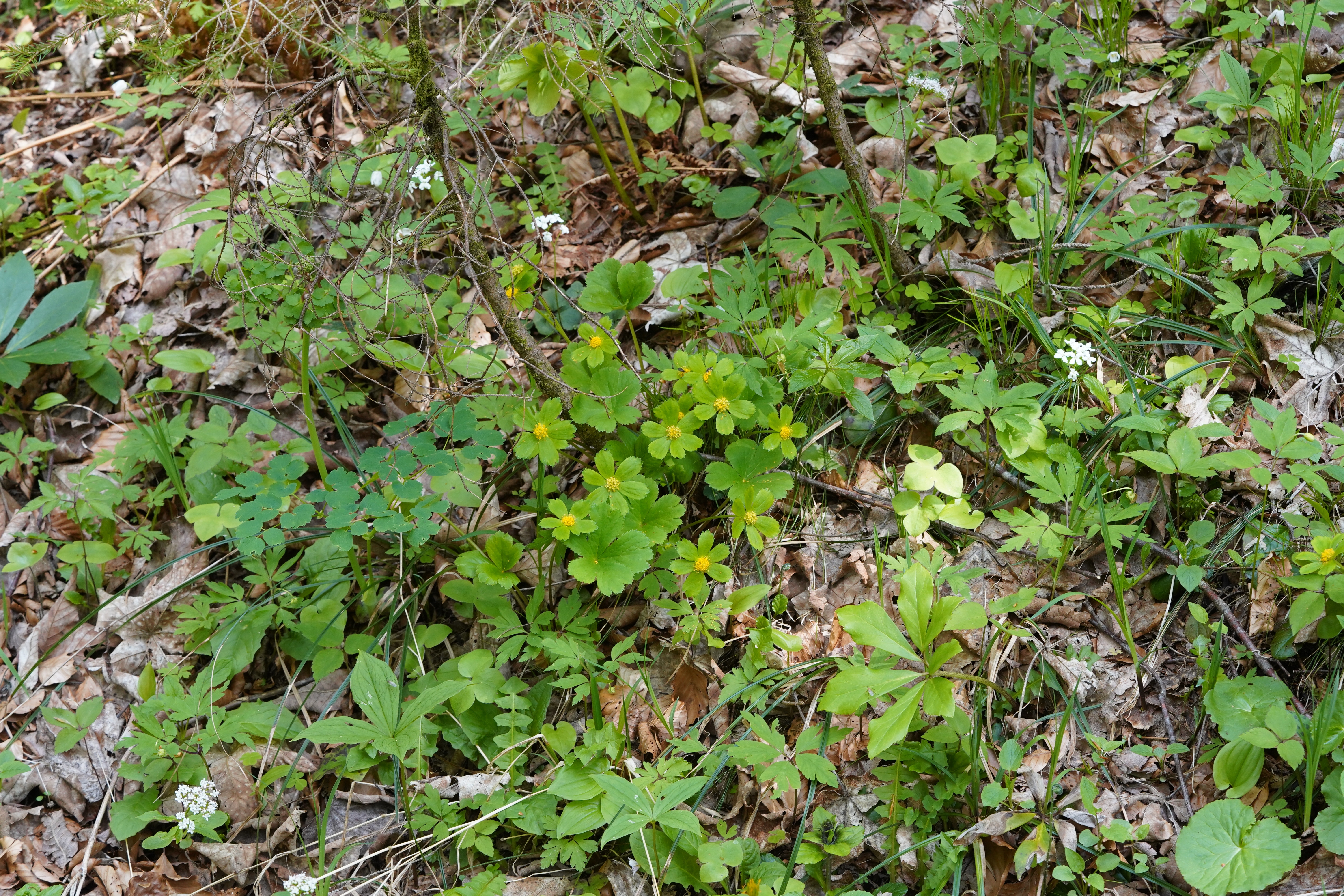 Hier ist die südostalpine Anemone trifolia viel häufiger als das gewöhnliche Bueschwindröschen.