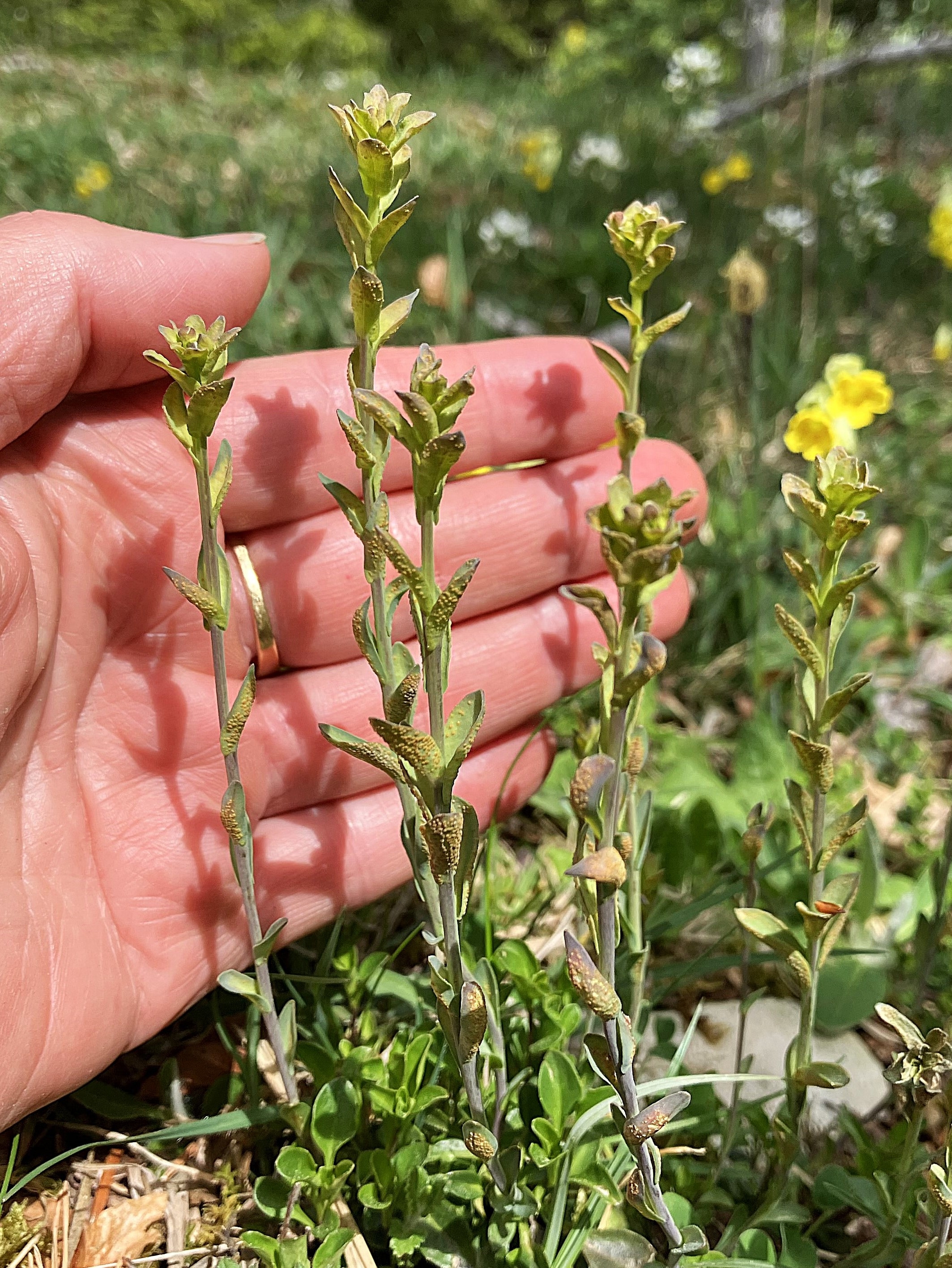Für mich erstaunlich auch, wie sehr der Rostpilz die Thlaspi montanum äusserlich verändert: aus der Ferne dachte ich für einen kurzen Moment gar an Aethionema! Auch die Ausbildung von Pseudoblumen war zu beobachten.