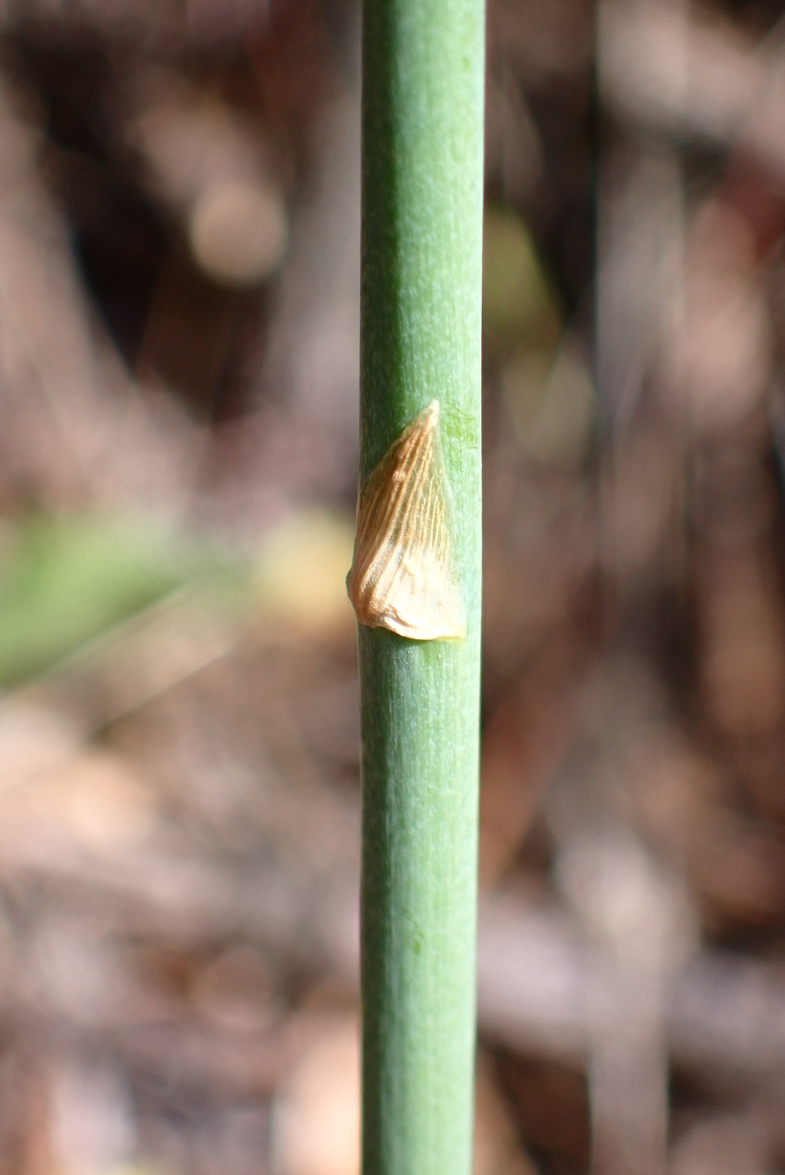 - Blattbüschel am Grund mit einem häutigen, hellbraunen Schuppenblättern.