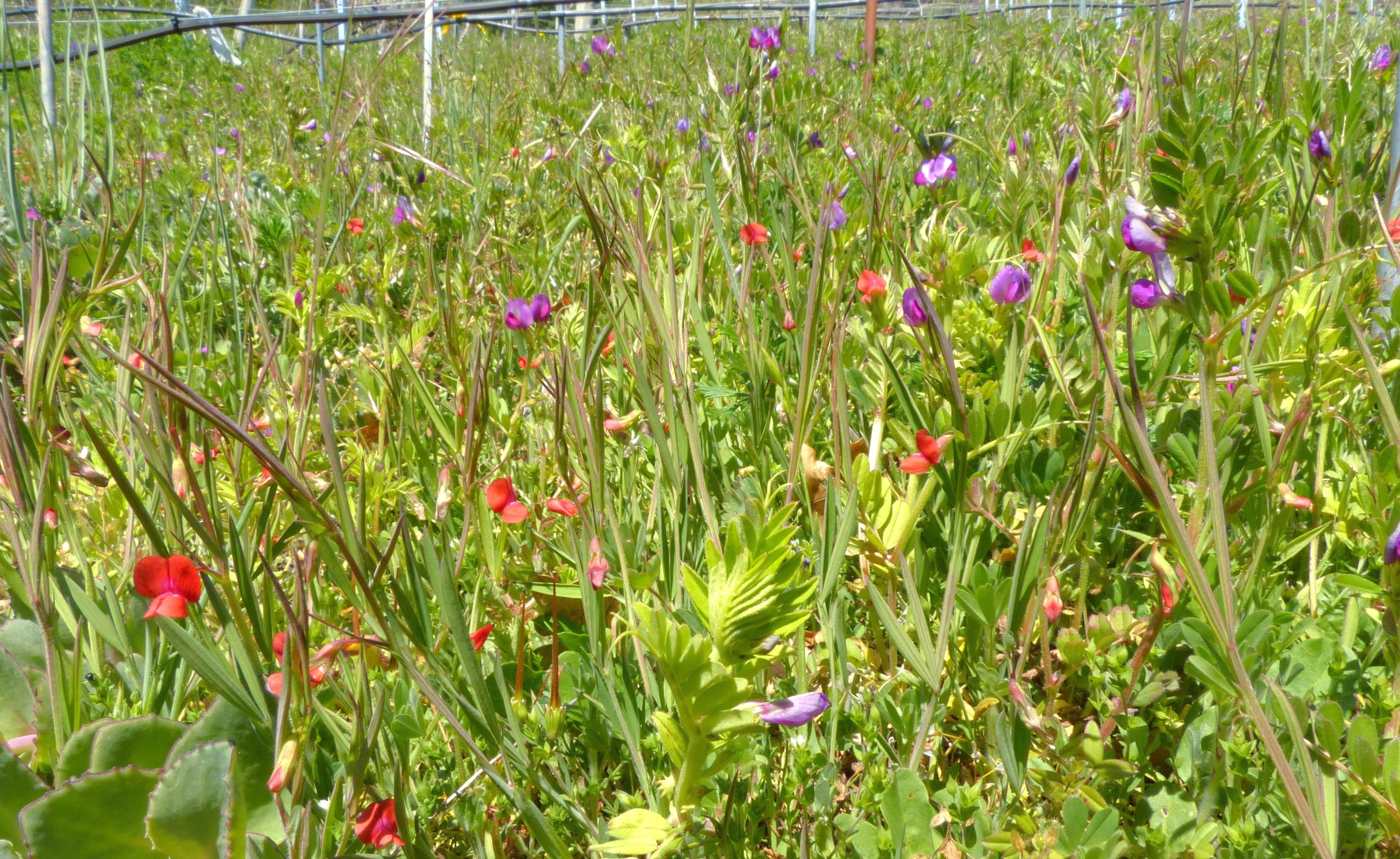 Mit Vicia sativa in einem Rebberg. Branson (VS), 15.4.2019 (Paul Hürlimann)