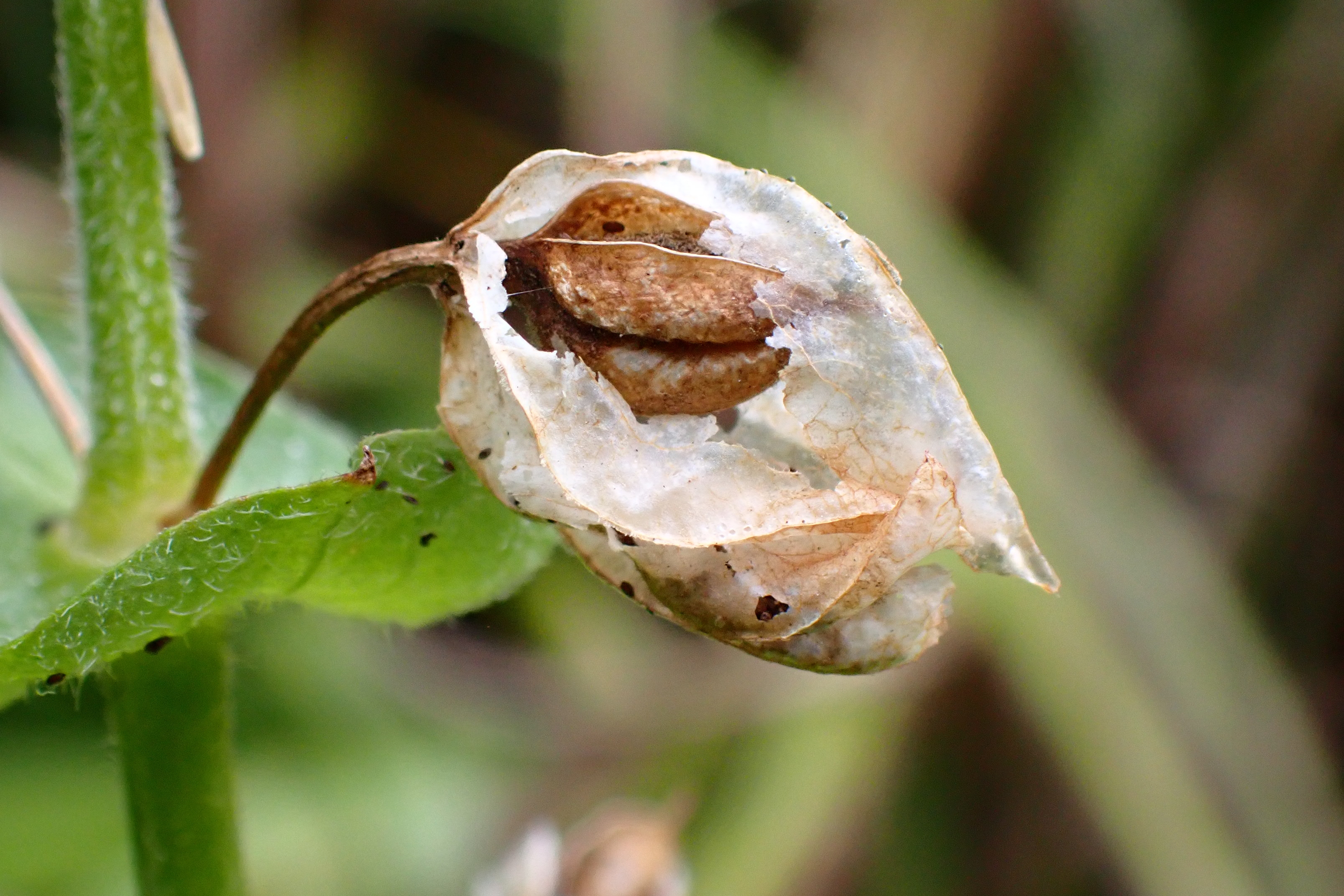 Reife, noch vom Kelch umhüllte Kapsel. Stadtbach Bümpliz (BE), 15.10.2025 (Muriel Bendel)