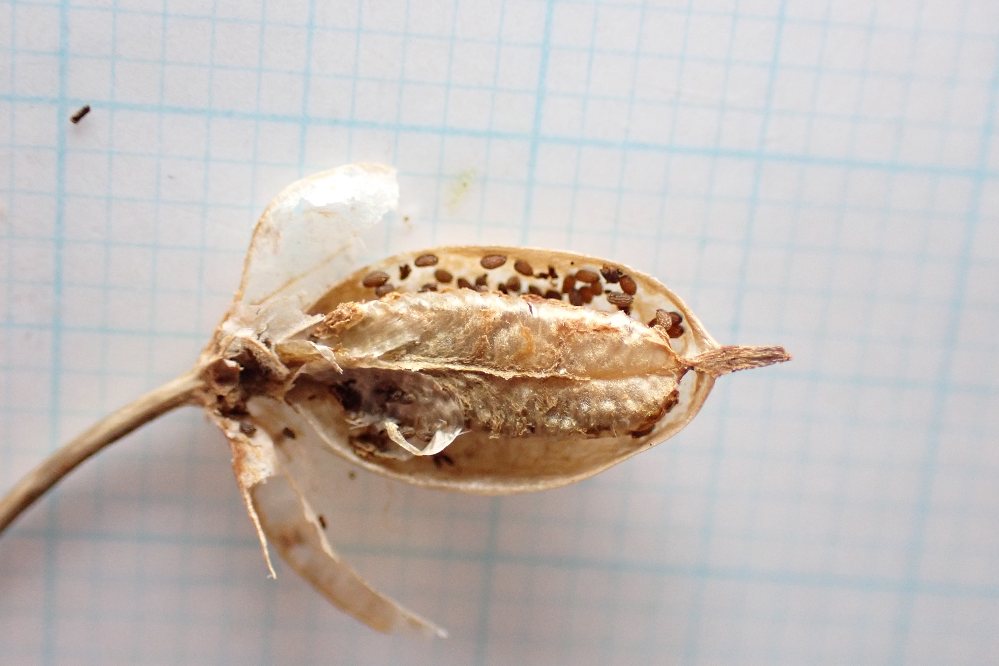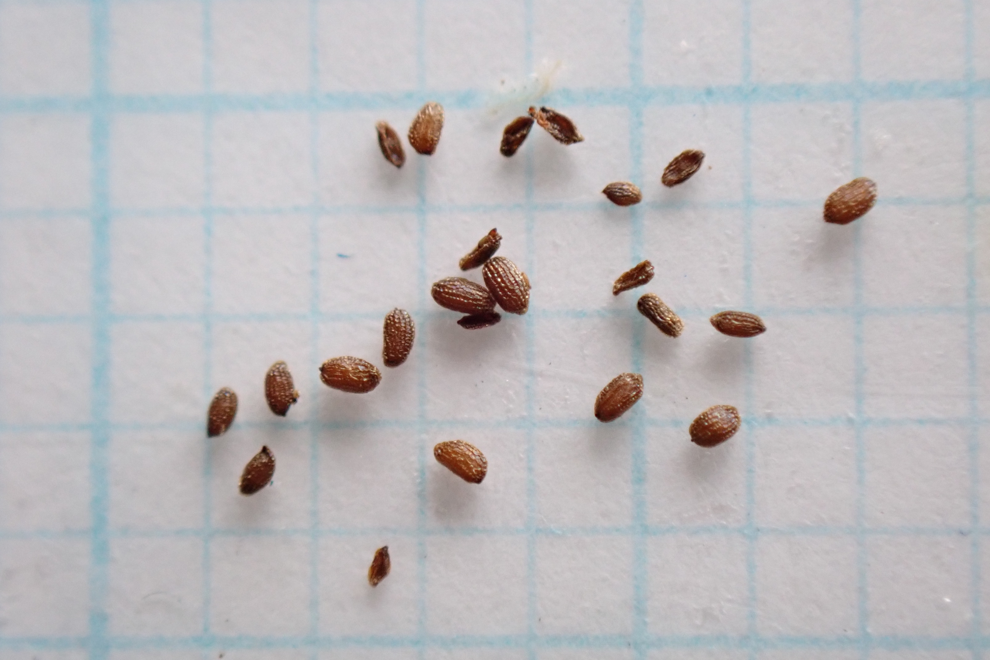 - Reife Samen braun, 0,5 mm lang, Oberfläche grubig.