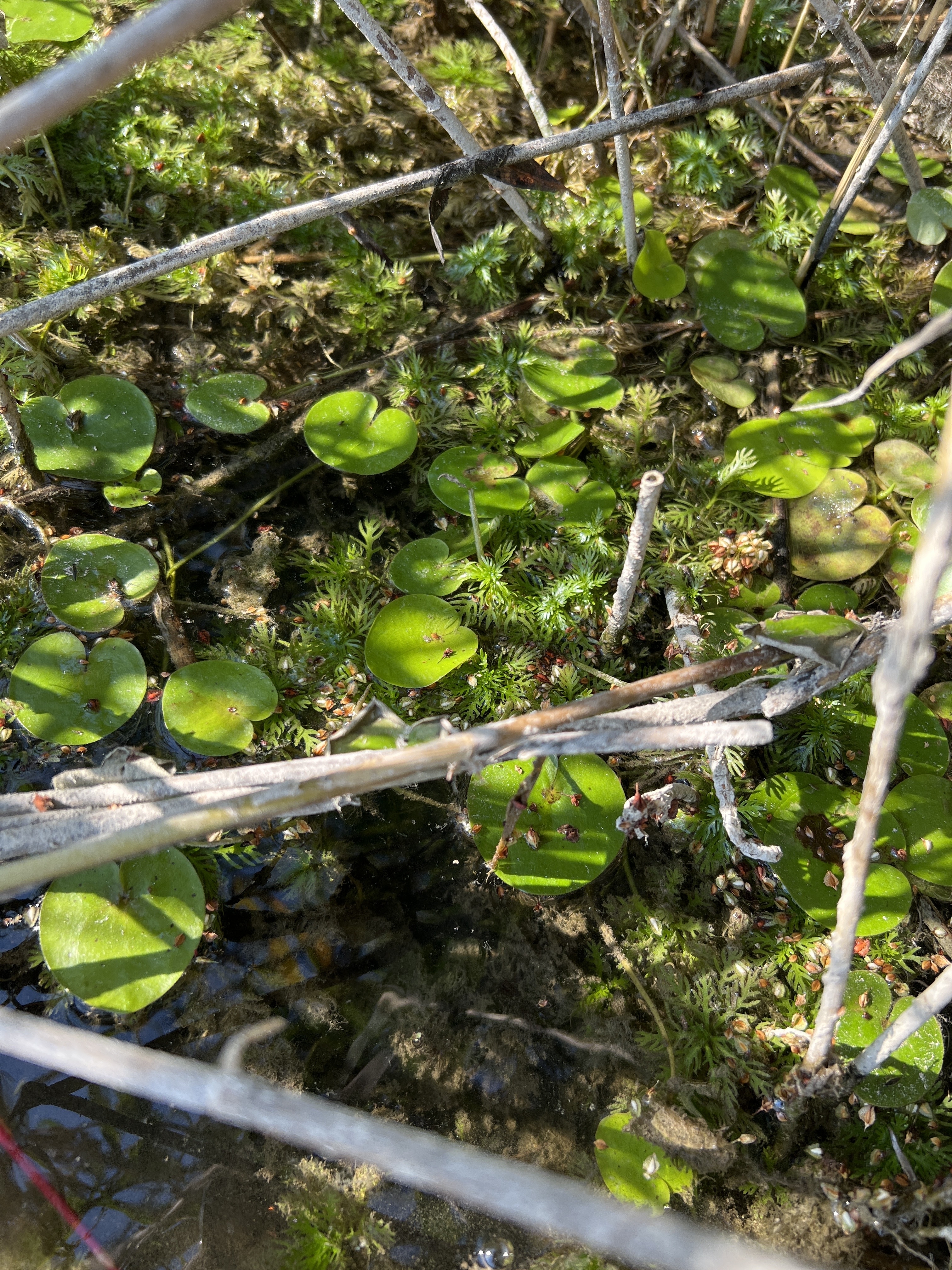 Für die Grössenordnung: Hydrocharis morsus-ranae zusammen mit Lemna minor. Lörmoos (BE), 1.6.2025 (Muriel Bendel)
