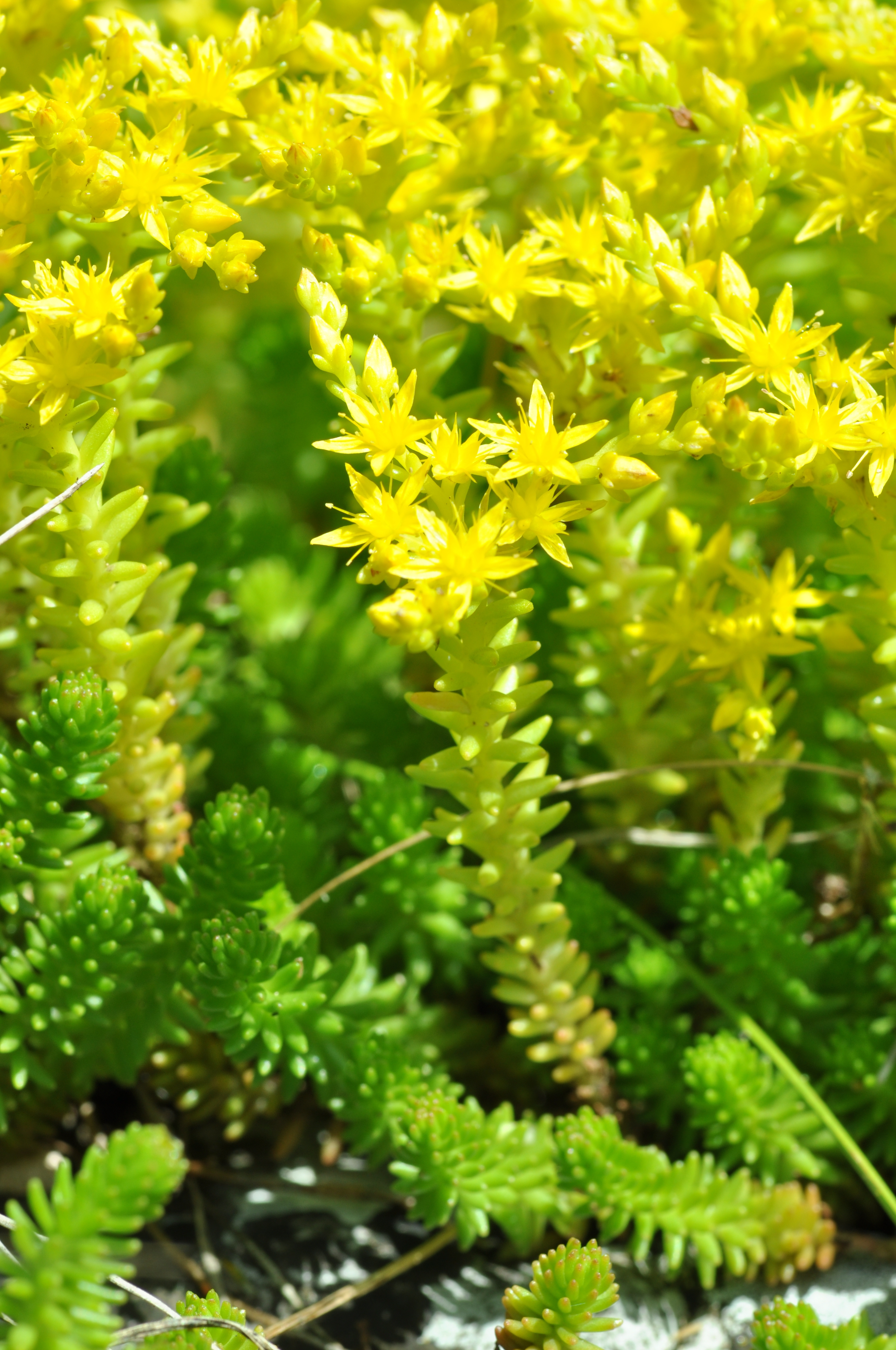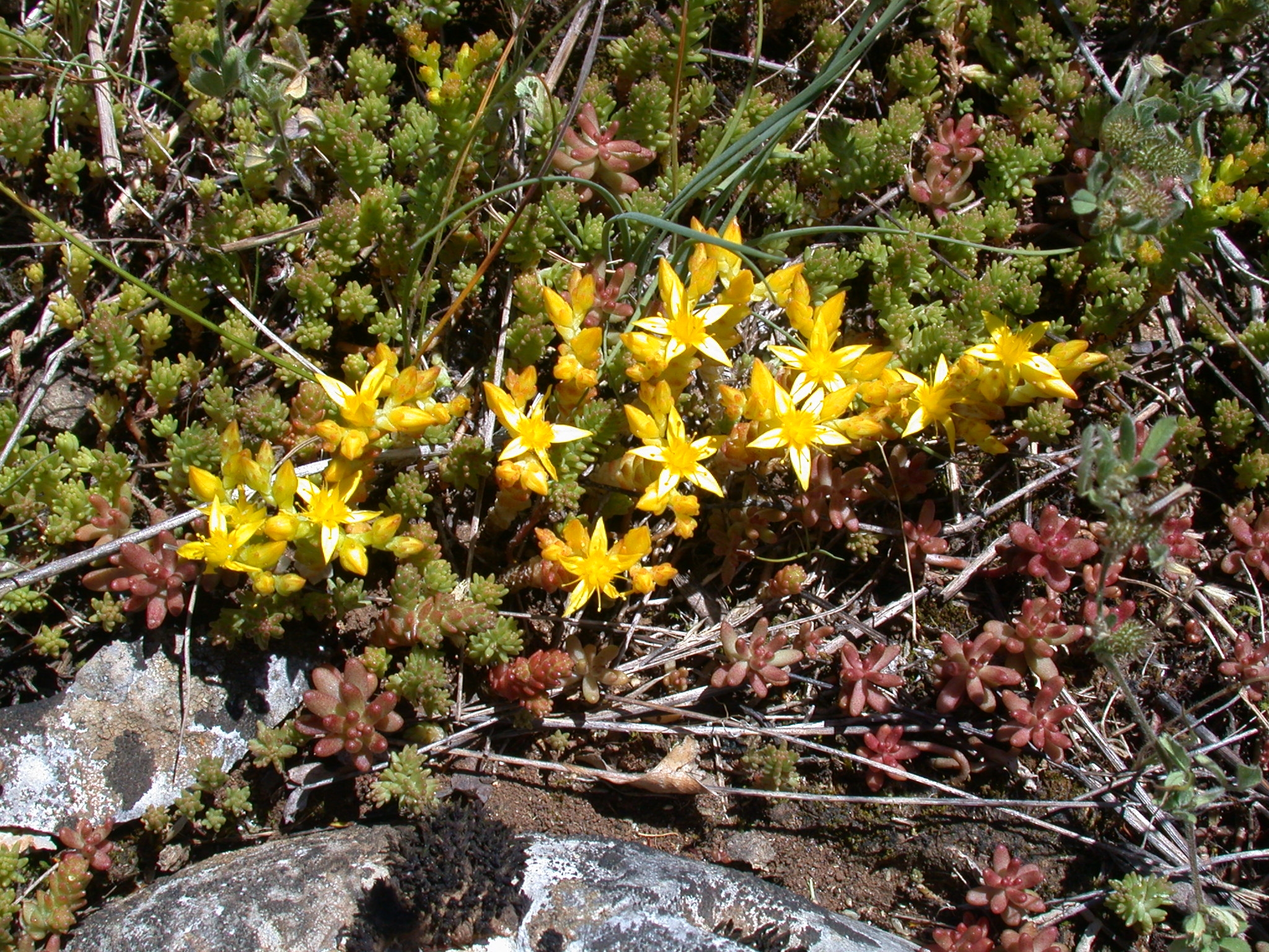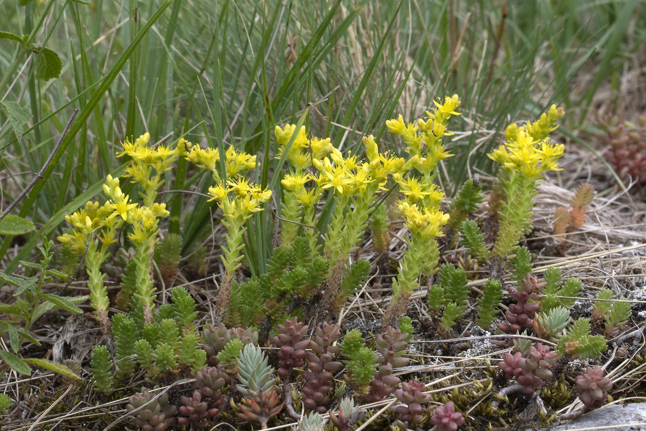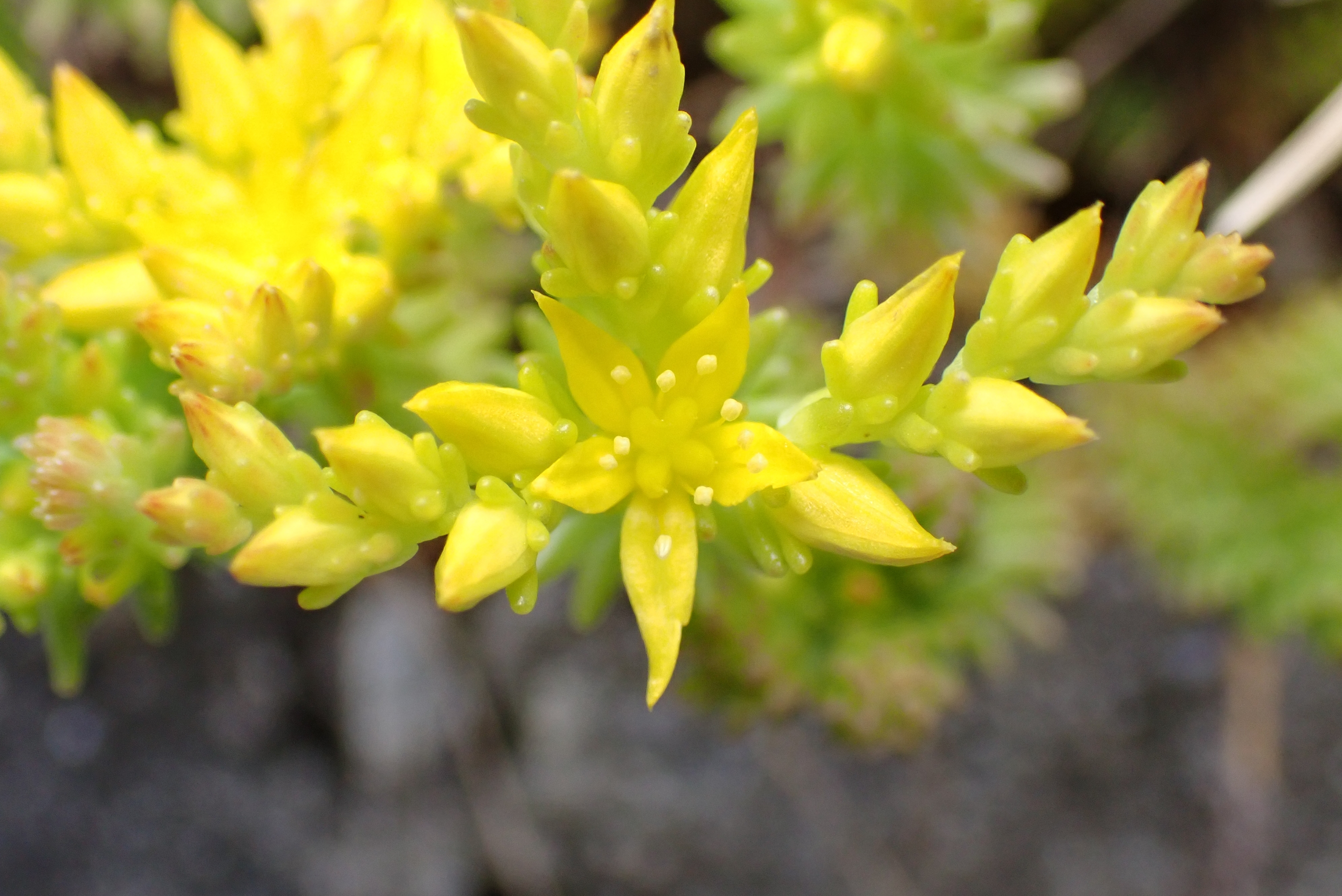 - Alpen Mauerpfeffer (Sedum alpestre): Kronblätter stumpflich bis spitzlich, Blätter unregelmässig angeordnet