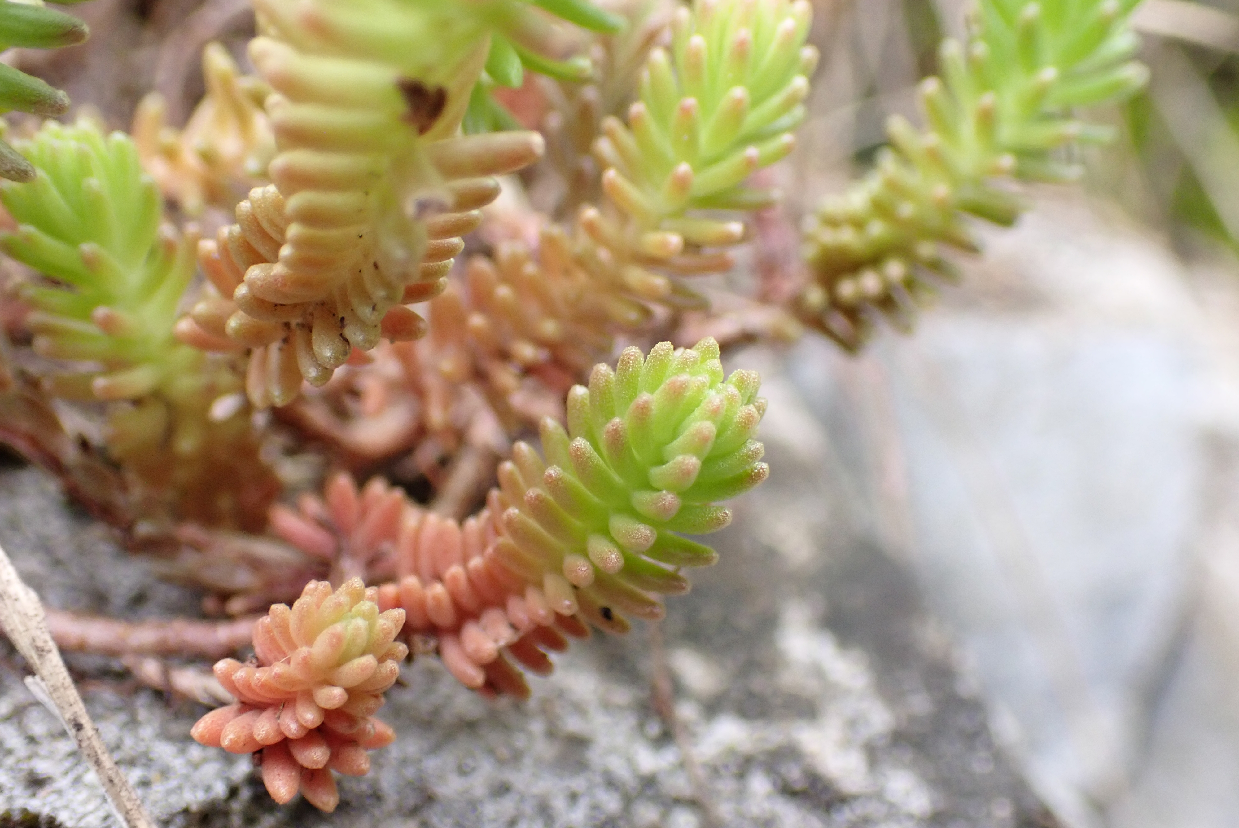 - Felsen-Mauerpfeffer (Sedum rupestre): stachelspitzige Blätter