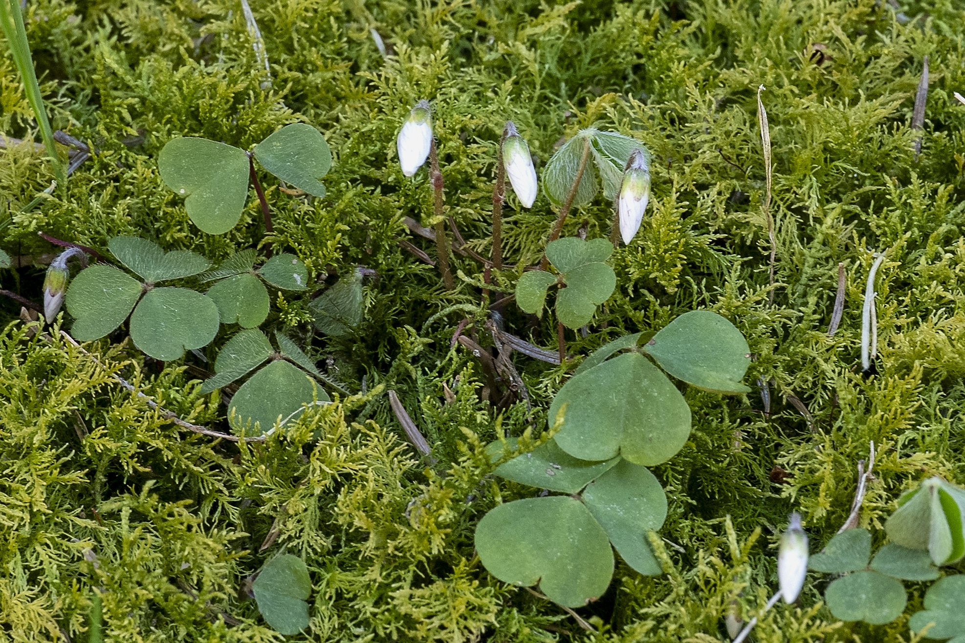 Der Wald-Sauerklee (Oxalis acetosella) klappt in der Nacht (Schlafbewegungen), bei starkem Regen und bei direkter Sonneneinstrahlung die Teilblätter nach unten.