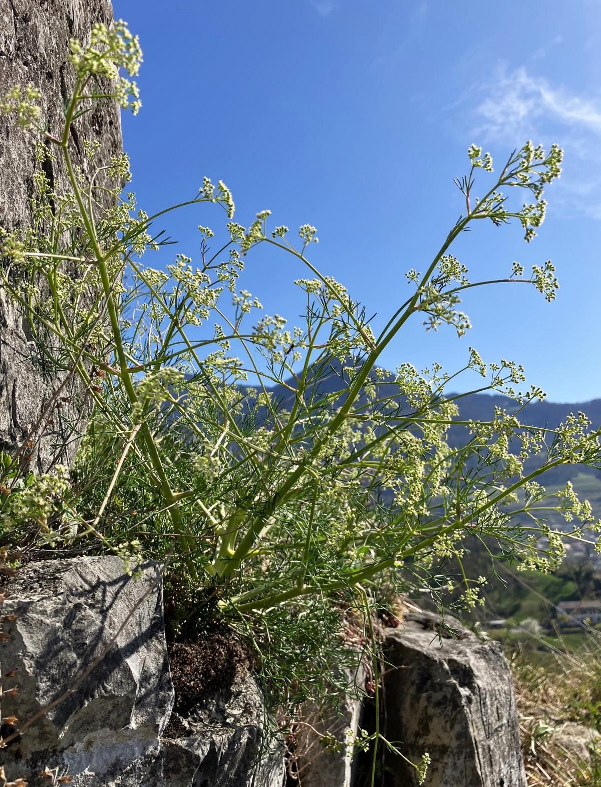 Der Einjährige Bergfenchel (Seseli annuum) wächst in ähnlichen trockenen Lebensräumen und besitzt ebenfalls fein zerteilte Blätter. Er hat aber