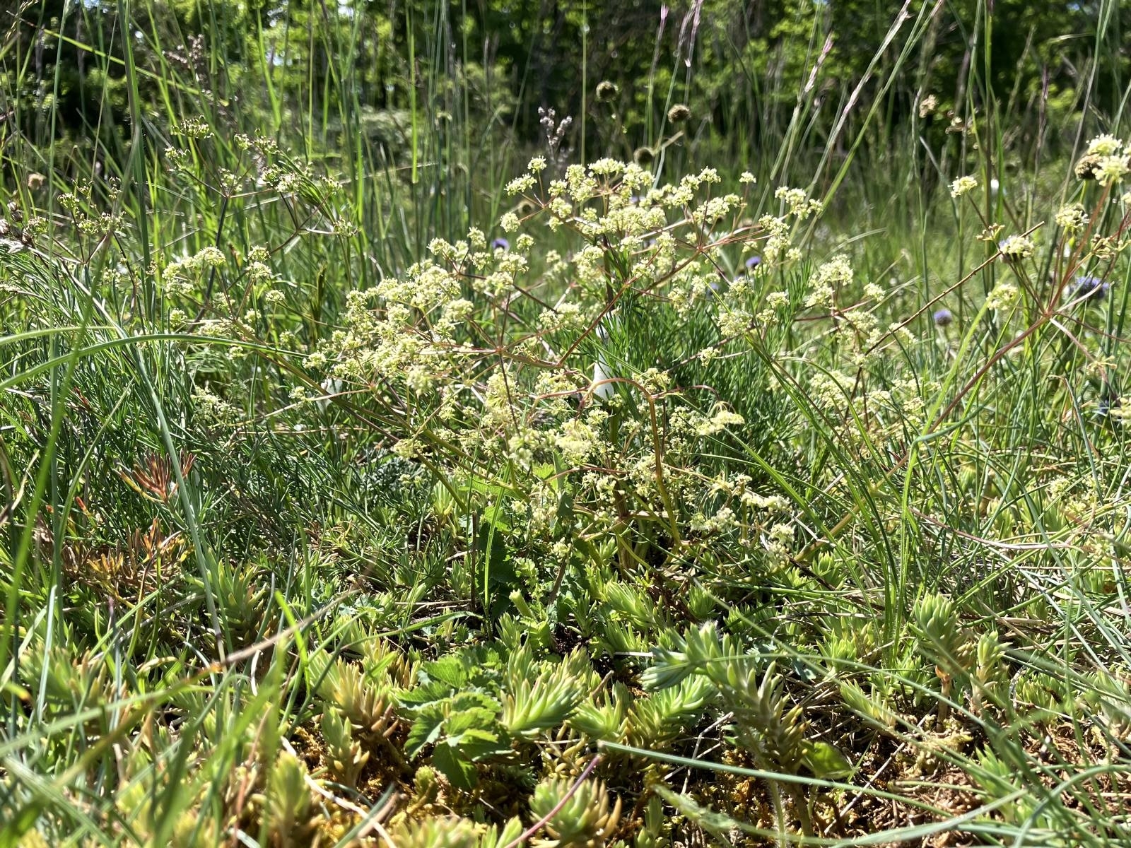 Flachgründige Böden; Trinia im Vordergrund zu sehen. La Sarraz (VD), 14.5.2025 (Blumenwanderer)