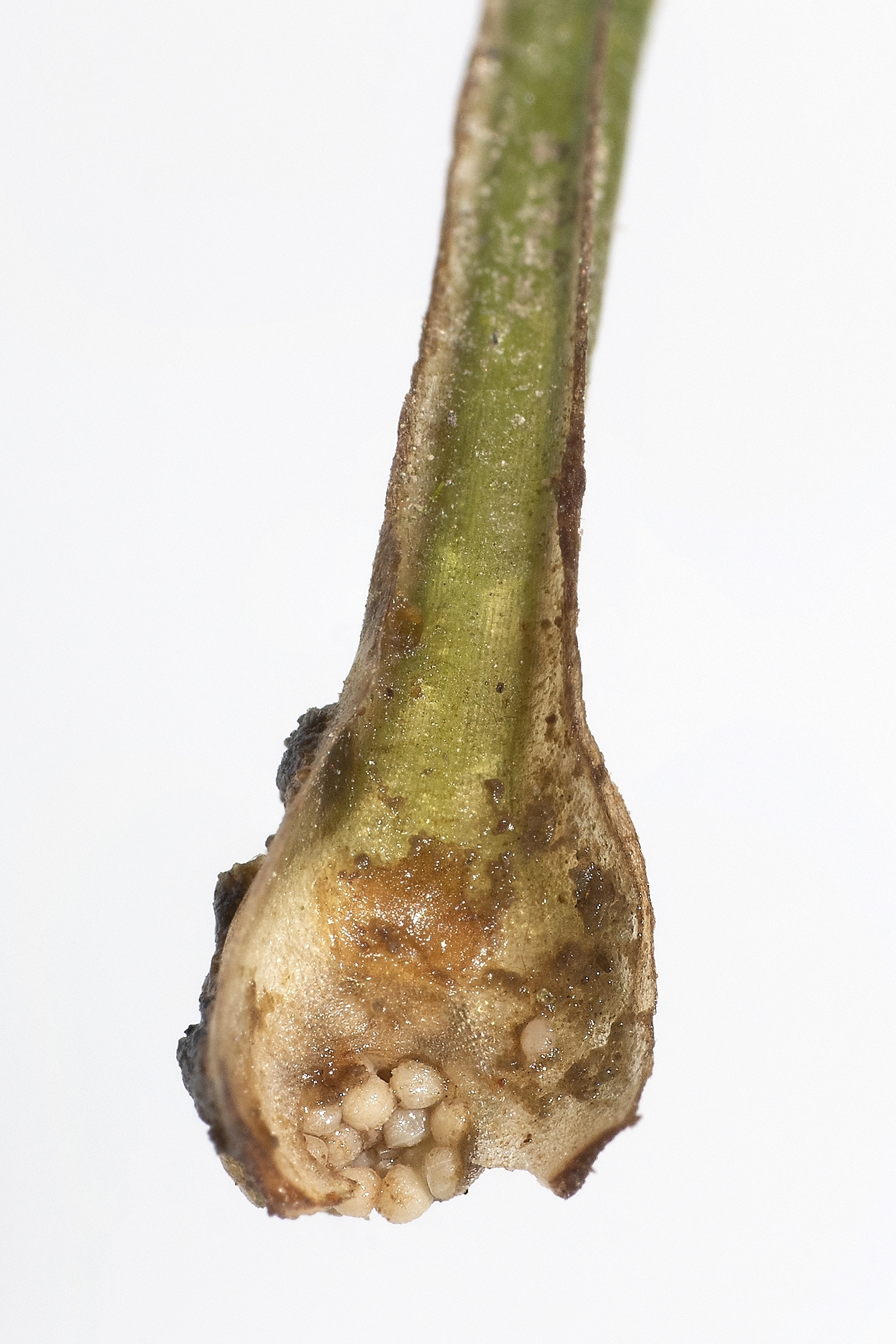 Blattbasis mit weisslichen Megasporen. Passo de San Bernardino (GR), 7.9.2020 (Muriel Bendel)