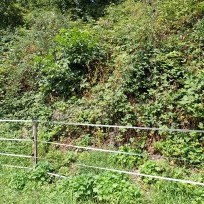 Leider war nicht mehr zu sehen als diese vermutlich vor ein paar Wochen geschnittenen und jetzt wieder austreibenden Pflanzen; d.h. keine Blüten und/oder Früchte weit und breit.