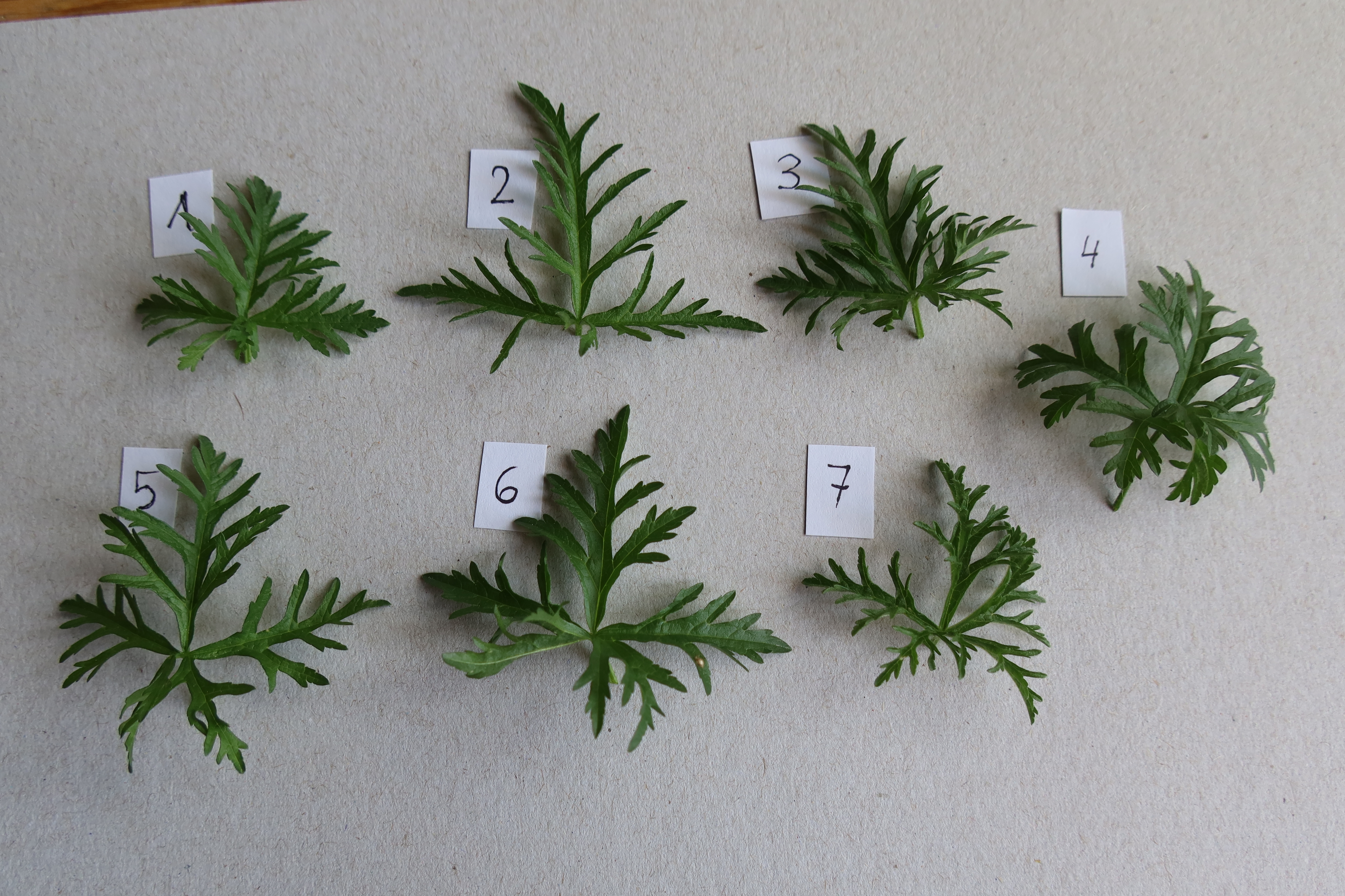 Oberste Stängelblätter von 7 verschiedenen Pflanzen. 17.6.2023 (Maria Merz)