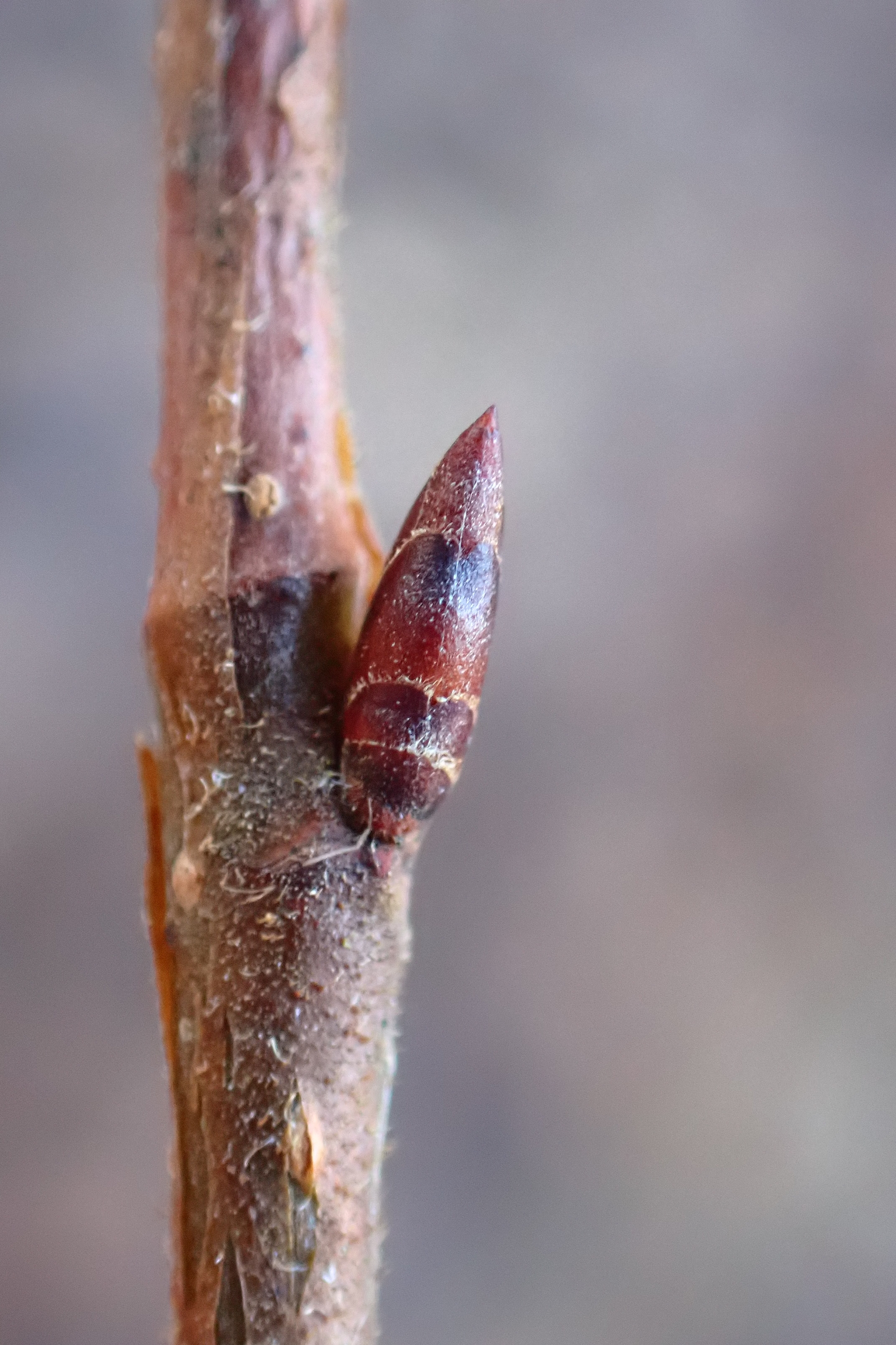 - Blattknospen schmal eiförmig; Blütenknospen schlank, zugespitzt (nicht kugelig).