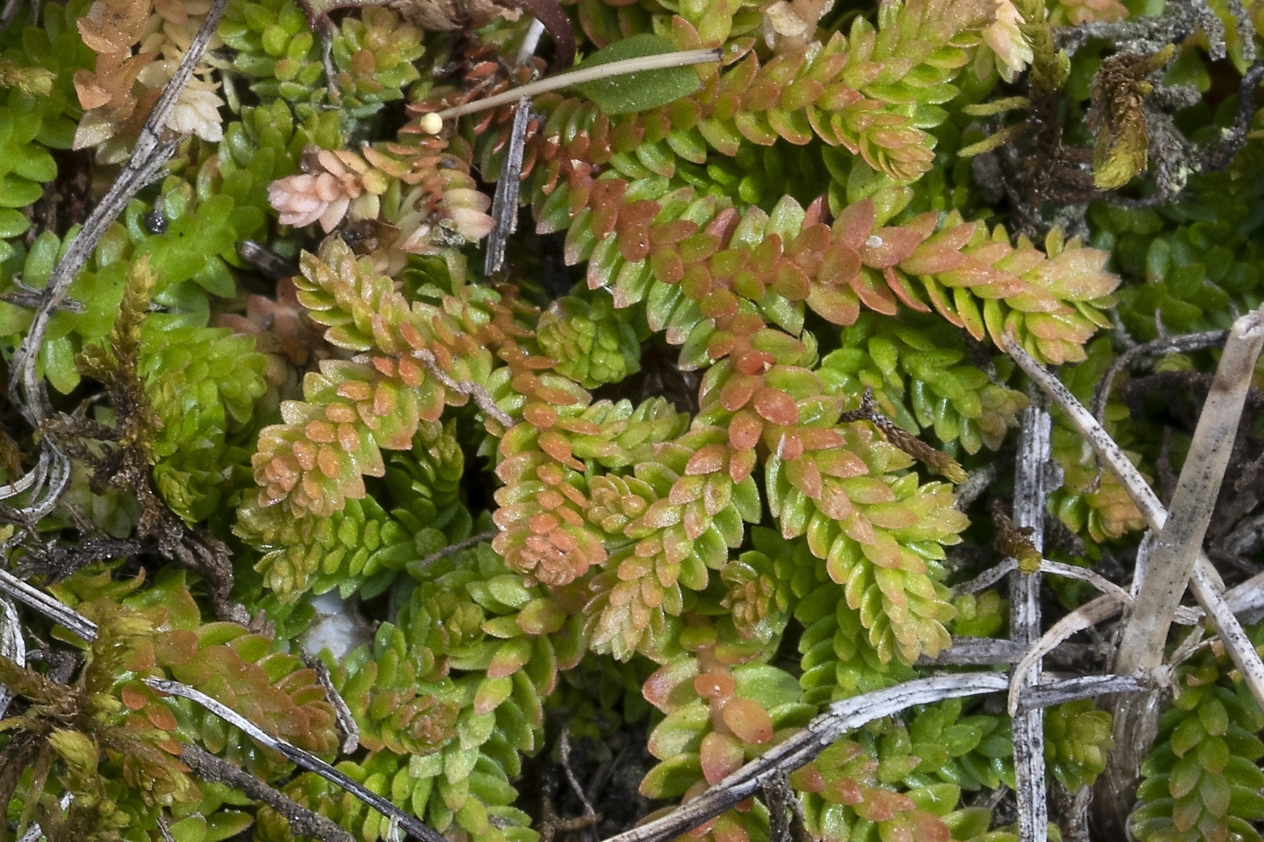 - sterile Sprosse kriechend, verzweigt, bewurzelt, wintergrün; an sonnigen Standorten relativ dicht beblättert, im Herbst oft rot überlaufen; an schattigen Standorten lockerer beblättert und meist grün bleibend.